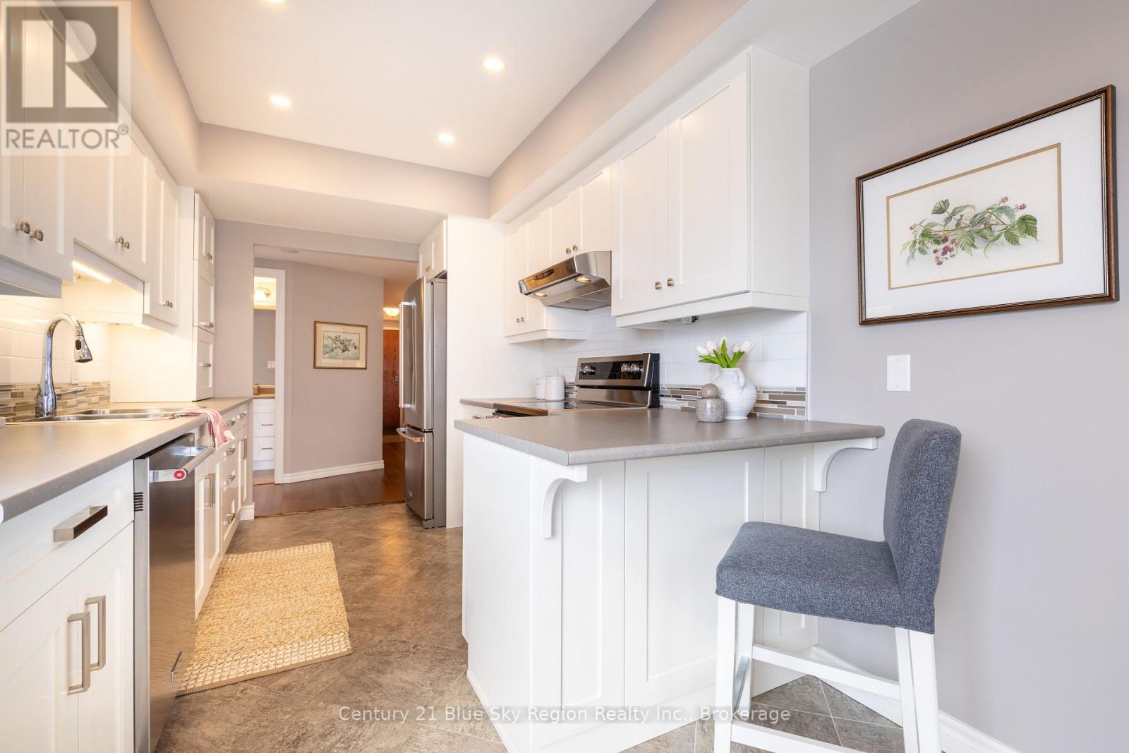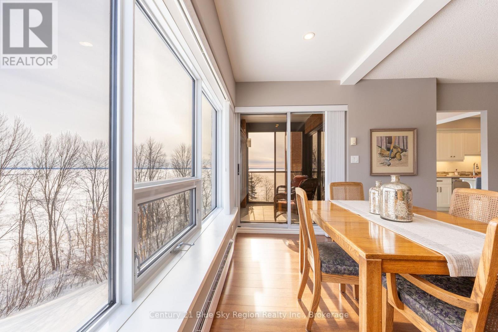 Welcome to this stunning and immaculate 3 bedroom + den, 2.5 bathroom updated waterfront condo on the beautiful shores of Lake Nipissing. Situated in one of North Bay's most sought after buildings; Harbourside. This spacious end unit is one of the largest waterfront condos in town! Upon entering the unit one is immediately awed by the space and finishes throughout. The large foyer leads into the open concept living area with living room and dining overlooking the exterior. Custom kitchen with breakfast nook and 3 season porch overlooking the water. The large primary suite is situated at one end of the unit with walk-in closet and additional dbl closet, as well as a beautiful custom 3pc ensuite with tile shower. Additional 2 large bedrooms both with plenty of closet space & 4pc bath complete the opposite wing. There is a bonus den, ideal for an office, hobby room or gym area, as well as a further 2pc bath for guests and a large in-unit laundry room. With plenty of storage within as well as 2 additional storage areas; one shared on the same level and one private locker on ground level. 2 dedicated parking spaces located close to the unit, one covered and one open. Enjoy the numerous amenities and benefits of such a well organized building, such as an indoor pool with 2 saunas, fitness classes, party room, outdoor tennis & pickleball court, well kept manicured grounds with outdoor BBQ areas and gentle paths down to the waterfront with walking and cycling trails overlooking North Bay's waterfront with gorgeous evening sunsets. Enjoy convenient bicycle storage, library area, community coffee & film club and so much more! There are 3 dedicated guest suites for additional overflow family and friends. Enjoy beautiful, relaxing and secure peaceful living from this well kept and well located property! Close proximity to local Marina with boat slips, area restaurants, North Bay Golf & Country Club and so much more. Enjoy peaceful and tranquil living 4h North of Toronto. (42128727)