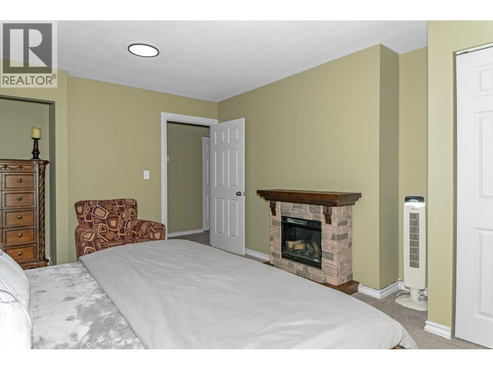 Primary bedroom with electric fireplace