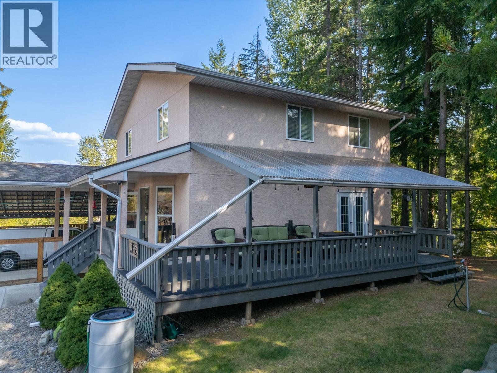 At a great price with so much to offer, this four-bedroom home sits on 4.8 acres bordering crown land and just ten minutes from Creston. The main floor includes a bright living room, dining area, kitchen, pantry, bathroom, and laundry, while upstairs you’ll find four bedrooms and two full baths offering plenty of room for family or guests. The basement provides extra storage with the potential to develop further. The property is a real highlight for outdoor enthusiasts. Trails wind through the wooded areas, and there’s also a clearing with a firepit where you can take in the mountain views, while neighbouring crown land adds even more to explore. The fully fenced backyard is perfect for kids or your furry friends, and the acreage also features a pond, exposed rock formations, lawns, and a charming guest cabin tucked out back. A double detached garage (24' x 28') provides workshop space, while the attached double carport and 20’ shipping container add secure parking and storage options. The home is also ready to be powered by a generator during power outages. In addition, a second driveway leads to the top of the rock outcrops and provides convenient RV parking. Located just 10 minutes from town on a serviced, paved bus route, the property also offers direct access to a wide range of outdoor activities right from your doorstep. Call your realtor to book a showing for this beautiful property! (39724781)