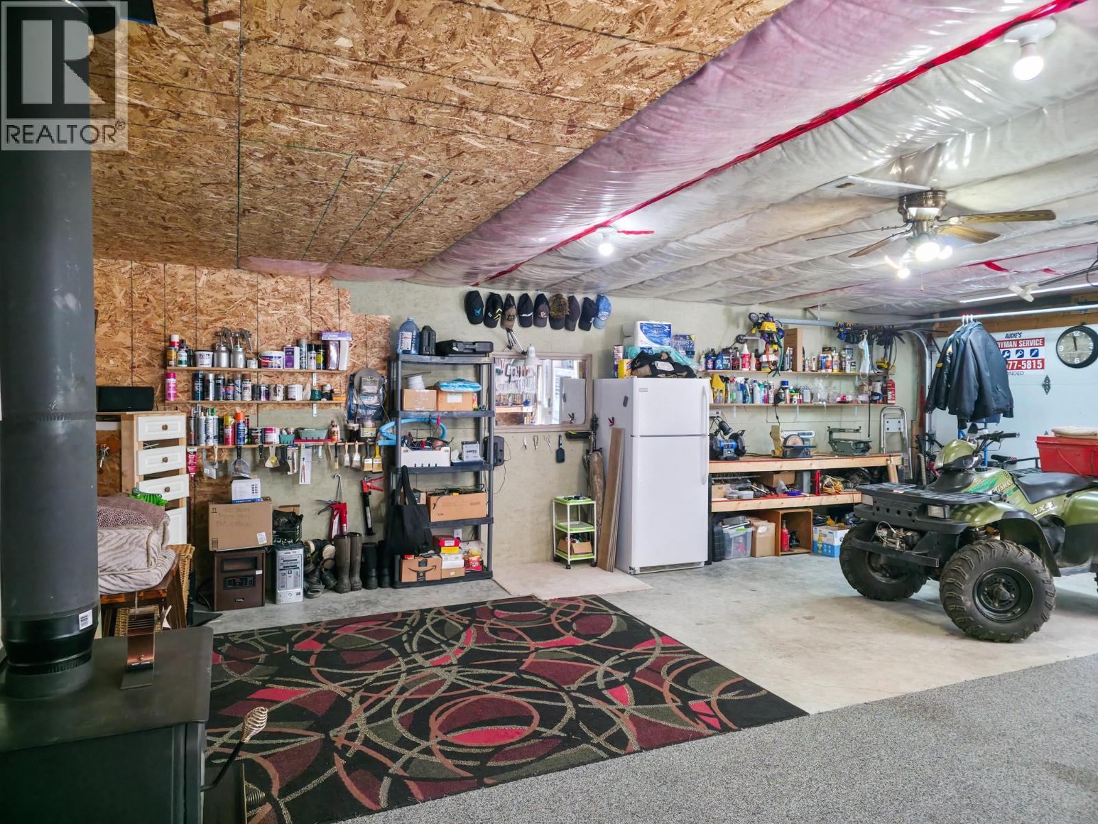 Fire pit and workshop in the fenced yard