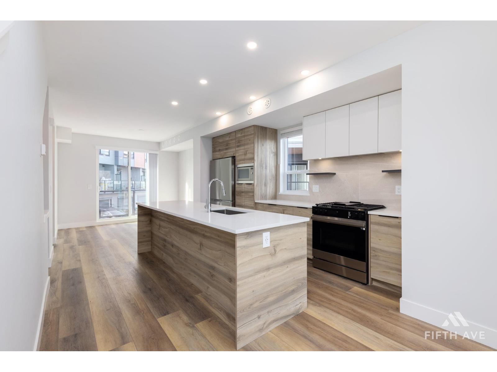 Welcome to Highstreet Village. This stunning 1,369 sq.ft. CORNER townhome offers 3 bedrooms in a vibrant 12-acre community. Featuring 9' ceilings, durable vinyl plank flooring, and sleek roller shades. this home is designed for comfort and style. The modern kitchen boasts quartz countertops, two-tone cabinetry, and premium stainless steel appliances. A spacious primary suite includes raised ceilings, a walk-in closet and spa-like ensuite with a frameless glass shower. Enjoy a private patio, attached garage, and top-tier amenities like a gym, rooftop terrace, and play area. Steps from Highstreet Shopping Centre, Hwy 1, and Abbotsford Airport. Presentation Centre Open Sat/Sun 12-5 PM (32438416)
