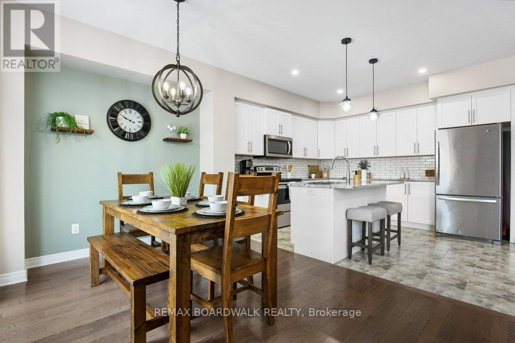 Step into comfort & style in this beautifully crafted Grizzly-built middle-unit townhome, offering 3 bedrooms, 2.5 bathrooms, and a finished basement. The main level welcomes you with rich hardwood flooring & a bright, open-concept layout that makes everyday living & entertaining feel effortless. The kitchen is the heart of the home, featuring an eat-in island, stylish backsplash, & plenty of prep space, all flowing seamlessly into the dining area & family room, perfect for family gatherings. Upstairs, the spacious primary suite provides a relaxing retreat with a walk-in closet & a private ensuite complete with double sinks, a soaker tub, & a separate stand-alone shower. Two additional bedrooms, a full bath, & the convenience of second-floor laundry make this level as functional as it is spacious. The finished basement adds valuable extra space for a rec room, home office, gym, or play area. Enjoy outdoor living in the fully fenced backyard with both patio & green space, ideal for summer barbecues, kids, or pets. A single-car garage with inside entry adds everyday convenience. Optimally situated close to schools, parks, shopping, & within walking distance to Main Street, this home offers the perfect blend of comfort, quality, & location in a growing community. (42129385)