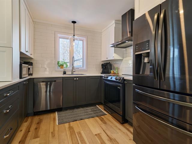 Extrêmement lumineuse et entretenue avec soin, cette propriété clé en main a été rénovée de fond en comble (2021-2022). Revêtement en fibre-ciment (2007) et superbes planchers de merisier sur 2 étages. Cuisine moderne avec îlot 2 places. 3 chambres à l'étage + possibilité d'une 4e au SS. Salle de bain luxueuse : bain autoportant et douche céramique. Terrain privé de 8 047 pi² sans voisin arrière avec piscine chauffée, terrasse et remise. Garage attaché/chauffé (22x17) de 2007 avec 2 portes. Un intérieur impeccable dans un secteur paisible. Une opportunité rare qui saura vous charmer dès l'entrée !! (43785126)