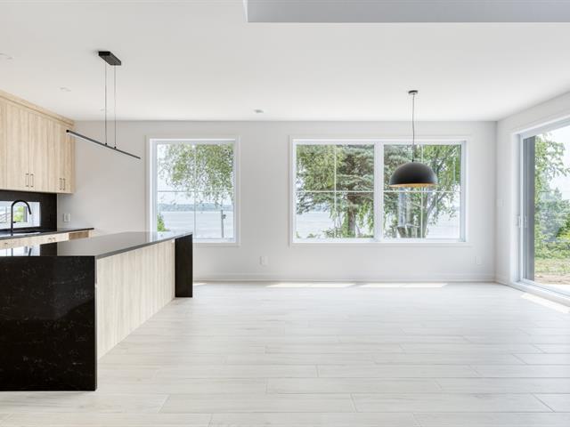MAGNIFIQUE propriété construite en 2025, sise sur un terrain de plus de 8000pc bordant le Fleuve St-Laurent. Elle vous offre une luminosité abondante avec sa fenestration et ses plafonds grandioses! Cuisine fonctionnelle avec comptoir de Quartz et garde-manger WALK-IN, aire ouverte impressionnante! 3 chambres à coucher, salle de lavage séparée, salle de bain avec vue sur l'eau! Planchers chauffants, garage double! Le terrain sera aménagée, accès direct au Fleuve NAVIGABLE! Frais de notaire inclus, Garantie GCR offerte. GST/QST must be added to the asking price (43847114)