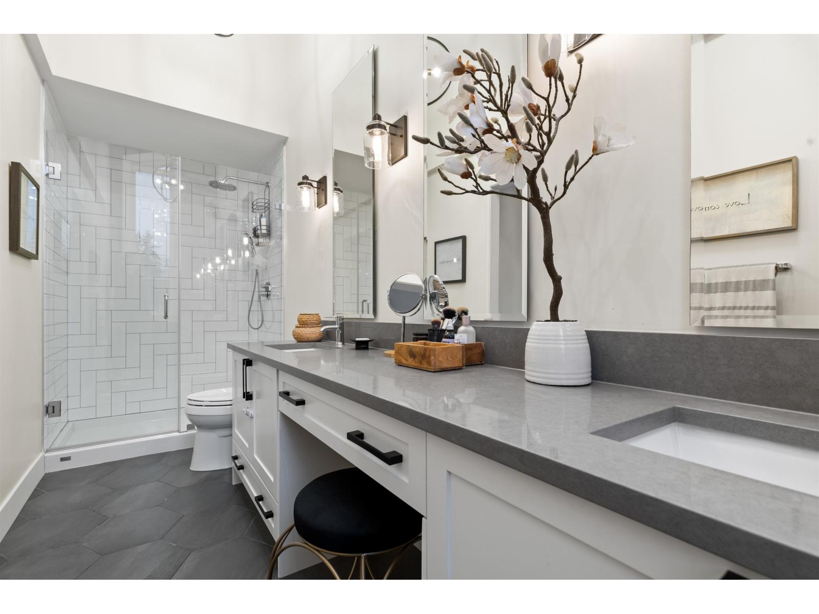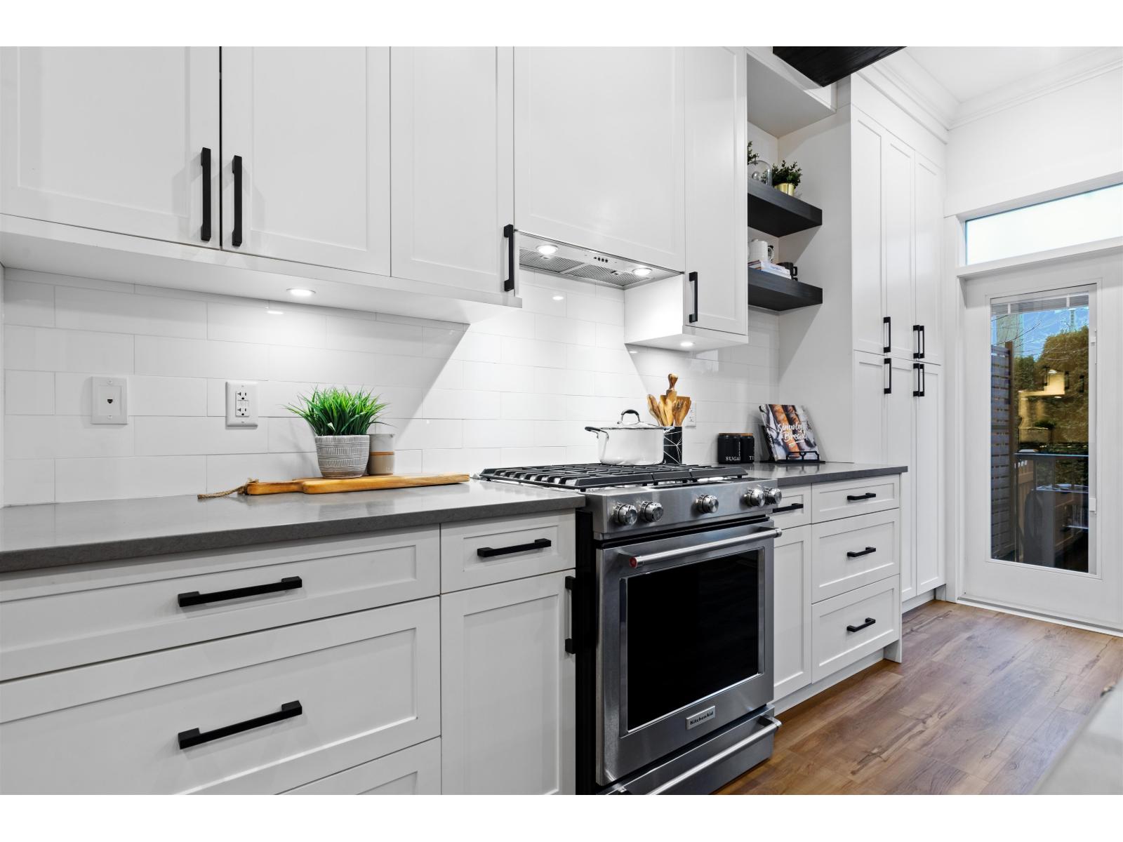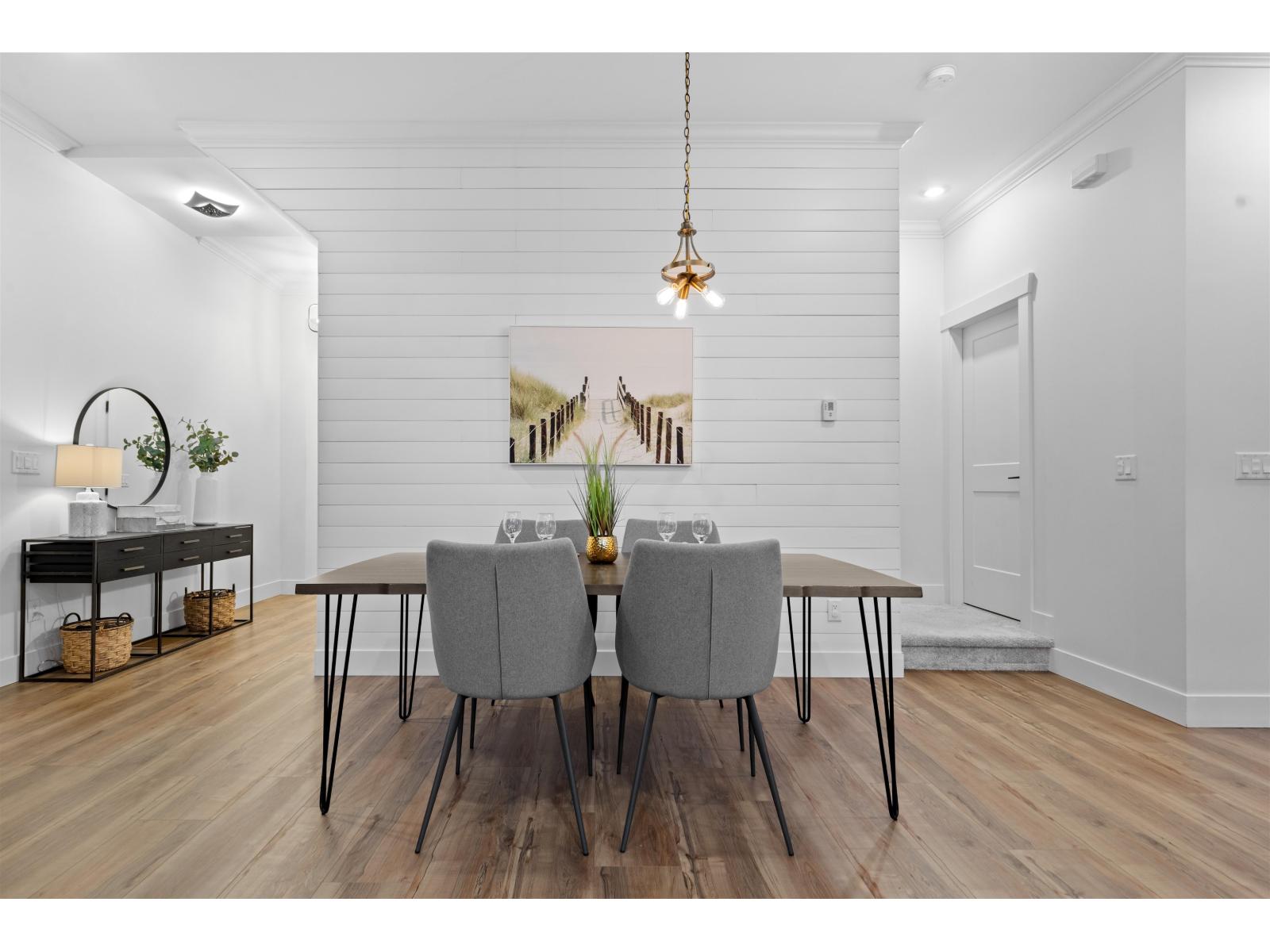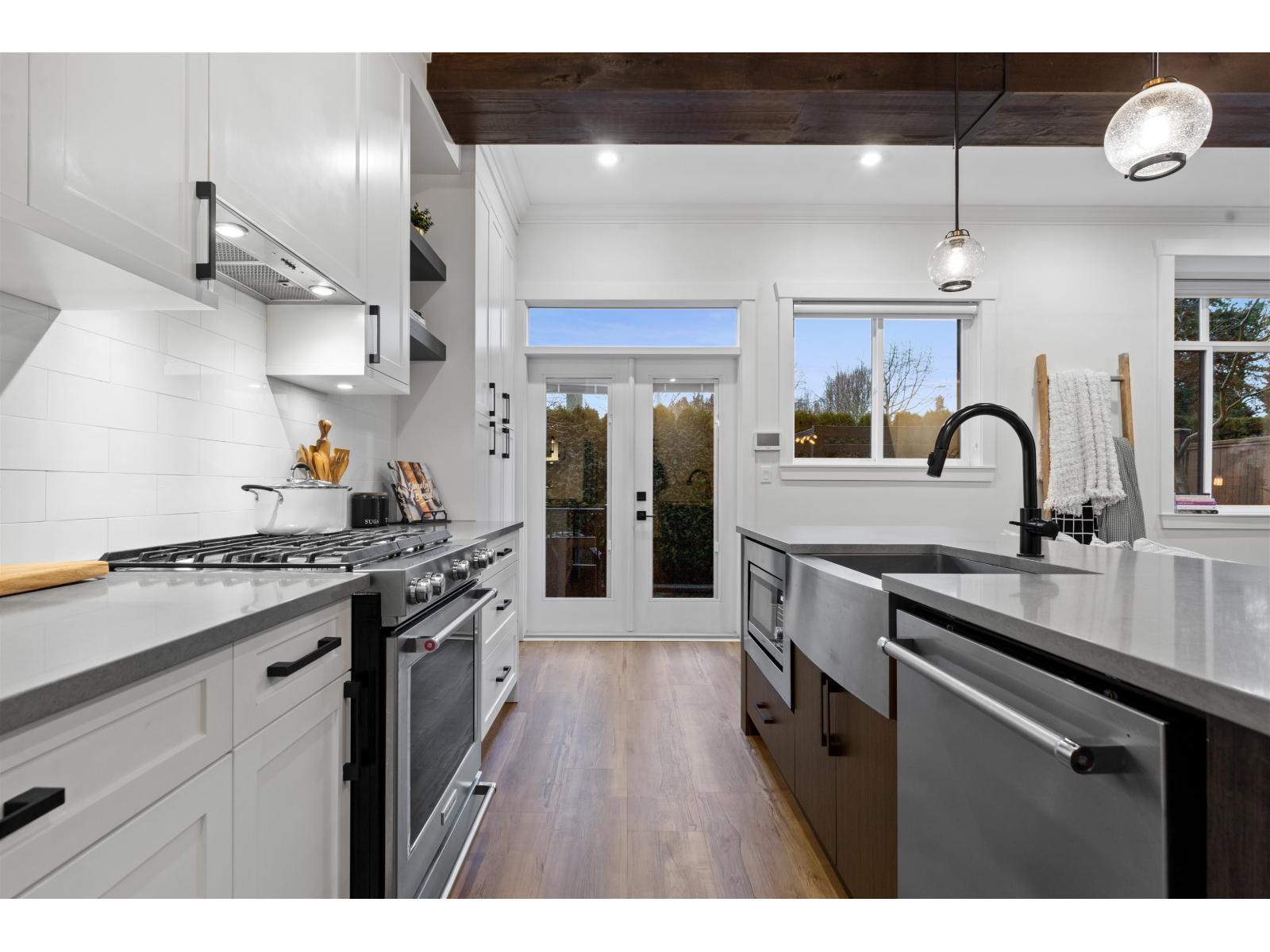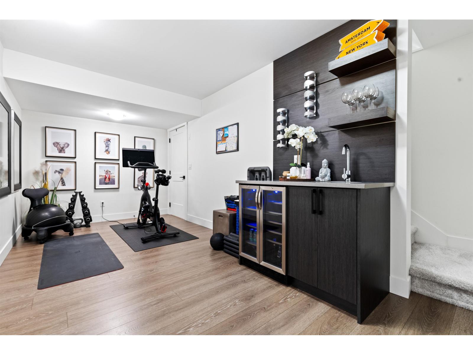 Step into luxury at Marca by Mortise, South Surrey. Former show home, Unit 2 is the former show home w/double wide garage & large driveway for 2 more vehicles. Chalet-inspired design, wood beams, smart home tech, A/C & iControl4 features. Feels like a house w/2300+sqft across 3 levels featuring many built-ins, custom shelving, new laminate flooring throughout, new carpets, newer light fixtures & fresh paint. Main offers white cabinetry, quartz counters, s/s appliances, gas range, island & SW exposure. Upstairs features 3 beds & flex, incl oversized primary w/w-i closet & ensuite w/double sinks. Downstairs includes large rec room w/custom bar, wine fridge & built-ins, plus 4th bed & storage. Enjoy 2 balconies or fenced yard. (32438913)
