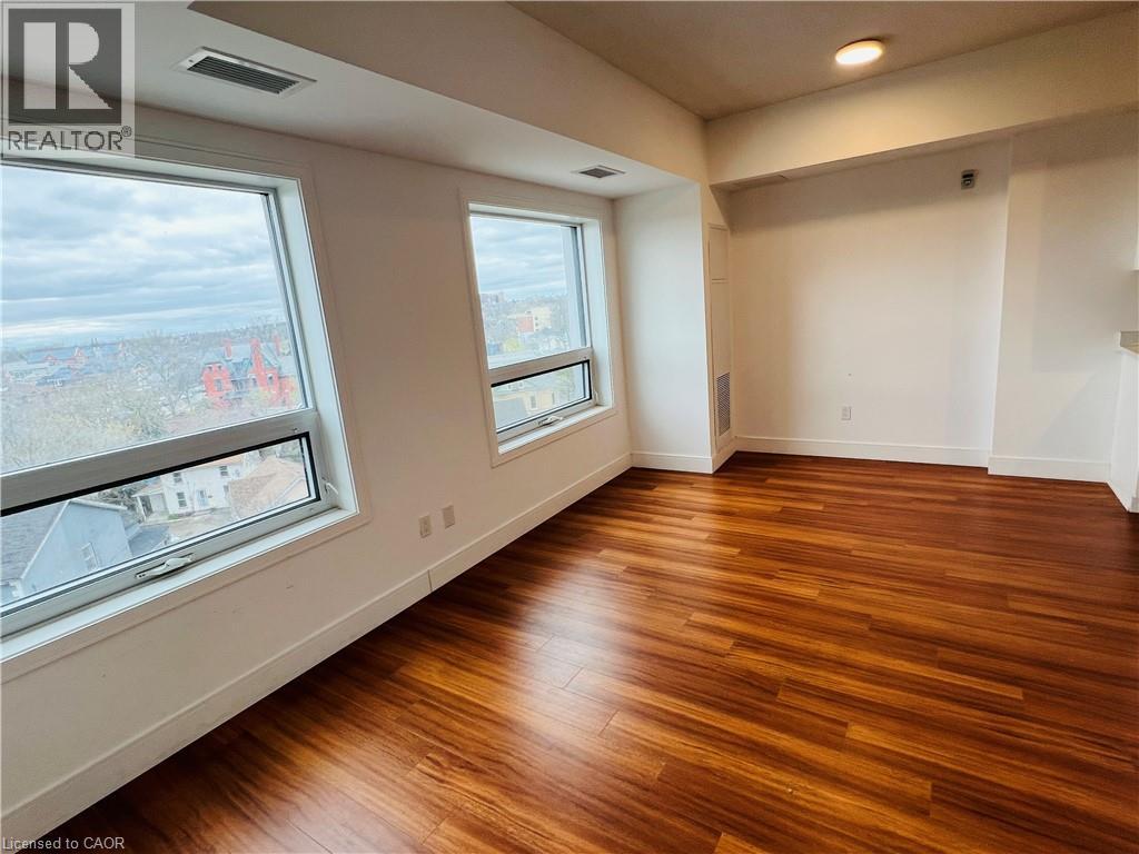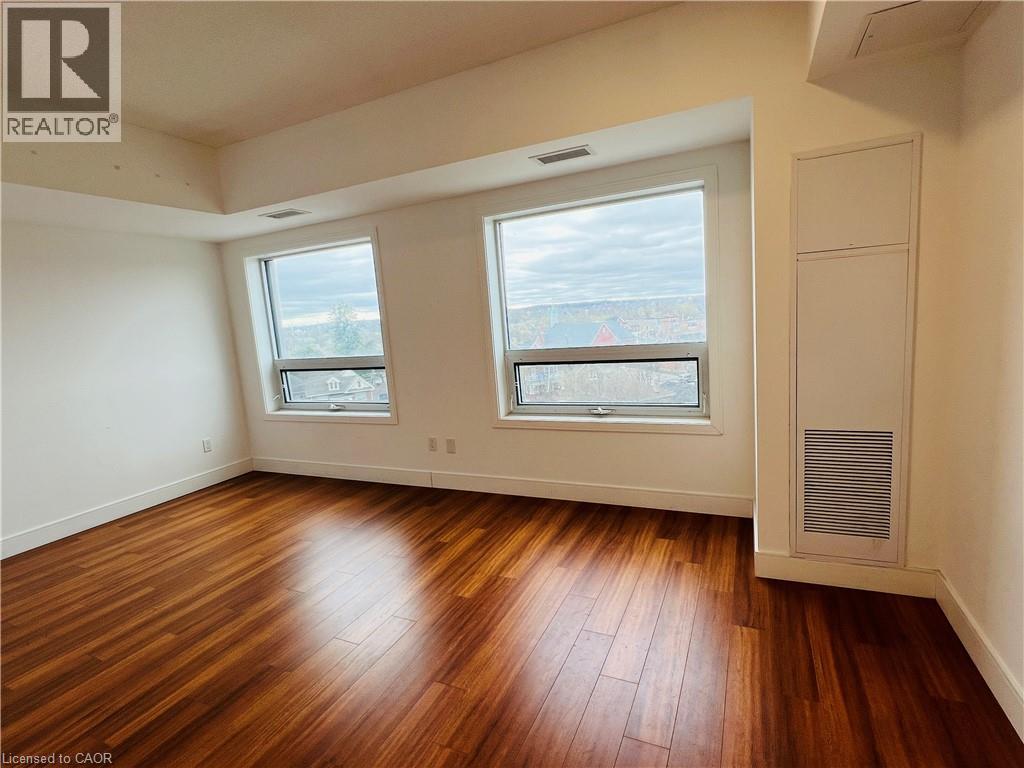 The Urban- style condominium complex is ideally located in downtown Brantford. Close to Laurier University, the Sanderson Centre, Harmony Square, and with in walking distance to the Grand River. This updated one-bedroom, one bathroom, living room, and den/study room has a unique floor plan featuring 9' ceilings. The kitchen has a fridge, stove, over the range microwave and dishwasher. Convenient in-suite laundry with a stackable washer and dryer. Building amenities include a rooftop garden with a BBQ area, a fitness centre, and a party room. Prime location just steps from the bus terminal, future GO train, Lauier and Nipissing Universities, and all major amenities. Perfect blend of comfort, convenience and style! (70154965)