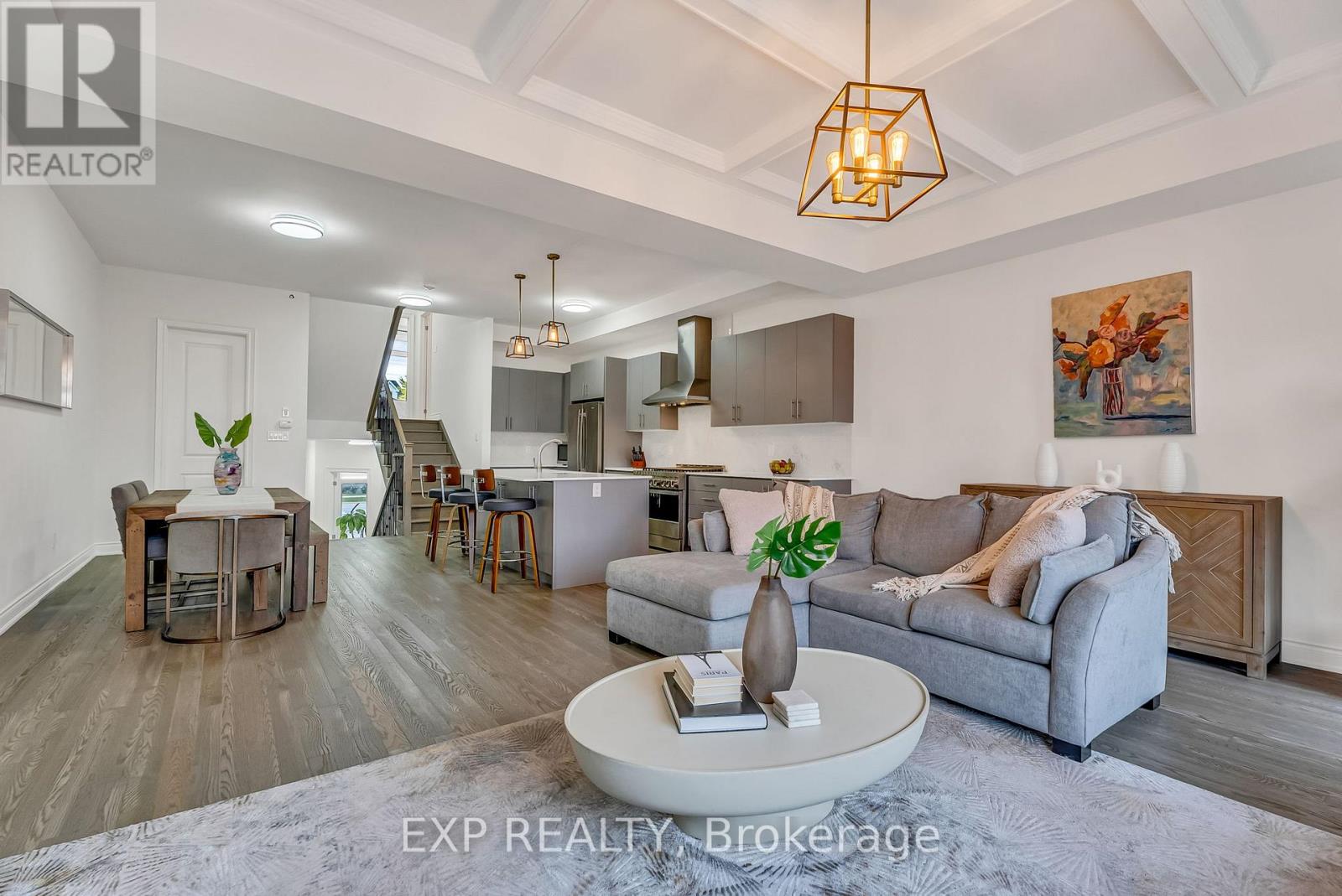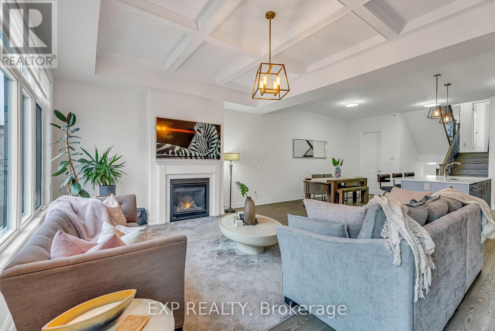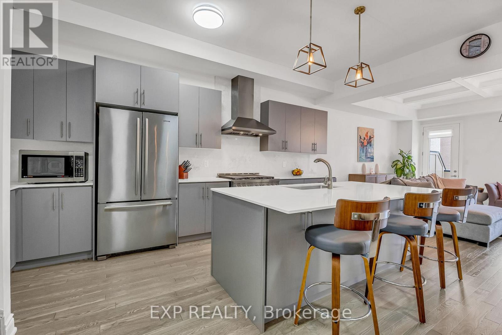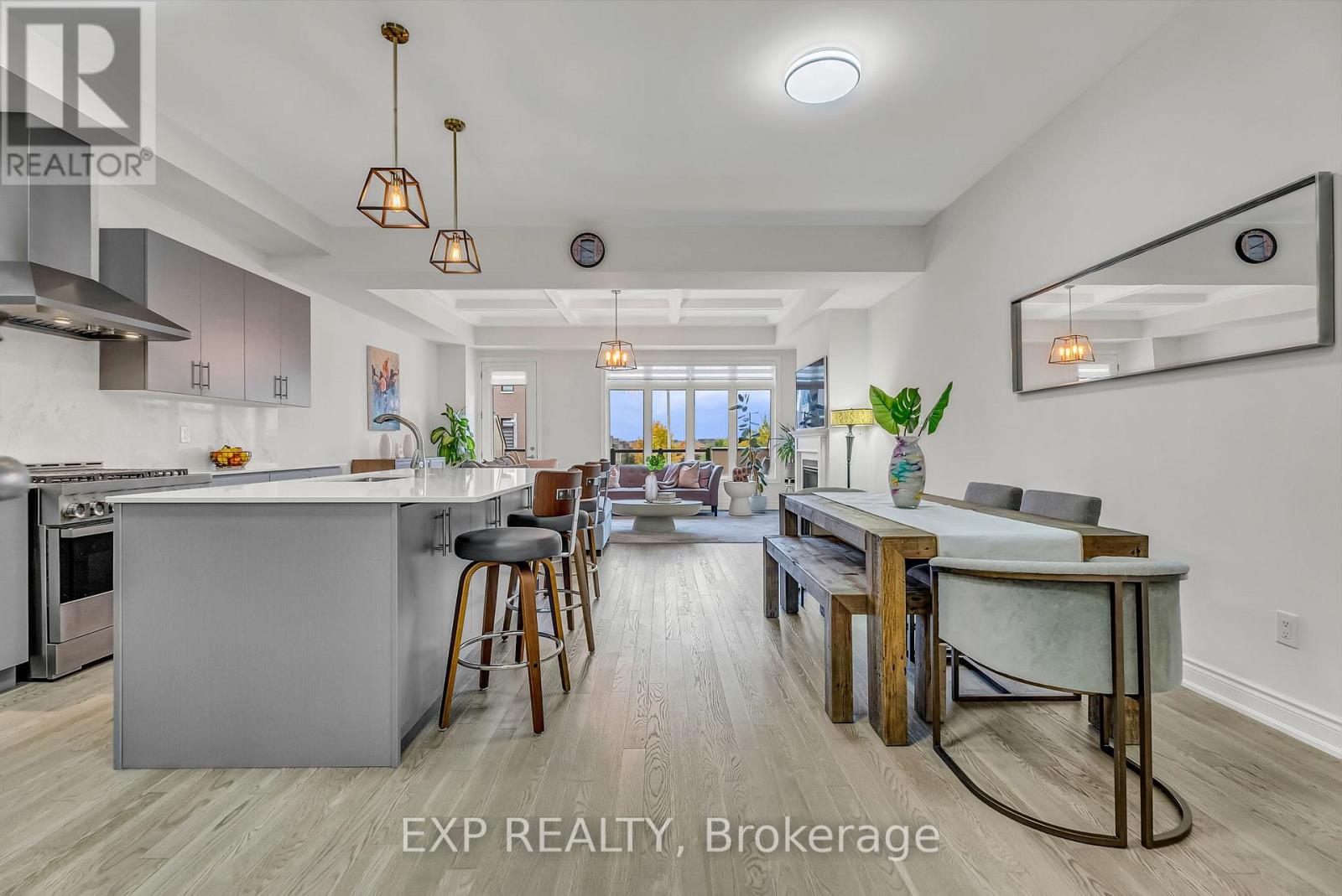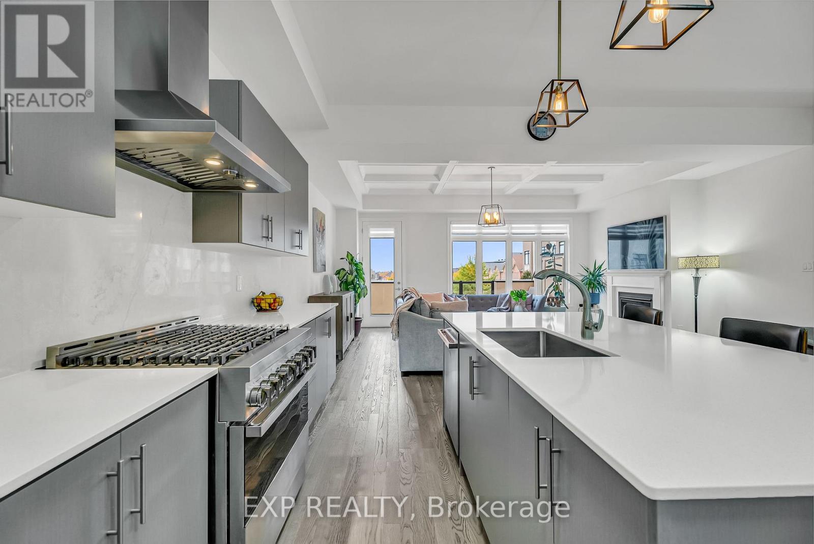 Welcome to 9548 Weston Road, an executive freehold townhome offering just over 3,000 sq ft of refined living space in Vaughan's prestigious Vellore Village. Thoughtfully designed for modern families, this upgraded home blends elegance, functionality, and premium finishes, featuring a 2-car garage, multiple outdoor walkouts, and a finished lower-level suite. The main floor boasts 10-foot smooth ceilings, an elegant waffle ceiling in the Great Room, and engineered hardwood floors throughout the main and upper levels. The chef-inspired kitchen is equipped with top-of-the-line JennAir stainless steel appliances (including a gas stove), granite countertops, an extended breakfast bar, and custom cabinetry that balances form and function. The Great Room features a cozy gas fireplace and opens to a spacious 20 x 11-foot terrace - perfect for outdoor dining and entertaining. Convenient main-floor laundry and direct garage access add everyday ease. Upstairs offers 9-foot ceilings, a primary retreat with His & Hers walk-in closets, a private balcony, and a spa-inspired 5-piece ensuite featuring a freestanding soaker tub, frameless glass shower, and quartz finishes. Two additional bedrooms provide generous space - including one with its own balcony walkout - ideal for family or guests. The fully finished lower level adds versatility with pot lights throughout, a bedroom, full bath, and kitchenette - perfect for a nanny suite, in-law suite, or independent guest quarters. Tech-savvy buyers will appreciate hardwired internet in every room for seamless connectivity. Located steps from St. Jean de Brebeuf Catholic High School, minutes to Vaughan Mills, Canada's Wonderland, Highways 400 & 407, and Cortellucci Vaughan Hospital, this home offers the perfect blend of luxury, lifestyle, and location - delivering the space of a detached home with the ease of townhome living in one of Vaughan's most desirable communities. (42130704)