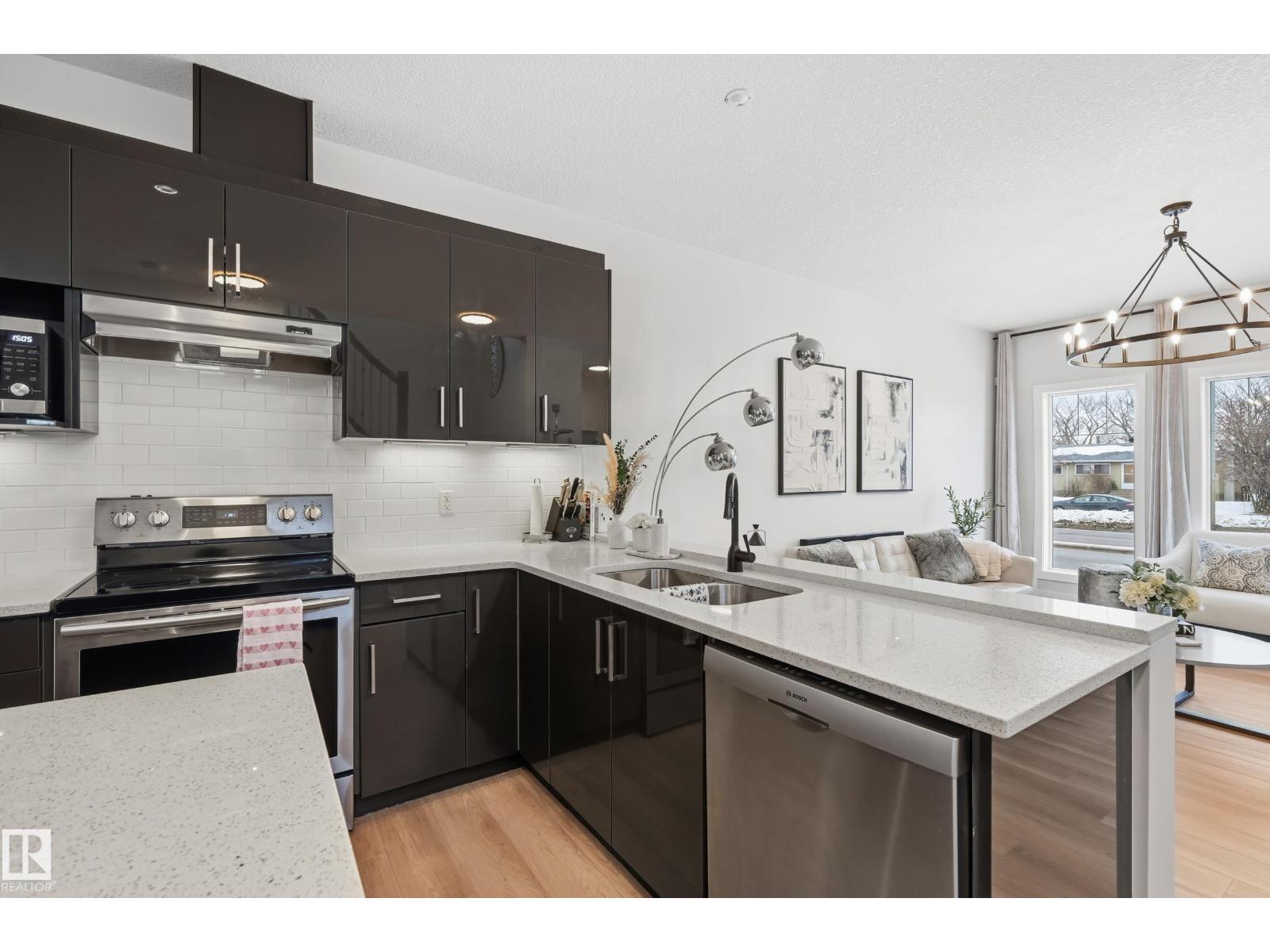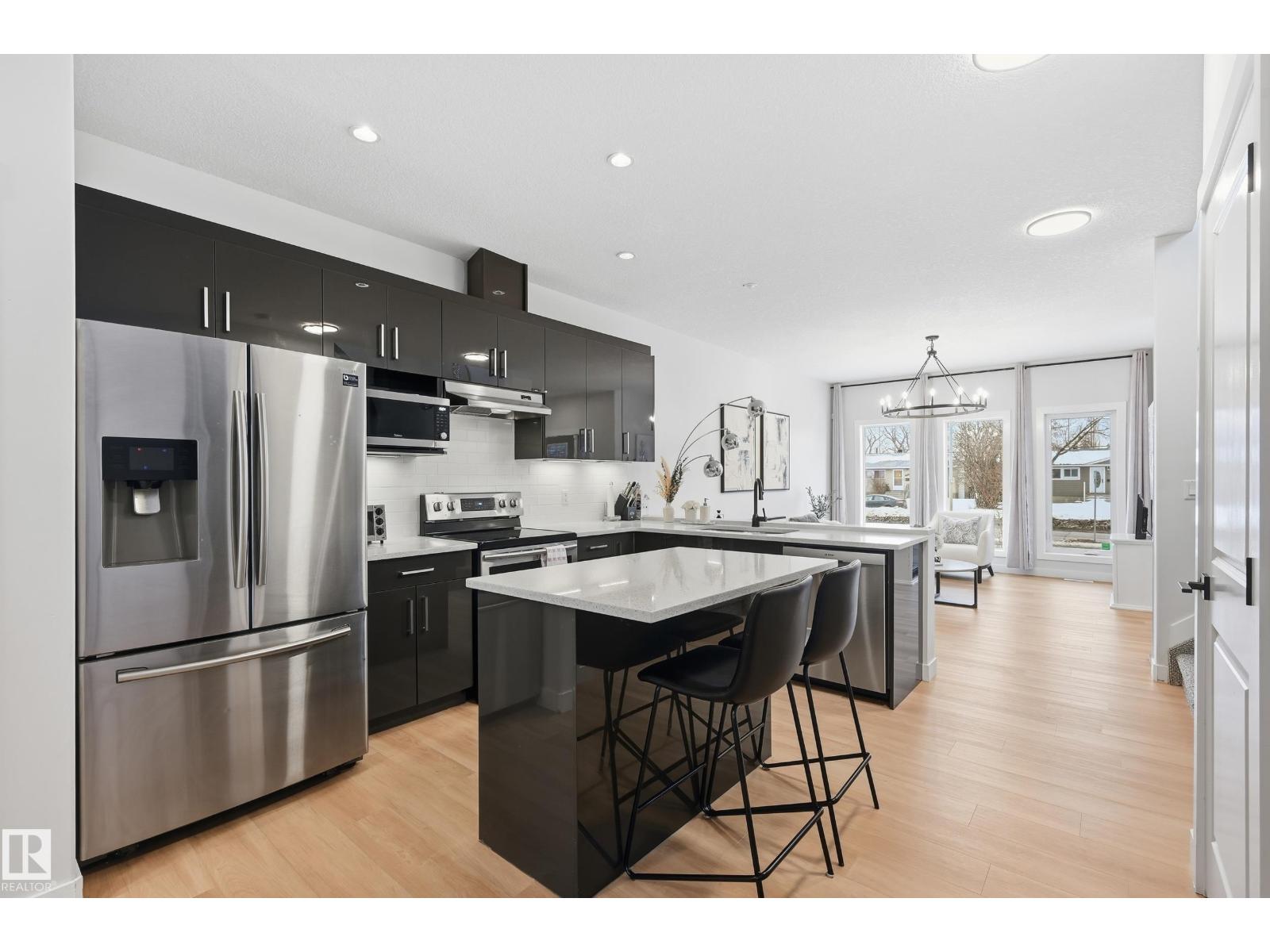 Discover exceptional value in this stylish half duplex located in the established, family-friendly community of High Park—just 15 minutes to downtown and minutes from the Ice District, West Edmonton Mall, MacEwan University, NAIT, schools, parks, and transit. Offering 4 spacious bedrooms and 3.5 bathrooms, this home is perfect for families or savvy investors. The bright, open-concept main floor is designed for modern living, featuring a sleek kitchen with stainless steel appliances and a large island ideal for entertaining. The fully finished basement includes a private entrance, generous bedroom, full bath, and living area with kitchen rough-ins—an excellent opportunity for rental income or extended family. Enjoy central A/C and a quiet backyard with patio and fire pit, perfect for relaxing or hosting guests. Don't miss this rare opportunity! (33823563)