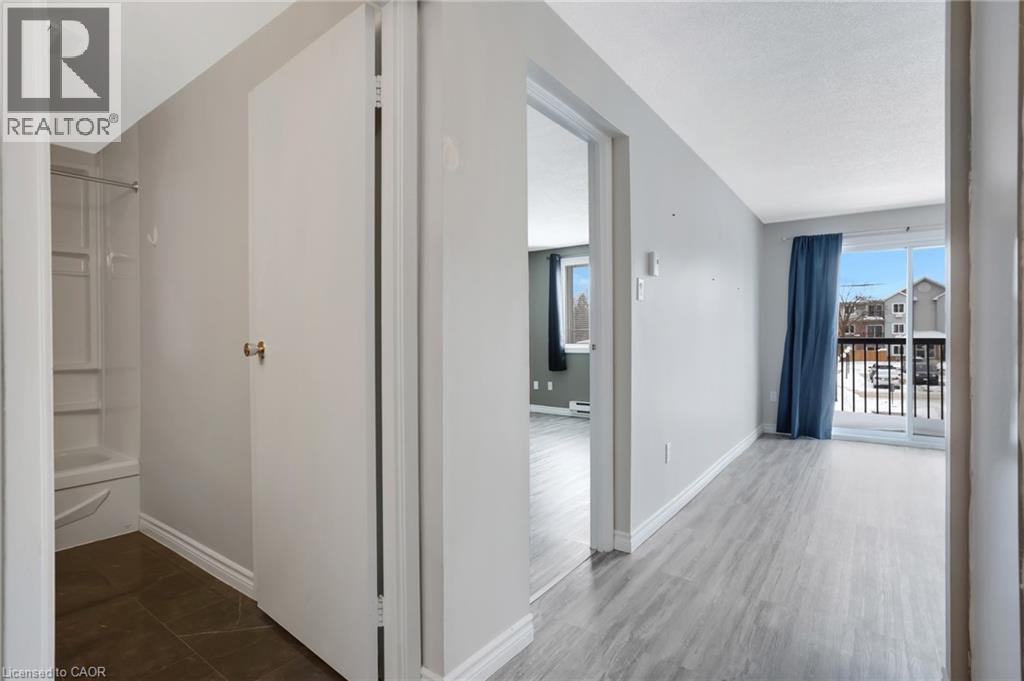 Modern 1-bedroom condo in desirable East Bridge, Waterloo - ideal for students, first-time buyers & investors. This well-maintained, move-in ready unit offers a bright open-concept layout, neutral décor & stylish updated flooring throughout. The kitchen has a double sink, ample cabinetry, built-in microwave (~5yrs), refrigerator (~2 yrs), stove (~5yrs) & plenty of prep space. The living & dining area has a wall A/C (A/C unit included) and a sliding door onto a small balcony. The spacious primary bedroom includes a floor-to-ceiling closet with an updated 4-piece cheater ensuite bathroom that has additional shelving for extra storage. The building offers secure controlled access, convenient app-operated laundry facilities & permits ductless in-suite washer/dryer units. The parking space is located close to the main entrance & the property sits directly on a bus route, making commuting simple. FreshCo and Rexall are also close by as well as scenic walking trails, Grey Silo Golf Course, RIM Park & the Grand River. Conestoga Mall, the Conestoga Expressway, & major shopping amenities are just minutes away. Wilfrid Laurier University is approximately a 6-minute drive or 20-minute bus ride & only a short bike ride from the property. Whether you're entering the market or adding to your investment portfolio, this condo offers affordability, location, & low-maintenance living in one of Waterloo's most convenient neighbourhoods. (70155021)