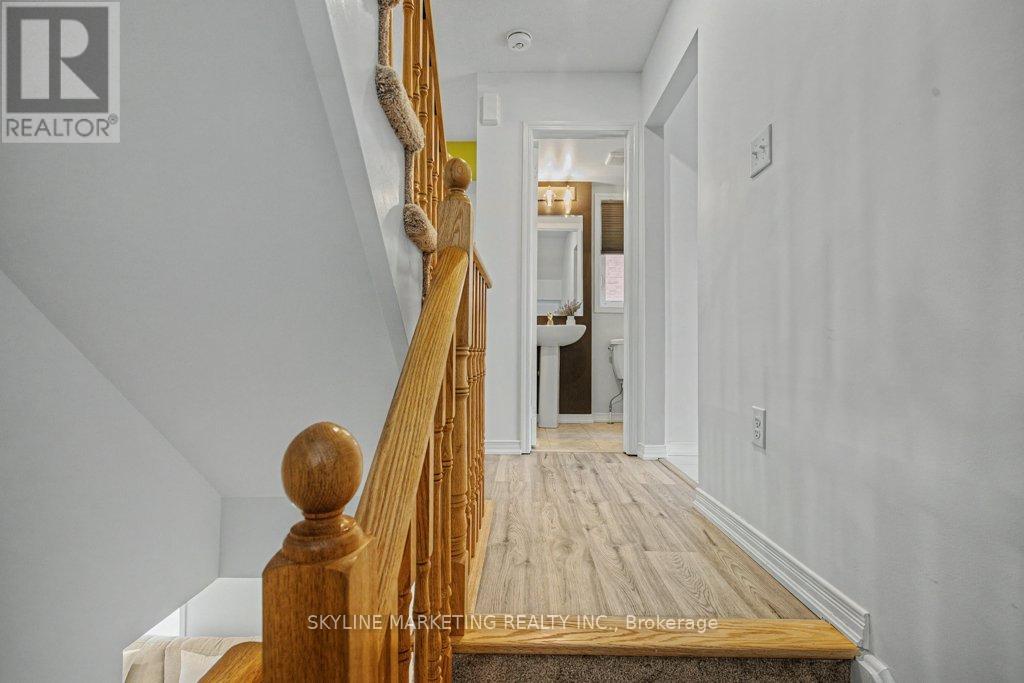 Welcome to this well-maintained freehold townhouse in Ajax. This end-unit offers the feel of a semi with the benefits of freehold ownership. Located in a quiet, family-friendly community, this all-brick home features 3 bedrooms and 2.5 bathrooms, a functional layout, and excellent natural light throughout.The main level offers a welcoming family room, inviting foyer, direct garage access, and ample storage. The second level showcases a bright open-concept living and dining area anchored by an upgraded kitchen-ideal for everyday living and entertaining. A private balcony off this level provides a perfect outdoor retreat.Upstairs, the top floor features three bedrooms with ample closet space, including a comfortable primary bedroom with ensuite privileges.The unfinished basement offers excellent future potential, featuring high ceilings and above-grade windows. Laundry is conveniently located in the basement, keeping the upper levels dedicated to living space.Parking includes one car garage parking, with additional driveway parking.Conveniently located close to parks, playgrounds, trails, schools, and the Audley Recreation Centre, as well as Costco, shopping, restaurants, public transit, and major highways 401, 407, and 412, making daily errands and commuting effortless.Proudly owned by the original owner, this solid and versatile home is move-in ready with room to grow. (42133245)