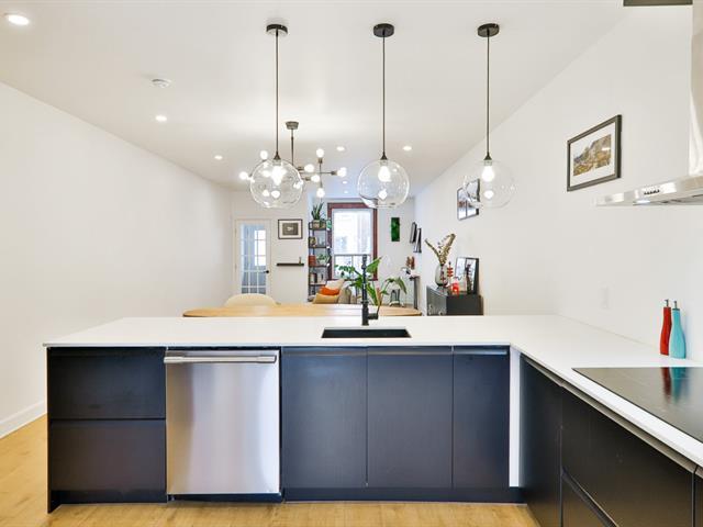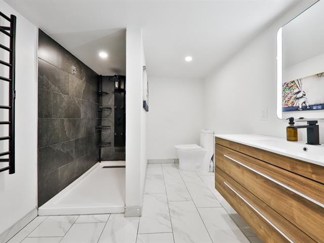 Welcome to 7823 St-Dominique, a stunning ground-floor condo with a fully finished basement, carefully renovated by the current owners. Modern, sleek kitchen with ample storage, bright living area, powder room and office space on the main floor, with direct access to the newly redone terrace and private yard bordered by hedges. In the basement: 2 bedrooms, 2 full bathrooms, family room, laundry area and storage, including a primary suite with custom walk-in closet. Separate basement entrance and 3 wall-mounted heat pumps for optimal comfort. Welcome all! (55554717)