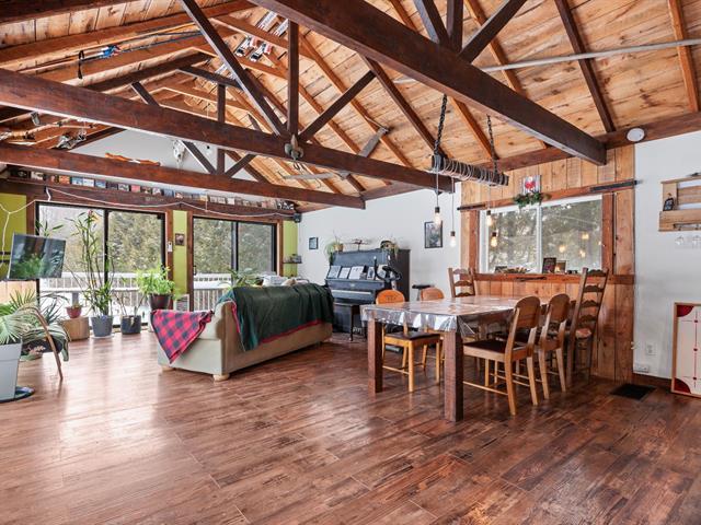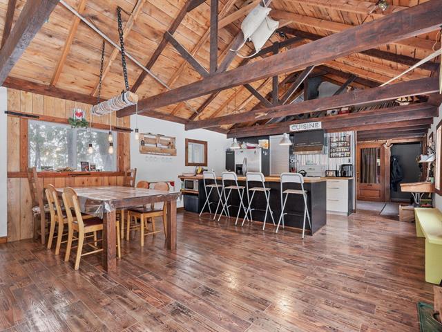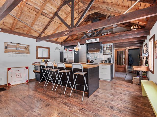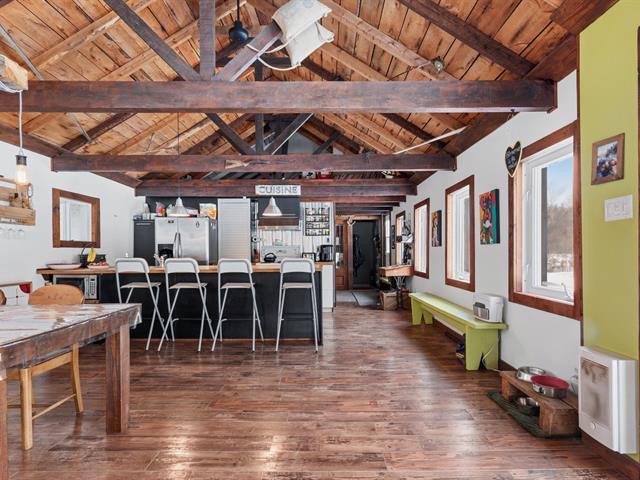 Maison plain-pied entièrement reconstruite en 2010, offrant un espace de vie à aire ouverte avec plafond de 12'5 et fenestration généreuse, mettant en valeur la cuisine dotée d'un vaste îlot de 11'2. Une mezzanine propose un espace ludique idéal pour les enfants. Le sous-sol, muni d'une entrée extérieure, d'un poêle au bois et d'un abondant espace de rangement, permet de multiples usages, dont l'aménagement d'un atelier. Un garage de 13'x23' complète l'ensemble. Le terrain de plus de 42 000 pi², sans voisin à l'arrière et bordé d'arbres matures, assure une tranquillité exceptionnelle. (58050922)
