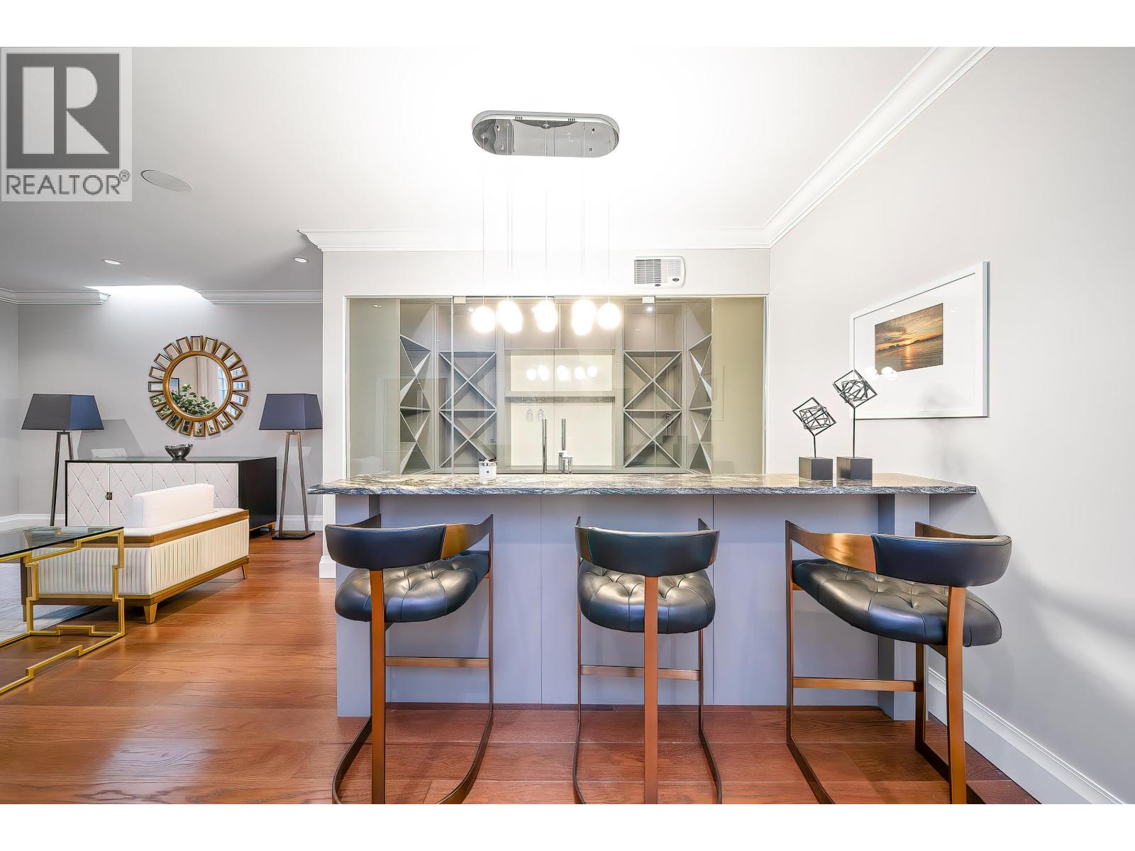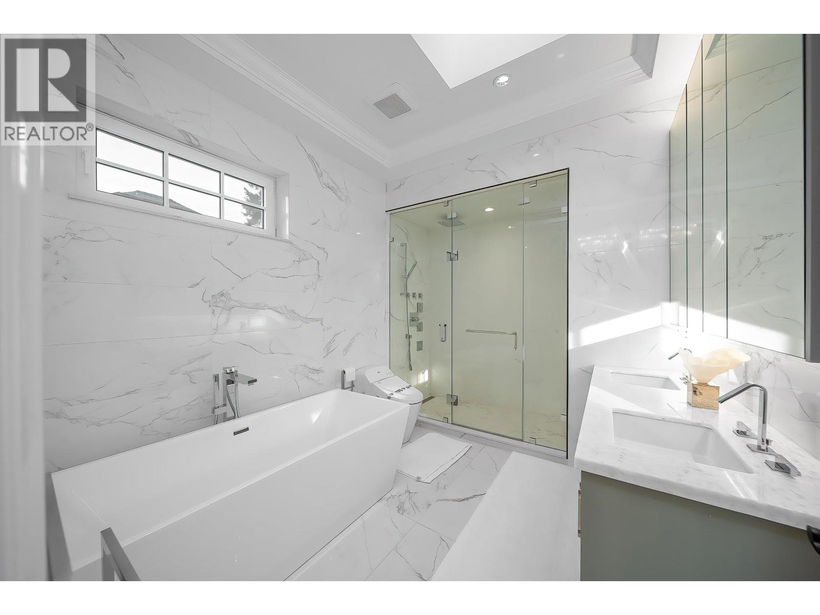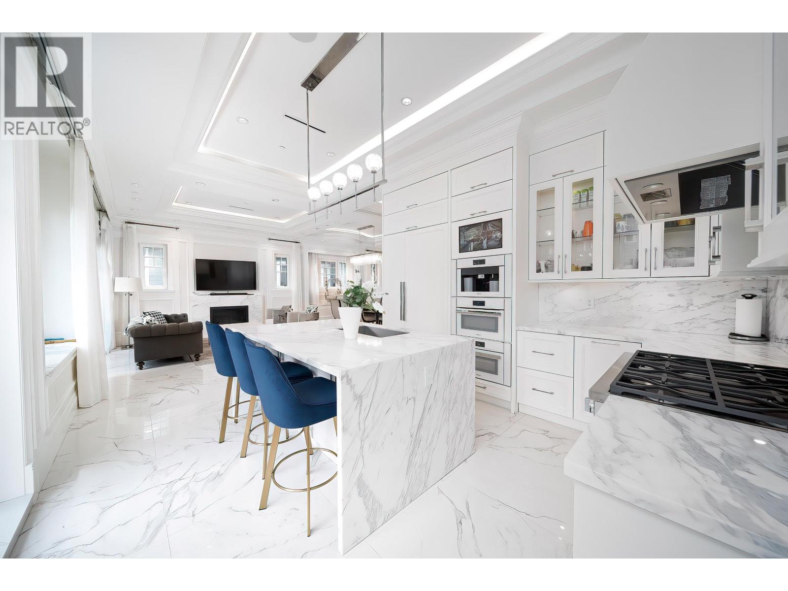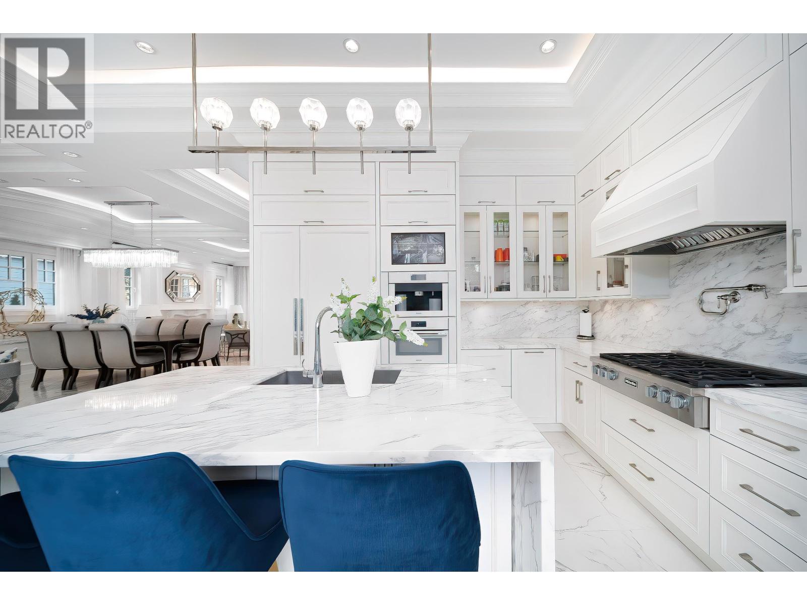 Stunning near-new Kerrisdale home designed by Raffaele & Associates, offering 6 beds and 7 baths with a well-designed, spacious layout. Features include soaring 11-ft high ceilings on the main floor, premium finishes, and elegant detailing throughout. Gourmet kitchen with high-end appliances and custom cabinetry, ideal for family living and entertaining. Bright living and dining areas open to a beautifully landscaped private backyard. Upstairs offers generous bedrooms with ensuites, including a luxurious primary suite with spa-inspired bathroom and walk-in closet. Fully finished basement provides additional living space. Situated on a beautiful Kerrisdale area, surrounded by newer luxury homes. Close to Crofton House, Point Grey Secondary, Kerrisdale shopping, dining, and parks. (32441494)