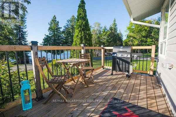 Rare Lakefront Offering Featuring Two Fully Renovated Detached Cottages on 1.5 Acres with 200 Ft of Waterfront. An exceptional opportunity for multi-generational living, a private family retreat, or investment income. This versatile property includes two separate cottages, each with direct lake access and shared private dock. Cottage One offers a beautifully updated 2-bedroom, 1-bathroom layout with a bright living area and picturesque lake views, ideal for year-round living or weekend escapes. Cottage Two features 3 bedrooms and 1 bathroom, a spacious living area, full kitchen, and walkout to a private deck overlooking the water - perfect for entertaining or rental potential. Enjoy breathtaking westerly sunsets, swimming, boating, and fishing from your own shoreline. A hot tub is thoughtfully positioned between the cottages, creating a private space to relax and unwind while taking in lake views. For added reliability, the property is equipped with two backup generators servicing both cottages. A unique chance to own a multi-dwelling waterfront property offering privacy, recreation, and strong income potential in a true cottage country setting. (42134596)