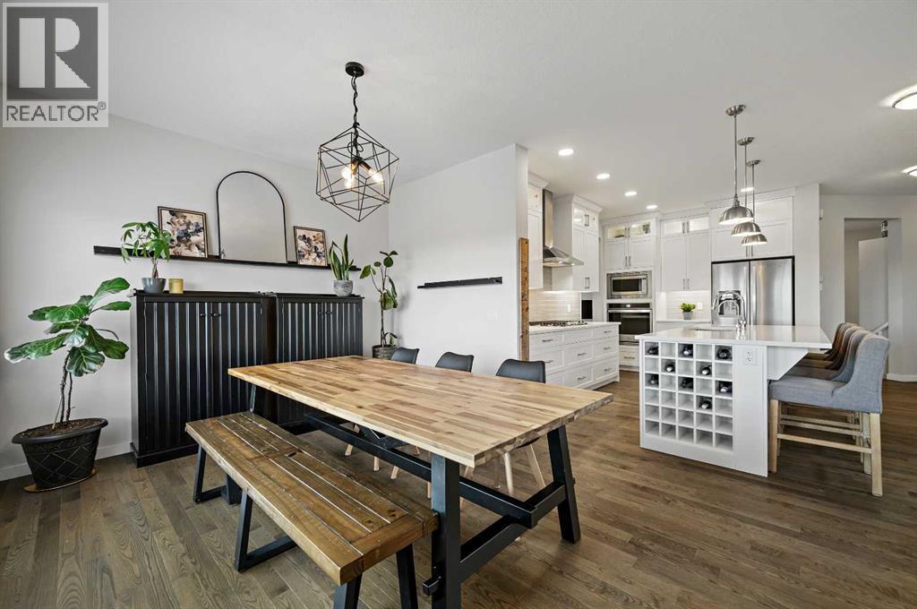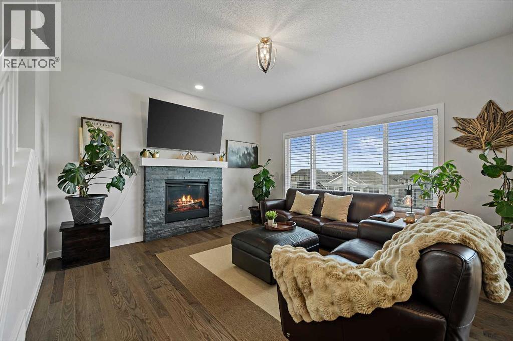 Luxury living meets everyday functionality in this extensively upgraded 5-bedroom, 4-bathroom modern two-storey WALK-OUT, TRIPLE GARAGE home backing directly onto pathways, no "fish bowl" here! You even get some beautiful MOUNTAIN views!Offering 3,384 sqft of total developed living space on a 4,724 sqft WALK-OUT lot, this Hillcrest home combines thoughtful design with premium finishes throughout.The main floor features 9’ ceilings, designer lighting, and a striking stone-surround gas fireplace. The chef-inspired kitchen is a showpiece with a massive flush quartz island with built-in wine storage and seating for four, full-height cabinetry with glass upper doors including accent lighting and under-cabinet lighting, farmhouse under-mount stainless steel sink, gas cooktop stove, built-in wall oven and microwave, chimney-style hood fan, tile backsplash, and a large pantry. A tucked-away tech space/drop zone behind the kitchen offers the perfect homework or work-from-home station. The sunk-in mudroom includes built-in lockers and bench seating for organized family living.Upstairs you’ll find four bedrooms — ALL with WALK-IN CLOSETS — plus a large central bonus room with VAULTED ceilings, ideal for family movie nights or a kids’ retreat. The spacious primary suite features a TRAY ceiling, separate recessed (dimmable) pot lights and large walk-in closet with built-ins. The luxurious 5-piece ensuite offers dual sinks with a raised vanity, standalone soaker tub, and a fully tiled shower with additional wand/control. A second 5-piece bathroom serves the additional bedrooms with a separate pocket door to the tub/shower and toilet for added convenience and functionality.The fully developed walk-out basement offers a large recreation area, fifth bedroom, 4pc bathroom, 2 storage rooms and direct access to the recently landscaped backyard that opens seamlessly to the pathway system leading to multiple parks, schools, shopping and more! The large upper deck finished in Dura dek gives the bottom stone patio coverage for those rainy spring days ahead.Enjoy the elevated glass-panel deck finished with duradek, has a BBQ gas line and unobstructed views overlooking the green space. The TRIPLE tandem garage provides exceptional parking, storage, and workspace flexibility.Additional upgrades include: Dual-zone high-efficiency furnace, high-efficiency water heater, reverse osmosis system, water softener and load management system to meet all current required codes.Located close to schools, parks, playgrounds, pathways, shopping, restaurants, and medical services — this exceptional Airdrie WALK-OUT home delivers space, storage, privacy, and refined comfort in one of the city’s most desirable family communities. (31636445)
