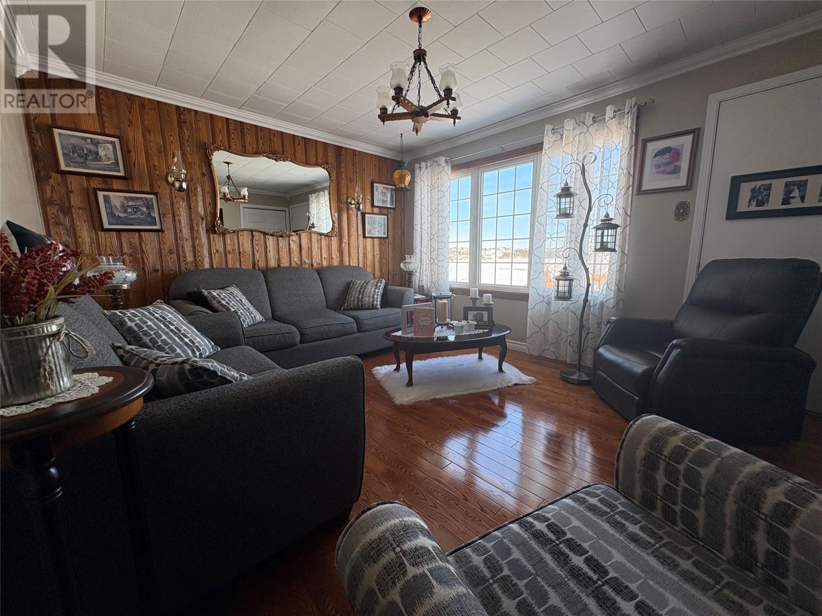 Enjoy your morning coffee while taking in stunning harbour views from the front deck of this well-maintained 3-bedroom family bungalow, ready for immediate occupancy. The main level features a relaxing living room with gorgeous views, an eat-in kitchen, three bedrooms, and a four-piece bathroom. A back porch off the kitchen leads to a spacious driveway and a well-built storage shed—perfect for outdoor toys or extra storage. The basement includes a utility/laundry area and an additional room that can be used for whatever extra space you need. The remainder of the basement provides excellent dry storage and also offers a convenient walk-out side entrance. The roof is 10-13 years old and oil tank was replaced in 2021, water tank (2020). Windows and siding won’t require replacement anytime soon. Heating is provided by an oil forced warm air furnace. The owners have downsized and are open to selling the home partially furnished. Most contents are available on reasonable terms. (30647632)
