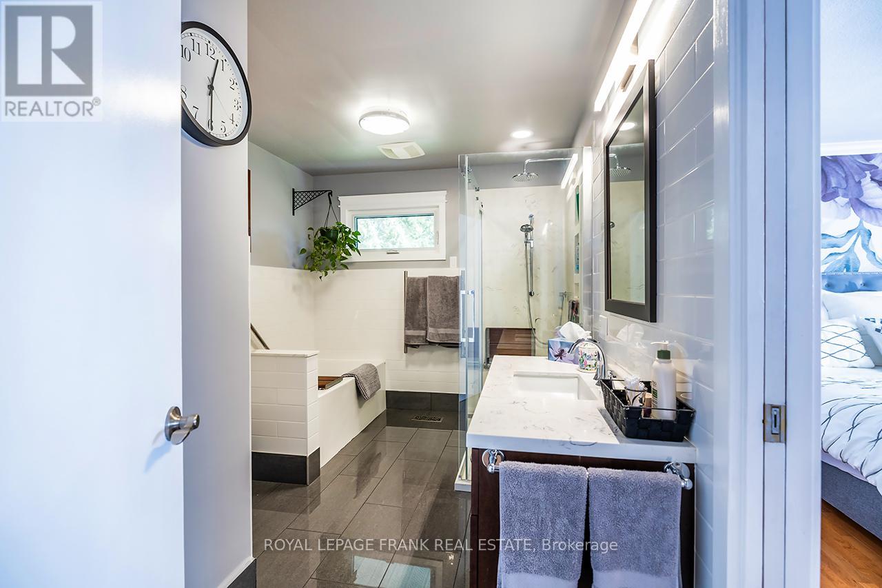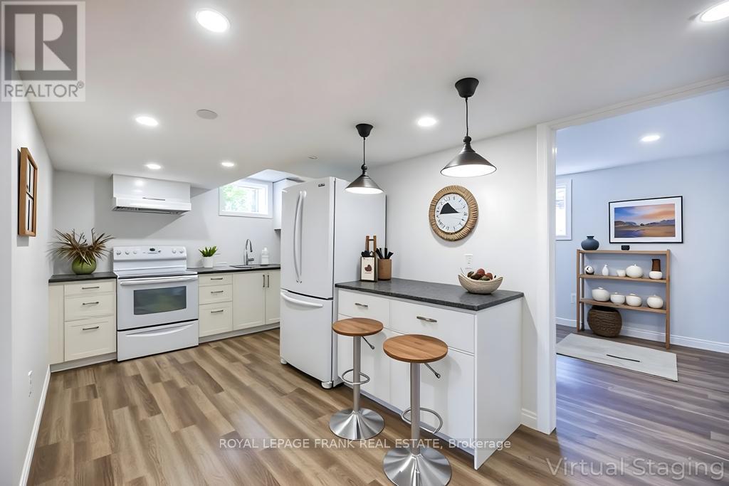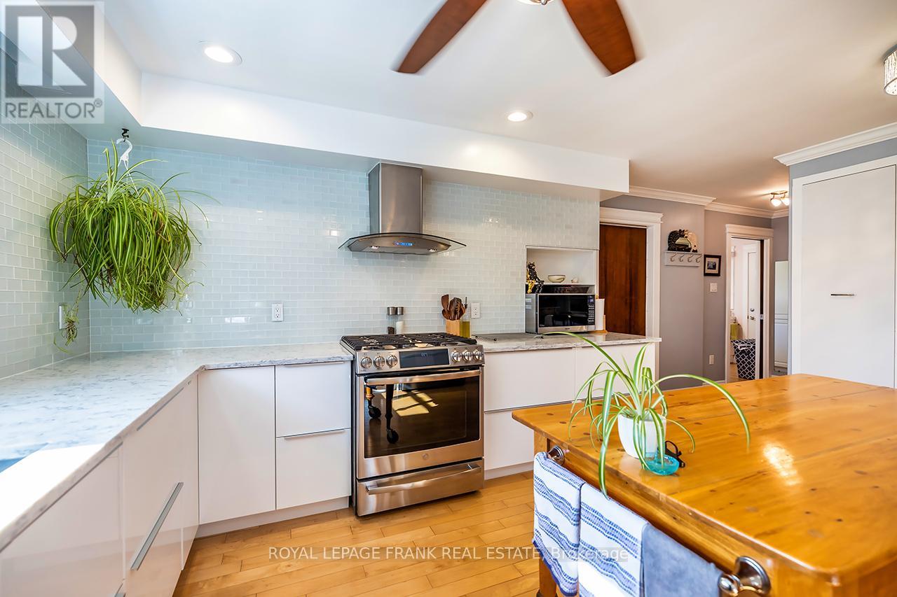 Beautifully renovated 2+2 bedroom ranch-style bungalow with finished basement and a legal 1,200 sq ft 2-bedroom apt. with private entrance. Come home to timeless Georgia Marble brick, aluminum siding, and mature maple trees. An 11-car driveway with turnaround, oversized 2-car garage, and landscaped walkway welcome you home. Inside, the spacious Foyer features granite floors and a double closet with custom shelving. The bright, open main floor showcases a Kitchen with expansive quartz counters, double sinks, range hood, stainless appliances, glass tile backsplash and smart cabinetry with drawers within drawers, and pullout pantry. A Powder Room is conveniently located near the Garage entrance. Main floor Laundry offers its own fridge, freezer, built-ins, and walkout to the fenced yard with new patio and gas BBQ hookup. The large Dining Room opens to a 3-season Sunroom, perfect for family gatherings and sunset views. Enjoy the spacious Living Room or retreat to the cozy Family Room/Den with a gas fireplace, tray ceiling, ceiling fan, and a unique wall safe. The primary Bedroom features his & hers closets, ceiling fan, and semi-ensuite bath with soaker tub and separate shower. A generous Guest Bedroom completes the main level, highlighted by hardwood floors and crown moulding throughout. Downstairs, find a Rec Room/Gym, and abundant storage. The home's true bonus is the brand-new, self-contained legal apartment-1,200 sq ft with full kitchen, Laundry, Living/Dining area, 4-pc Bath, and 2 large Bedrooms, each with double closets, plus private yard with shaded sitting area. Outside, enjoy a fenced yard with 10'x10' shed with ramp, ideal for tools or seasonal storage. The oversized garage includes two entrances to the home, three service doors, workbenches, cabinetry, utility sink with hot and cold water, and a powered 10' x 10' "drive Shed" with roll-up door. Warm, inviting, and filled with possibilities-this isn't just a house, it's a home. Come see for yourself! (42135885)