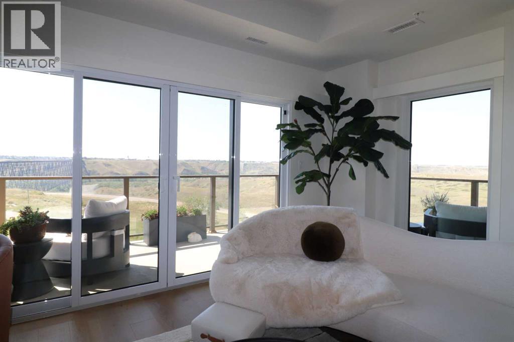 A rare opportunity to own The Breuer floor plan complete with exceptional views and extensive updates has now become available. This highly coveted corner unit is complimented by one of the nicest River Valley vantage points available from the 102 Scenic Drive complex. The wrap-around balcony offers 369 sq ft of outdoor living space and offers 3 sliding patio door access points. Combining this with large windows and an open floor plan, your views can be enjoyed from inside and out. The design of this 2-bedroom, 2-bathroom unit offers an abundance of functionality and comfort. The seamless connection of the kitchen, dining space and living room make hosting guests a breeze as well. Additional interior features include elevated ceilings, quartz counter tops, Fulgor Milano built-in appliances including a convenient induction cooktop stove, convection oven, refrigerator with water and ice features, and a microwave oven. Notable upgrades include a 50” electric fireplace, lighting and plumbing fixtures, quartz countertops, Onyx kitchen sink, walk-in coffee station/pantry and laundry room cabinets, computer station worktop and drawers, custom closet organizer systems throughout, as well as motorized blinds in the bedrooms and living room. Secured underground parking provides you with 2 parking stalls and a storage unit as well. The amenities within the building are truly exceptional and offer something for everyone. Courtyard and interior lounge areas, fully equipped conference room, sunroom/garden area, workshop, car club lounge and showroom, car wash bay, and a large courtyard with covered fireplace/conversation area. Pets are allowed but please verify certain restrictions. For added convenience, condominium fees include electricity, heat, water, sewer, garbage collection, and Professional management. (31638628)