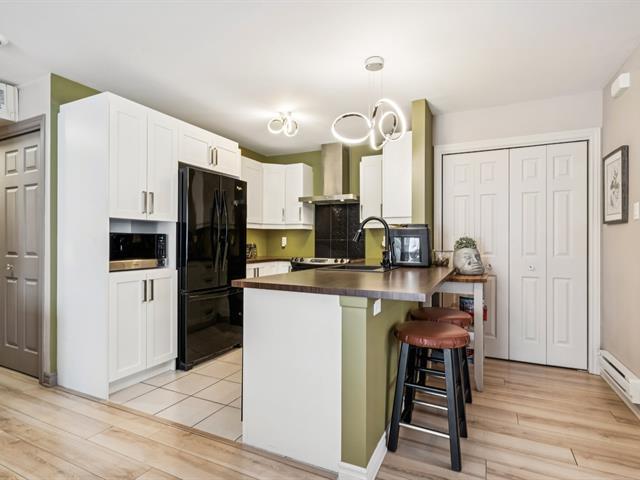 A must-see! Spacious and bright condo available now, featuring 2 bedrooms, a third room that can be used as a home office or for ample storage, and a functional kitchen with generous counter space. The entrance closet has been converted into a pantry, providing plenty of storage! Two private balcony-terraces, an outdoor storage unit, a wall-mounted heat pump, a new 2024 water heater, and a walk-in closet in the master bedroom complete the package. Located steps from public transportation, this unit is immaculate and meticulously maintained. The condo association is up-to-date with Bill 16, so no special assessments are required. Schedule a vi (50725342)