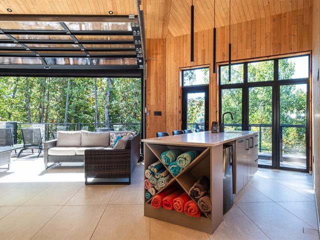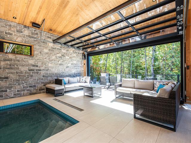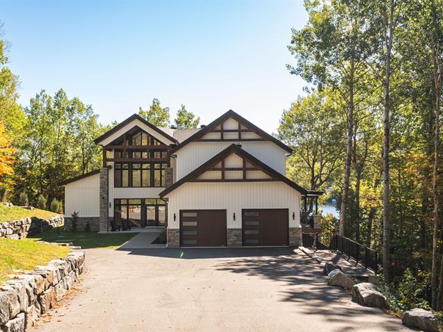 The waterfront chalet everyone dreams of! Built in 2021 on a spectacular 67,389sf lot (1.5 acres) with ideal southwest sun exposure, this property stands out with its soaring cathedral ceiling, abundant windows, and exceptional craftsmanship. 5 bedrooms welcome family and friends in absolute comfort. Designed for a true four-season lifestyle, it features an indoor pool, double garage, and complete privacy with no visible neighbors. Enjoy 178ft of frontage on a lake with remarkable 30ft water clarity, classified as ultra-oligotrophic. A private estate that is modern yet timeless, where luxury meets nature, just 20 minutes from Mont-Tremblant (53735555)
