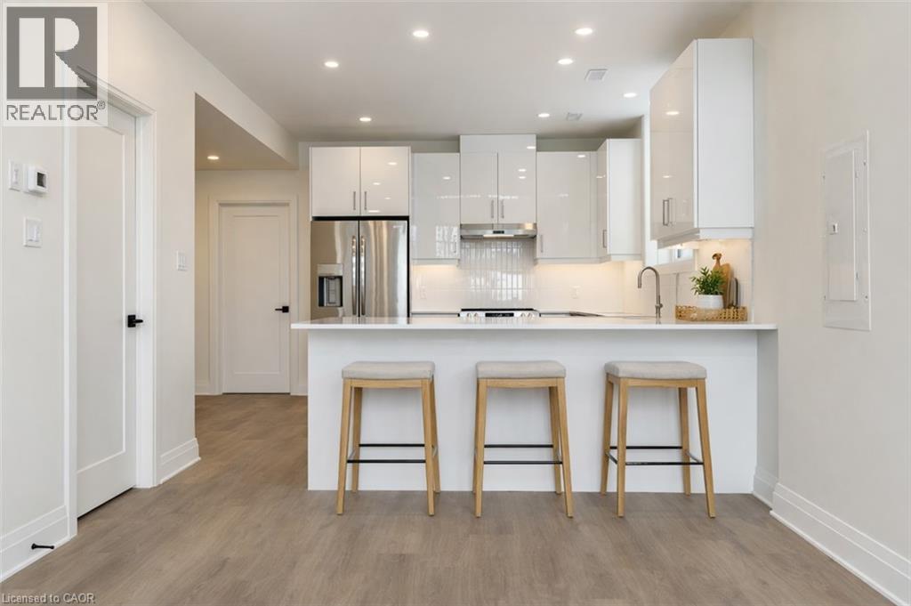 Welcome to this bright and modern lower-level apartment offering approximately 950 square feet of thoughtfully designed living space in a quiet, sought-after setting. The standout feature is the dramatic living room with soaring 20-foot ceilings and expansive windows that fill the home with natural light - a unique feature not found in homes like this. The contemporary kitchen includes under-cabinet lighting, clean finishes, and a functional layout perfect for everyday living. This unit features two bedrooms, a four-piece main bathroom, plus an additional two-piece powder room for added convenience. Step outside to your private covered patio, ideal for relaxing or enjoying fresh air year-round. Even better, the unit includes two tandem driveway parking spaces - something most rentals of this size simply don't offer. Tucked away at the end of a quiet street and overlooking forest and parkland, this is the perfect place to call home. Please note: Photos have been virtually staged for your viewing pleasure. (70158536)