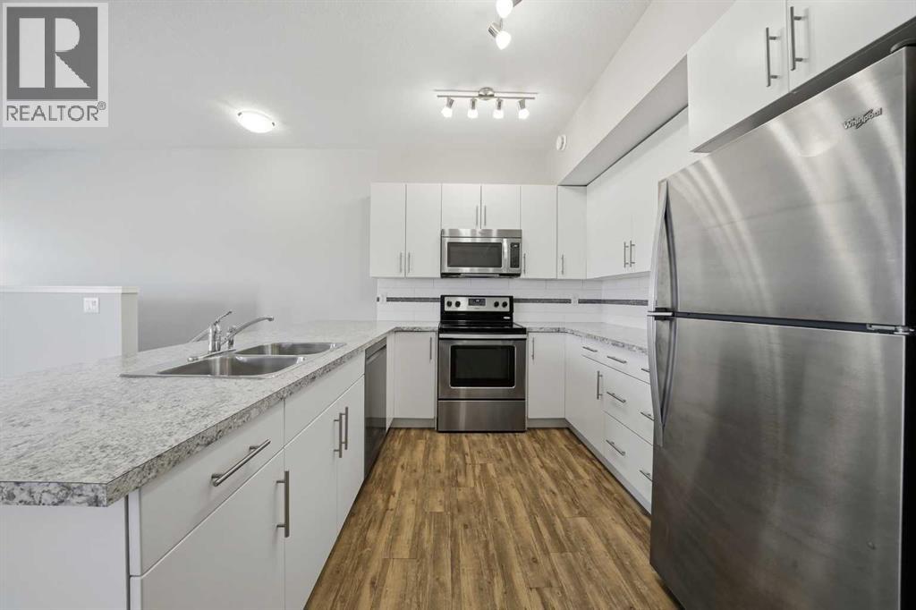 UPPER LEVEL CONDO AT VALLEY CROSSING - Beautifully maintained EAST FACING condo features an OPEN CONCEPT and is close to the skate and mountain bike parks. This development borders the popular Abbey Center, a park, walking trails and has convenient entry to Highway 2 and Highway 2A. Inside you'll find 2 BEDROOMS & 2 full BATHROOMS. There is also IN-SUITE LAUNDRY, LARGE COVERED DECK and 2 assigned POWERED PARKING STALLS right outside your door plus lots of visitor stalls. The kitchen has ample counter space with LARGE PENINSULA and cabinets that have been upgraded to soft-closures and has stainless steel appliances. This condo is very well ran and CONDO FEES are LOW. (31639778)