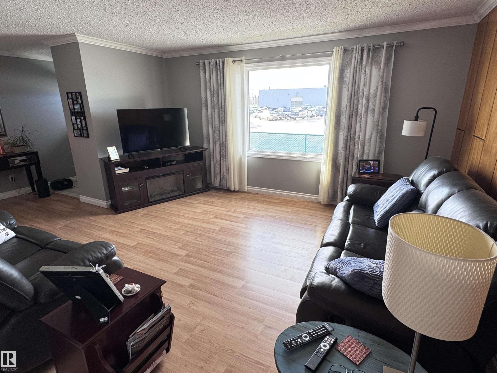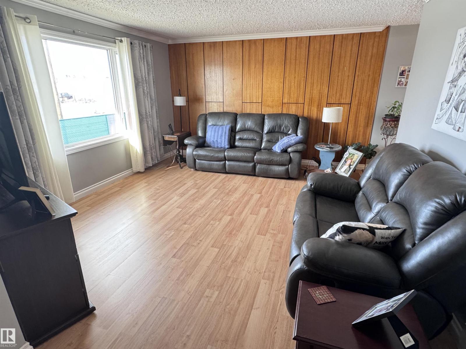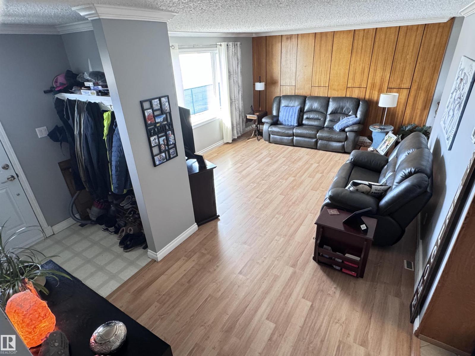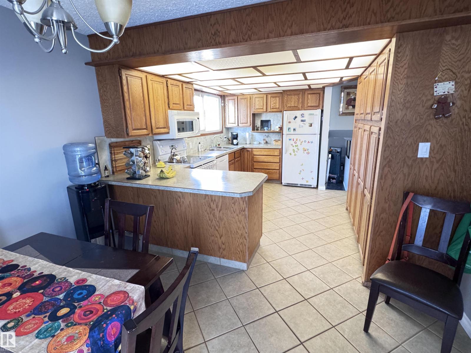 Beautiful family home with a 26×38.5 triple garage, perfectly located right across from Westlock Elementary! Offering over 2,225 sq ft of finished living space, this well-maintained property features a huge rear mudroom leading to a cozy family room, plus a bright main floor with a spacious kitchen, abundant solid oak cabinetry, generous counter space, and dining area with access to the composite deck with aluminum railing. The front living room completes the main level. Upstairs you’ll find a renovated 4-pc bath and three bedrooms, including a primary suite with his-and-hers closets. The basement offers a large rec room, storage, vented cold room, mechanical area, 3-pc bath, and laundry. Outside, enjoy chain-link fencing, a massive patio, and ample parking. With only one neighbor to the east and direct access to school, park, and outdoor rink, this is an ideal family property with exceptional space and storage. Wheel chair ramp is removable if not needed. (33827557)