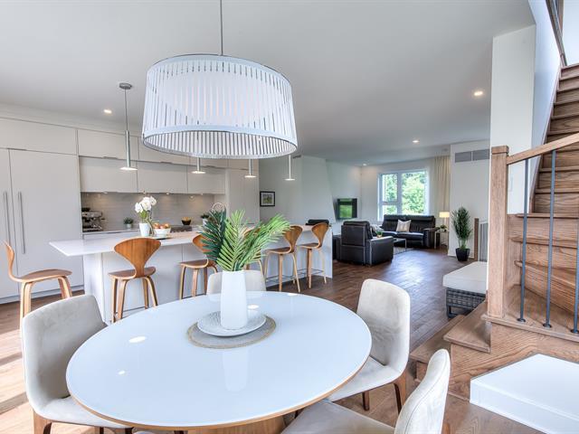 Discover this stunning corner townhouse, bathed in natural light thanks to its prime orientation and numerous windows. Tastefully decorated, it captivates from the moment you step inside with its exquisite hardwood floors, soaring 9-foot ceilings, and a warm yet elegant atmosphere.The living room, enhanced by a gas fireplace, flows seamlessly into a beautiful modern kitchen, creating a space that is both inviting and refined. The kitchen truly the heart of the home is designed to impress, featuring a large central island, ample storage. (See addendum for more details.) (57422624)