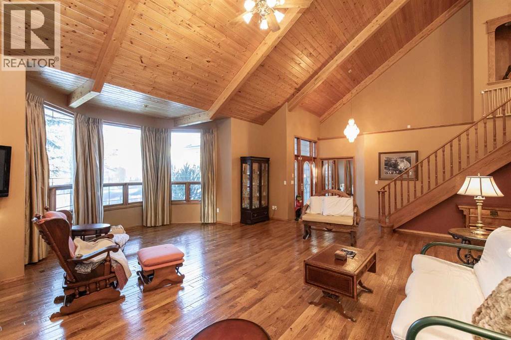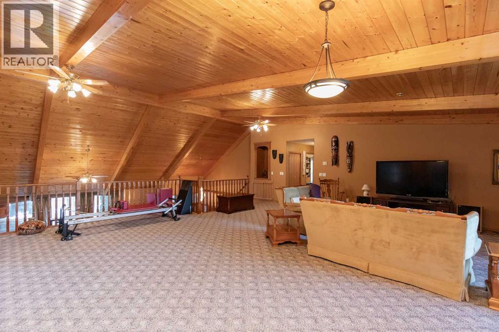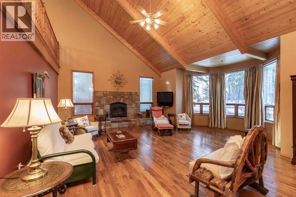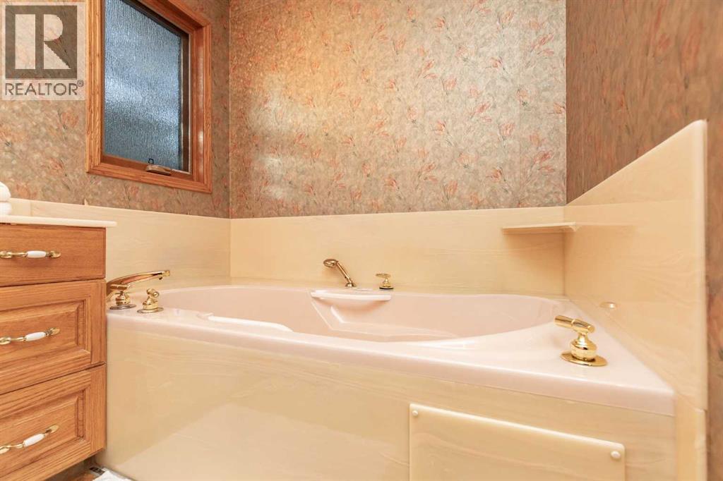 Welcome to this exceptional custom-built 4 bedroom, 3 bathroom executive home offering over 4,200 sq ft of beautifully developed living space. Ideally situated on a large, treed lot siding onto a scenic walking path, this property combines privacy, space, and thoughtful design. A soaring pine-lined vaulted ceiling creates a grand first impression as you enter the wheelchair-accessible main floor, featuring no-step entry and extra-wide hallways. The formal living room showcases a striking stone-faced fireplace, hardwood and slate tile flooring, and floor-to-ceiling bay windows overlooking the front yard. The spacious kitchen is designed for both everyday living and entertaining, offering an abundance of oak cabinetry, ample counter space, Sub-Zero refrigerator, double wall ovens, full tile backsplash, walk-in pantry, and a large island with sink and lowered eating bar. A wall of windows provides picturesque views of the park-like backyard, while a garden door leads to the covered deck and concrete patio. The adjoining dining area comfortably accommodates large family gatherings. The expansive main floor primary suite easily fits a king-sized bed and additional furnishings, and features two walk-in closets and a luxurious 5-piece ensuite complete with air tub, separate shower, dual vanities, and a private water closet with bidet. A second main floor bedroom is conveniently located next to the 3-piece main bath. The well-appointed laundry room offers extensive cabinetry, folding counter, and built-in desk. A generous mudroom off the garage entrance includes a built-in bench for added functionality. A grand staircase leads to the upper level where you’ll find a massive family room with vaulted ceiling, large windows, and wood railing overlooking the main floor. Two generously sized bedrooms (both with dual closets, one with a built-in desk) are situated off the family room and share a 4-piece bathroom. The crawl space provides additional storage options. The heate d oversized triple attached garage includes in-floor heat, an RV bay, workshop space, and man doors to both the front and backyard. The beautifully landscaped yard features mature trees, shrubs, perennials, and a garden shed, creating a serene outdoor retreat. Additional highlights include three furnaces, central air conditioning, HEPA filtration system, hot water on demand, water filtration system, water softener, partially heated exterior front walkway, and call bells in the primary bedroom, ensuite, and kitchen. This is a one of a kind property that is awaiting its new owners! (31639414)