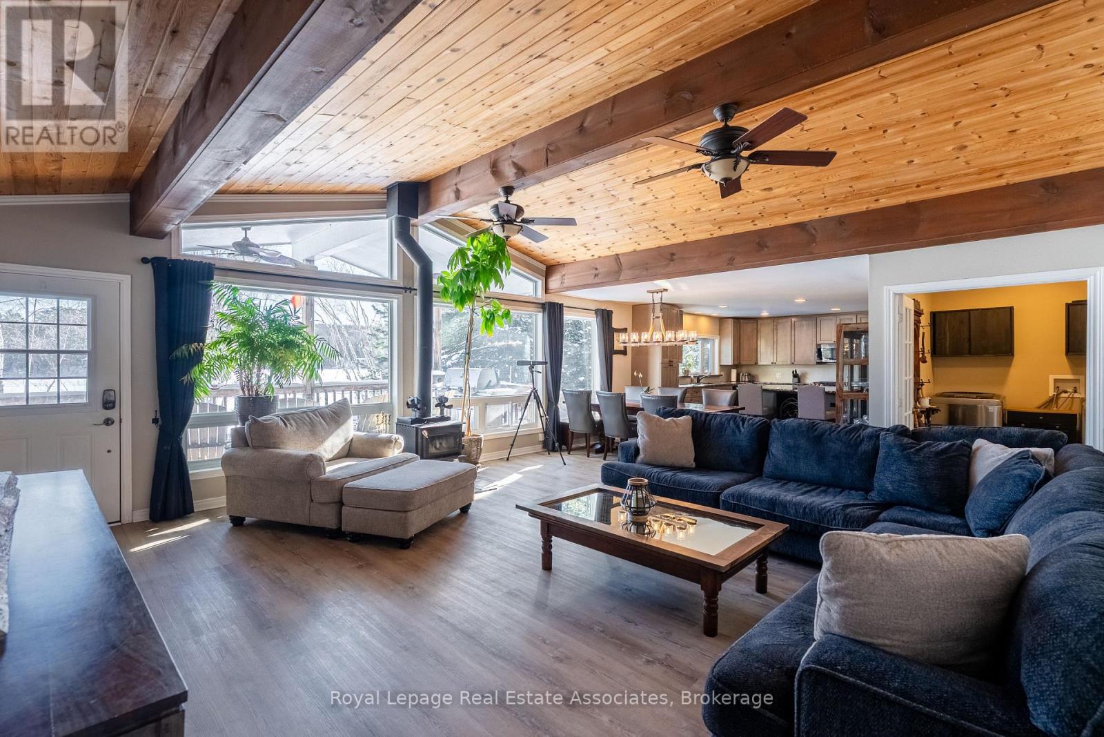 Welcome to 196 Circle Rd on Lake St. Peter, a rare waterfront package offering the perfect blend of year round comfort, incredible recreation, and serious space for all your Cottage Country toys. Set on nearly an acre of land with a quiet park next door, this property offers privacy, breathing room, and an unbeatable lifestyle. Outdoor enthusiasts will love the proximity to ATV and snowmobile trails, making this an ideal four season escape. The standout feature is a massive 30' x 50' heated and insulated shop with an 80,000 BTU heater and a spacious loft above. This is the ultimate setup for storing snowmobiles, ATVs, boats, tools, and gear. Inside, enjoy a thoughtful layout with a recently renovated kitchen, a primary suite and guest bedroom on the main floor, plus a finished basement featuring two additional bedrooms, a 3 piece washroom, extra storage, and a walkout. This space is perfect for hosting family and friends. Built for worry free ownership with a forced air furnace with heat pump, on demand hot water, deep drilled well, and a 14kW automatic backup generator. Step outside to take in spectacular views of Lake St. Peter from nearly 100 feet of beautifully landscaped shoreline, enhanced by impressive stone retaining walls, a private beach with sandy wading entry, and nearly new aluminum docks. This is the ultimate setting for swimming, boating, entertaining, and endless summer memories. If you have been searching for a waterfront property that truly delivers the Cottage Country lifestyle, this is it. (42138431)
