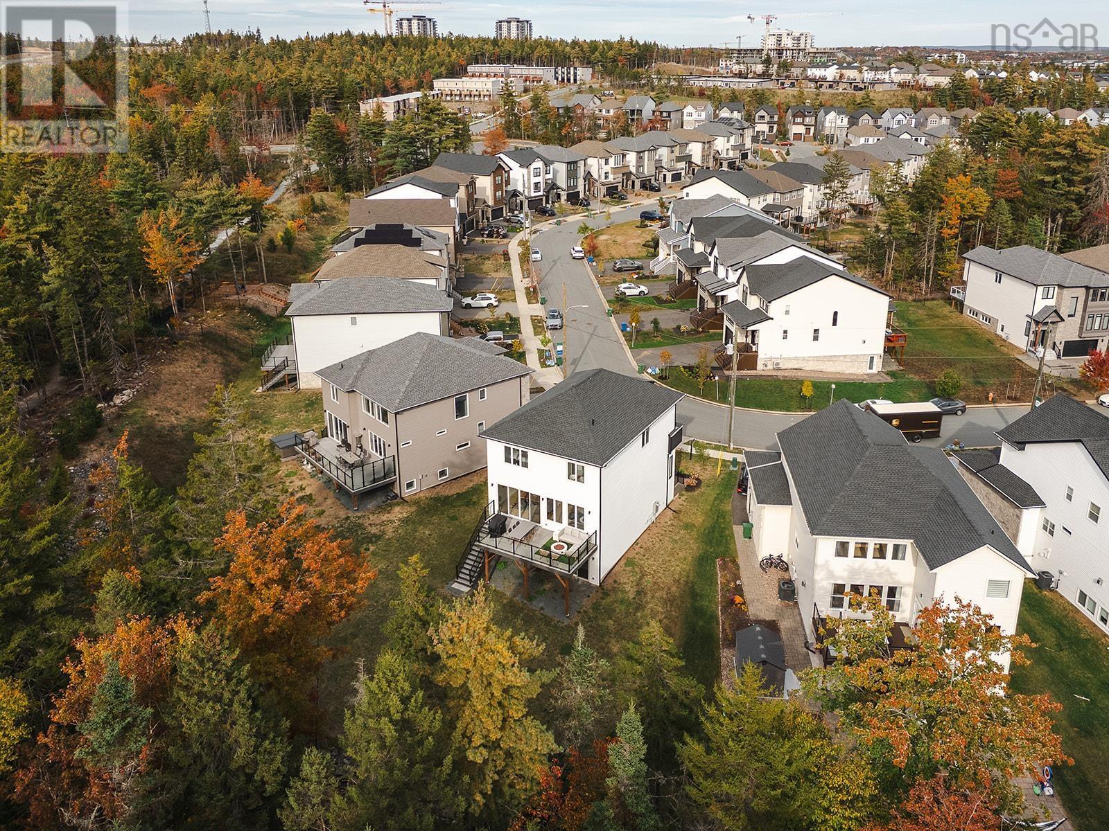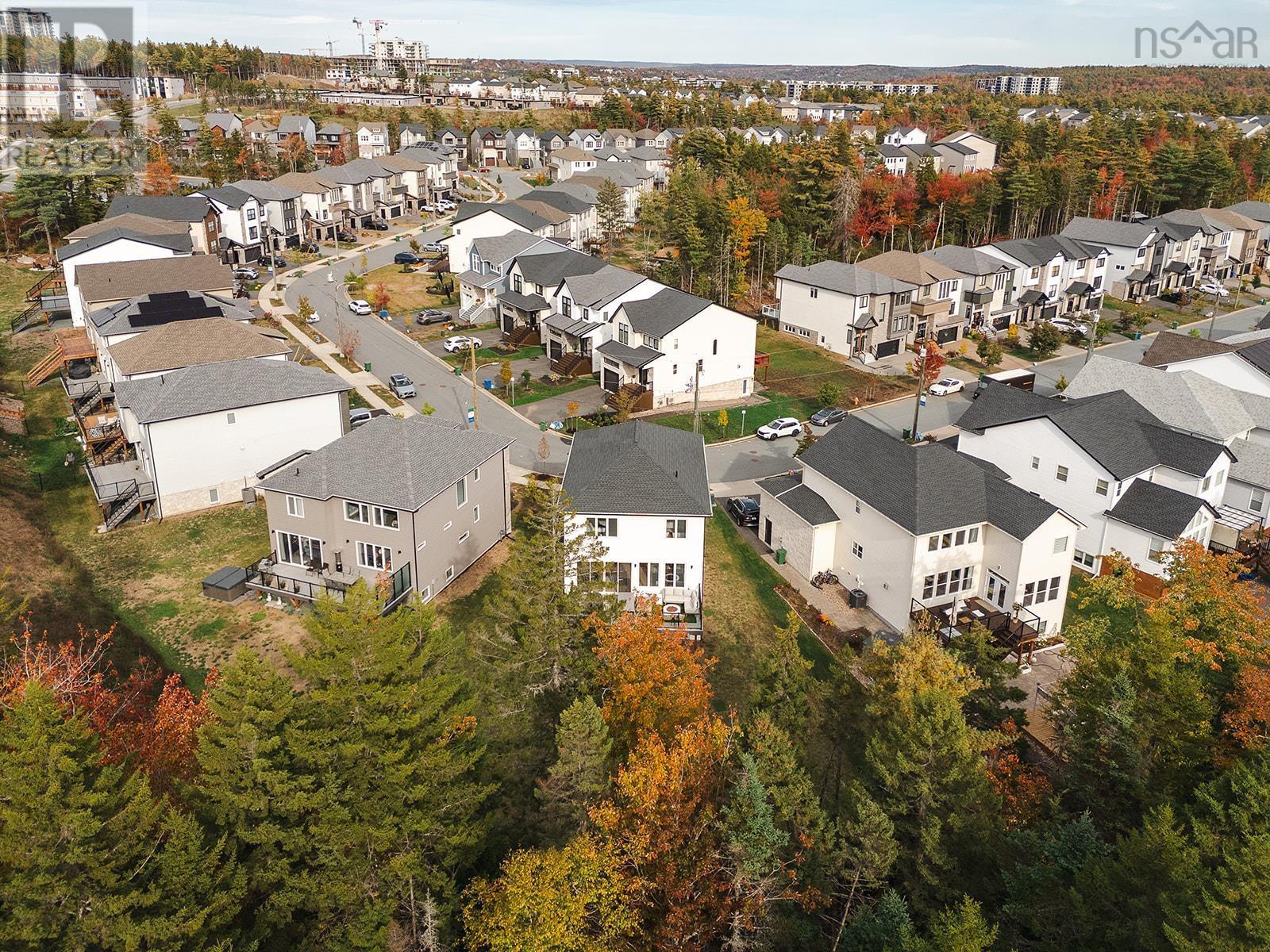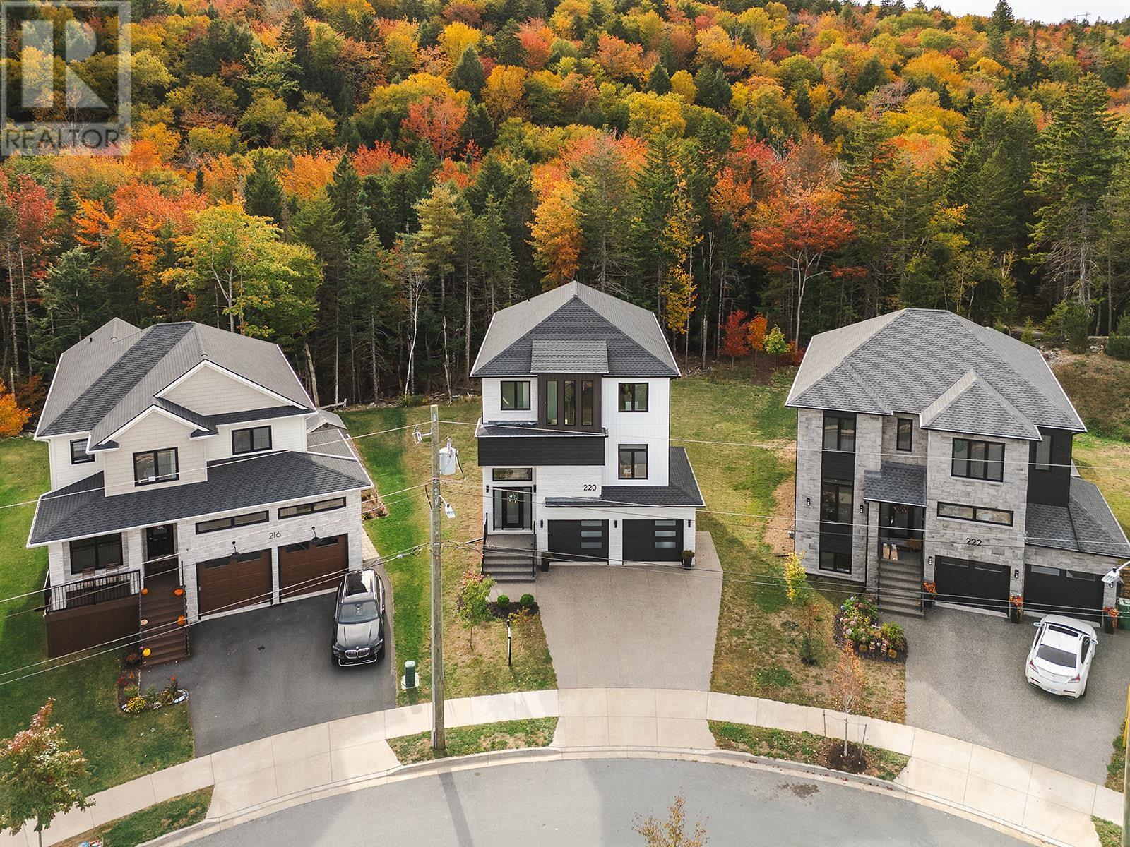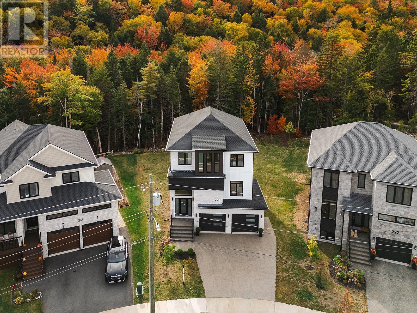 220 Talus is the one you've been waiting for! A truly stunning, 3-year-old Cresco custom build set on one of the most desirable and expansive lots in all of Brooklineat close to 16,000 sq/ft, its almost triple the size of the avg lot in the neighbourhood. This rare gem backs onto the protected Blue Mountain Birch Cove Wilderness Area, offering a direct path and truly unmatched backyard access to one of Nova Scotias most breathtaking trail systems. Inside, the attention to detail is evident in every corner. Enjoy beautiful engineered hardwood flooring, custom tiled backsplashes and top-of-the-line finishes and black stainless steel appliances. Step outside to your full-length composite back deck, complete with a staircase leading down to the spacious, landscaped backyarda perfect setup for family gatherings or future outdoor upgrades. Upstairs youll love having laundry on the upper level, but youre really going to love that each bedroom comes with its very own dedicated ensuite! No more sharing sinks or bathrooms! Downstairs, the walkout basement is an entertainers dream, featuring a gorgeous custom wet bar and seamless walkout patio doors to the outdoors. The oversized double car garage provides ample space for vehicles and storage. This home is also future-ready, with 400 amp service, roughed-in electrical for a future in-ground pool, solar panel readiness, and two EV charging stations already in place. Truly a one-of-a-kind opportunity in West Bedford. Dont miss your chancehomes like this dont come around often! (231957428)