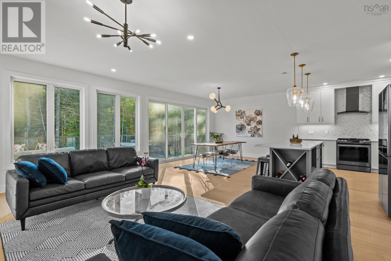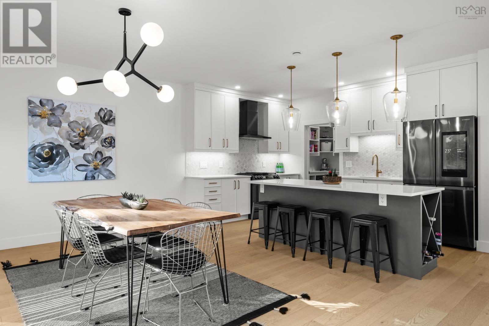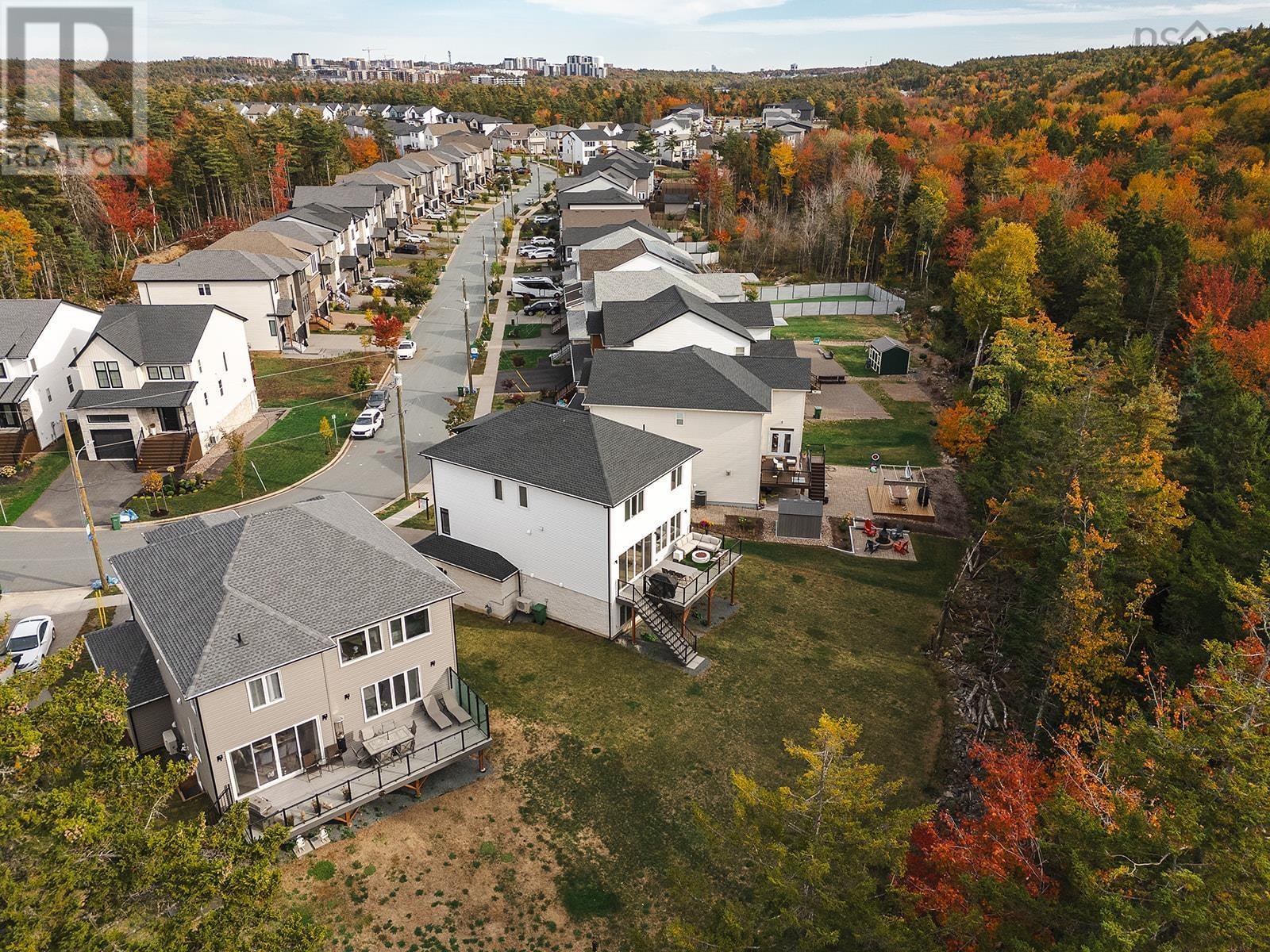 220 Talus is the one you've been waiting for! A truly stunning, 3-year-old Cresco custom build set on one of the most desirable and expansive lots in all of Brooklineat close to 16,000 sq/ft, its almost triple the size of the avg lot in the neighbourhood. This rare gem backs onto the protected Blue Mountain Birch Cove Wilderness Area, offering a direct path and truly unmatched backyard access to one of Nova Scotias most breathtaking trail systems. Inside, the attention to detail is evident in every corner. Enjoy beautiful engineered hardwood flooring, custom tiled backsplashes and top-of-the-line finishes and black stainless steel appliances. Step outside to your full-length composite back deck, complete with a staircase leading down to the spacious, landscaped backyarda perfect setup for family gatherings or future outdoor upgrades. Upstairs youll love having laundry on the upper level, but youre really going to love that each bedroom comes with its very own dedicated ensuite! No more sharing sinks or bathrooms! Downstairs, the walkout basement is an entertainers dream, featuring a gorgeous custom wet bar and seamless walkout patio doors to the outdoors. The oversized double car garage provides ample space for vehicles and storage. This home is also future-ready, with 400 amp service, roughed-in electrical for a future in-ground pool, solar panel readiness, and two EV charging stations already in place. Truly a one-of-a-kind opportunity in West Bedford. Dont miss your chancehomes like this dont come around often! (231957428)