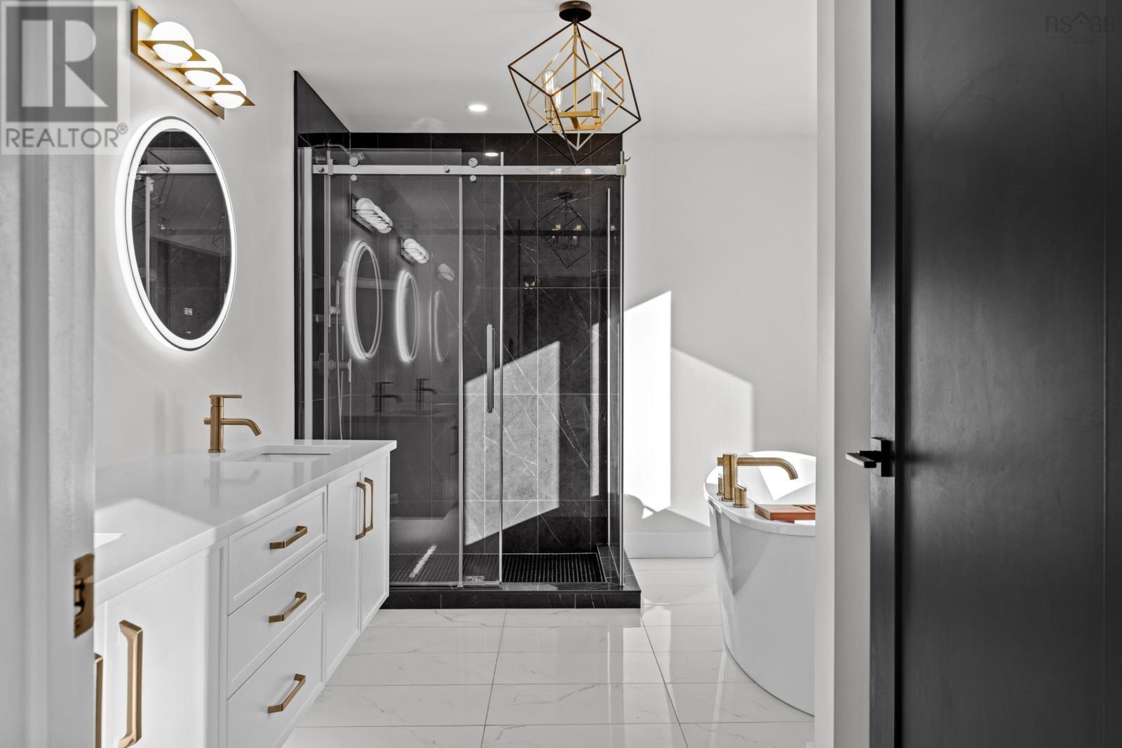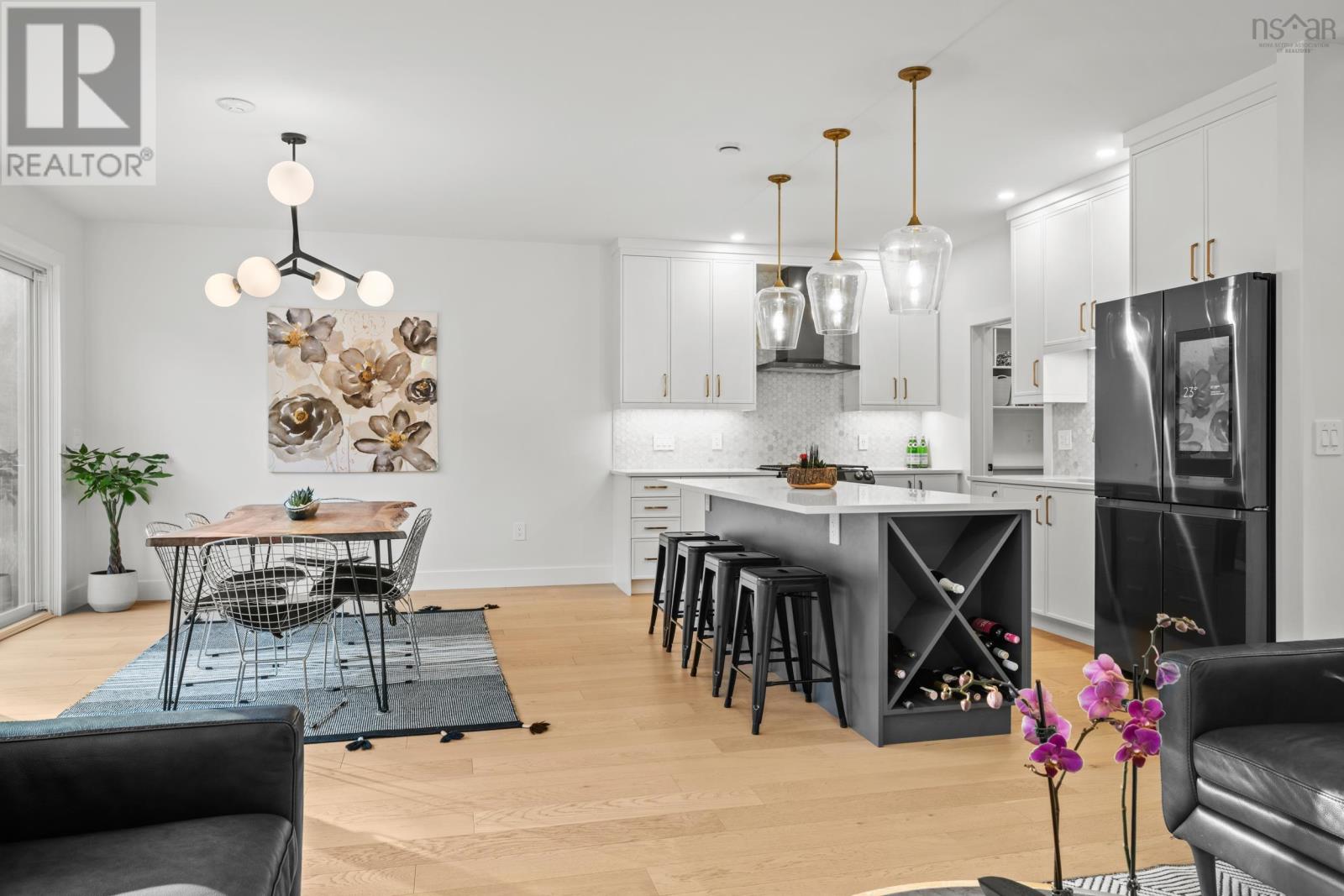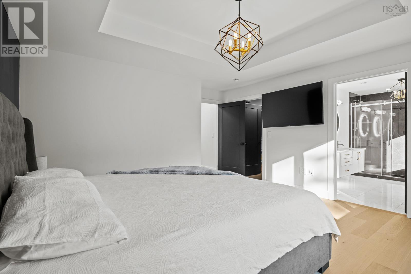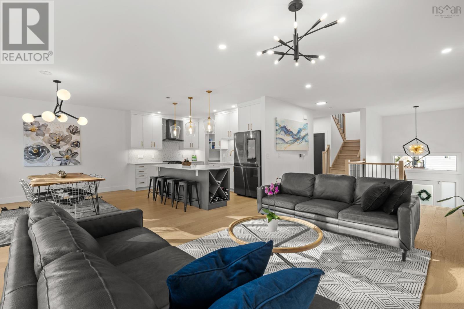 220 Talus is the one you've been waiting for! A truly stunning, 3-year-old Cresco custom build set on one of the most desirable and expansive lots in all of Brooklineat close to 16,000 sq/ft, its almost triple the size of the avg lot in the neighbourhood. This rare gem backs onto the protected Blue Mountain Birch Cove Wilderness Area, offering a direct path and truly unmatched backyard access to one of Nova Scotias most breathtaking trail systems. Inside, the attention to detail is evident in every corner. Enjoy beautiful engineered hardwood flooring, custom tiled backsplashes and top-of-the-line finishes and black stainless steel appliances. Step outside to your full-length composite back deck, complete with a staircase leading down to the spacious, landscaped backyarda perfect setup for family gatherings or future outdoor upgrades. Upstairs youll love having laundry on the upper level, but youre really going to love that each bedroom comes with its very own dedicated ensuite! No more sharing sinks or bathrooms! Downstairs, the walkout basement is an entertainers dream, featuring a gorgeous custom wet bar and seamless walkout patio doors to the outdoors. The oversized double car garage provides ample space for vehicles and storage. This home is also future-ready, with 400 amp service, roughed-in electrical for a future in-ground pool, solar panel readiness, and two EV charging stations already in place. Truly a one-of-a-kind opportunity in West Bedford. Dont miss your chancehomes like this dont come around often! (231957428)