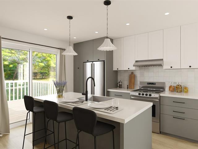 New single-storey semi-detached home with garage located on a 14,551 sq. ft. lot in East Angus! This right-side unit offers 3 bedrooms and 2 bathrooms. The main floor features an open-concept layout with a dining area, kitchen, and living room, as well as one bedroom and a bathroom. The kitchen is equipped with a central island, full-height cabinetry, and a patio door. The bathroom includes a freestanding tub and a glass and ceramic shower. The basement offers a family room, two additional bedrooms, and a second bathroom. Attached garage and a 12 x 12.1 ft patio at the rear. GST/QST must be added to the asking price (52281065)