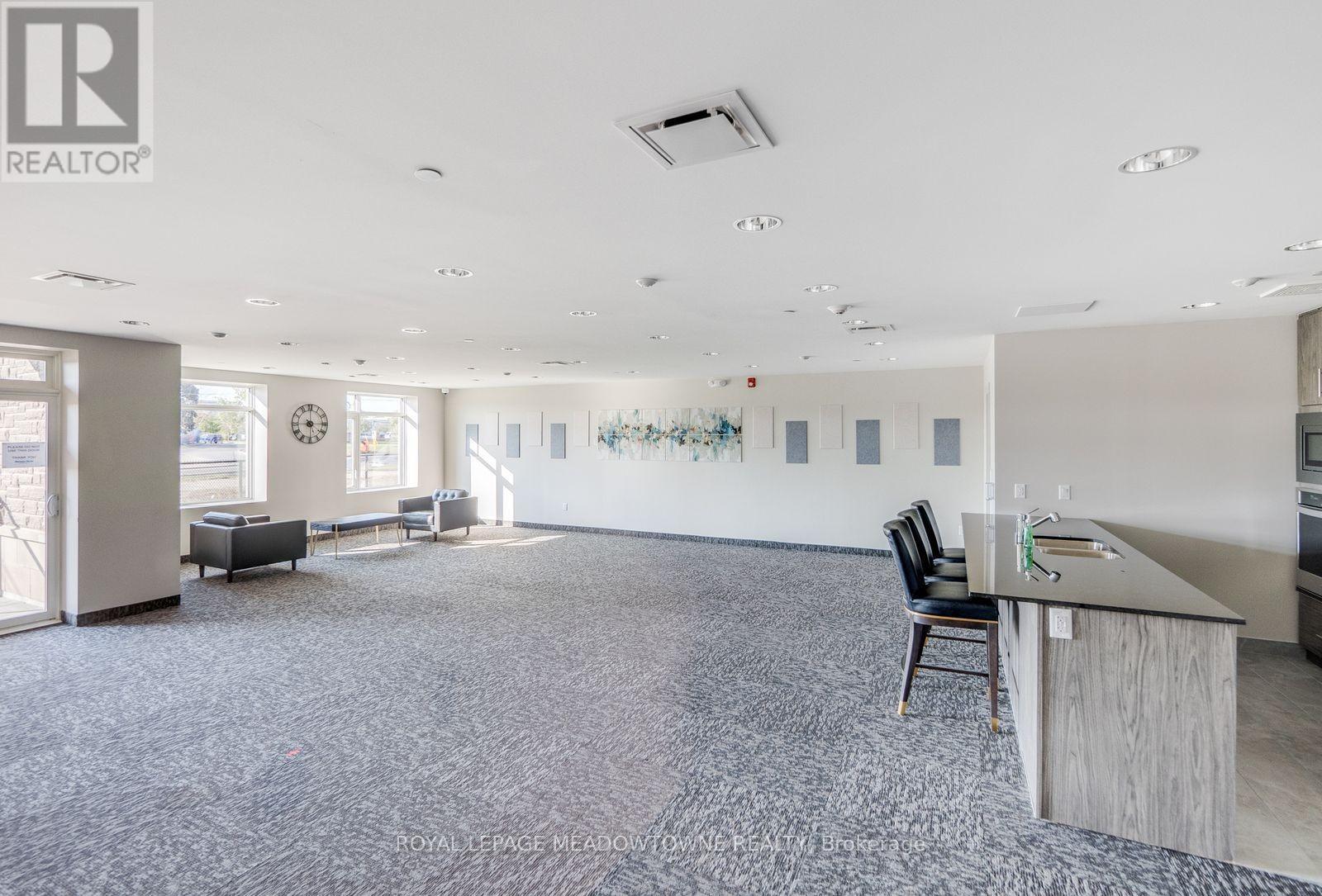 LOCATION, LOCATION! This modern 1 bedroom + den condo, built in 2022, is ideally located in the heart of Milton; just steps to the hospital, shopping, parks, and everyday conveniences. Megson Terrace offers excellent amenities including a party room, large gym, games room, 1 underground parking space, and a locker. Inside, the 848sqft unit, you'll find a bright bedroom with a large closet and direct access to the balcony, along with convenient in-suite laundry. The stylish eat-in kitchen offers ample storage, medium-tone cabinetry, stone countertops and breakfast bar seating. Your open-concept living and dining area flows seamlessly to a generous 150sqft balcony, perfect for relaxing or entertaining. A separate den provides flexible space ideal for a home office or additional living area.A well-designed condo in a fantastic, central location; this unit truly has it all! (42139671)