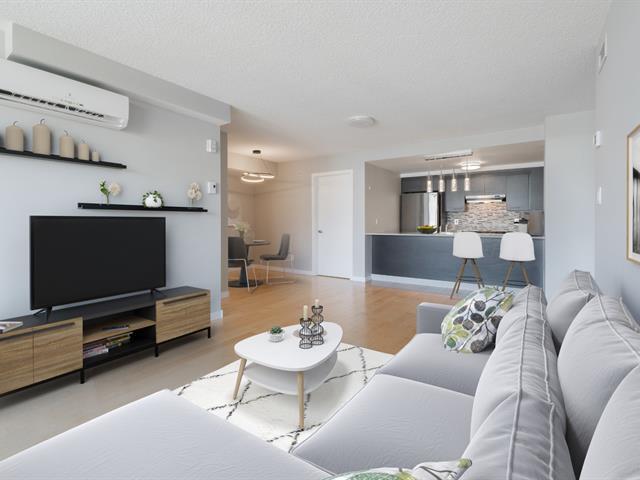 Discover your dream Condo! A 985 sq/ft sunlit haven with large windows and patio door for seamless indoor-outdoor living. Enjoy open concept living at its best with bedrooms on each side. Walk-in closet, wall-mounted AC, air exchanger systems, indoor parking and storage. Recent construction offering superior sound proofing and elevators. Nestled in a serene neighborhood, it's your tranquil retreat close to it all. Don't miss out! (48056368)