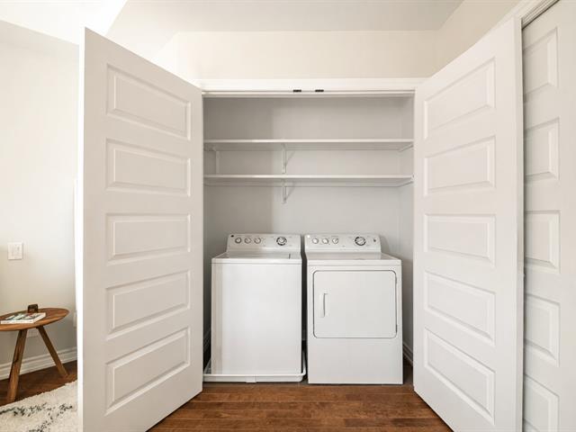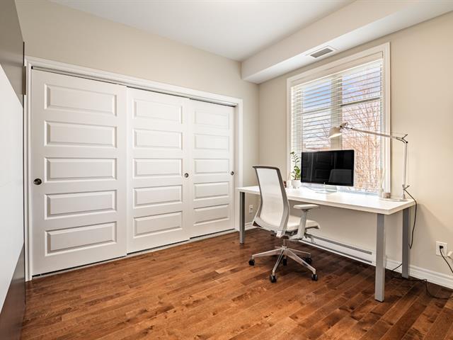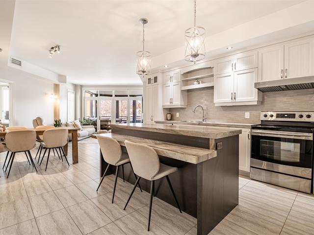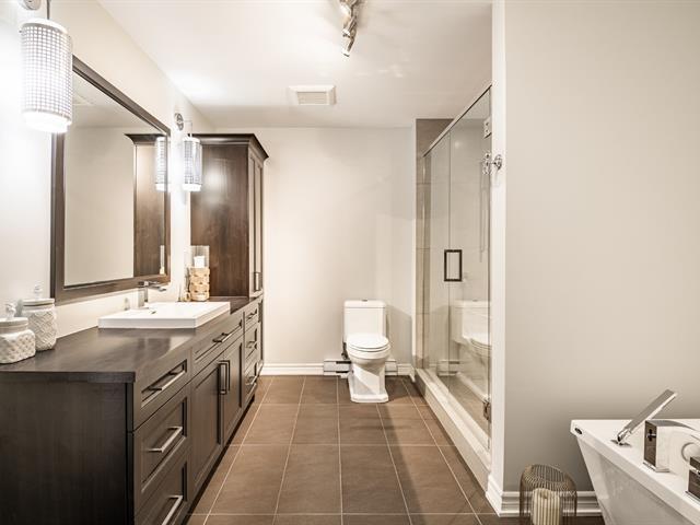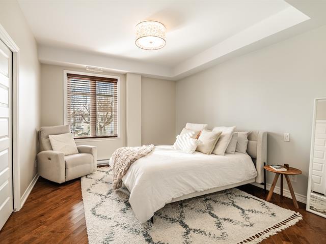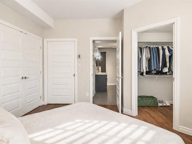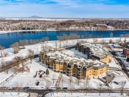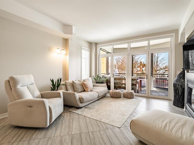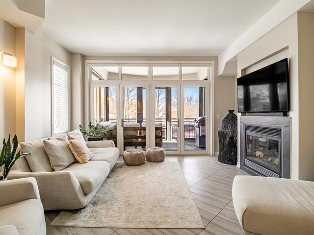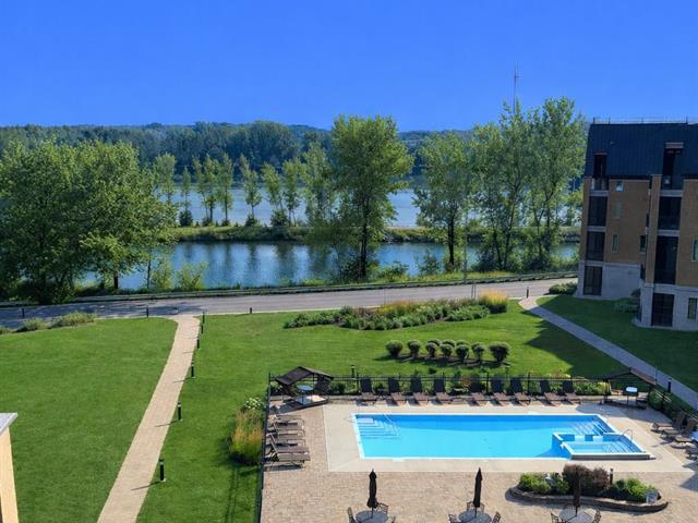 Unité de coin de qualité supérieure offrant 2 chambres, plafonds de 9 pieds, fenestration abondante et aire ouverte entre la cuisine, la salle à manger et le salon avec foyer. Cuisine avec grande surface de travail. Chambre principale avec salle de bain attenante incluant bain autoportant et douche indépendante, ainsi qu'un espace laveuse-sécheuse intégré. Grand balcon couvert avec moustiquaires et protection coupe-vent. Garage et rangement intérieur. Immeuble en béton avec ascenseur, piscine creusée chauffée et espaces communs. Situé face à la rivière Richelieu. (55781876)