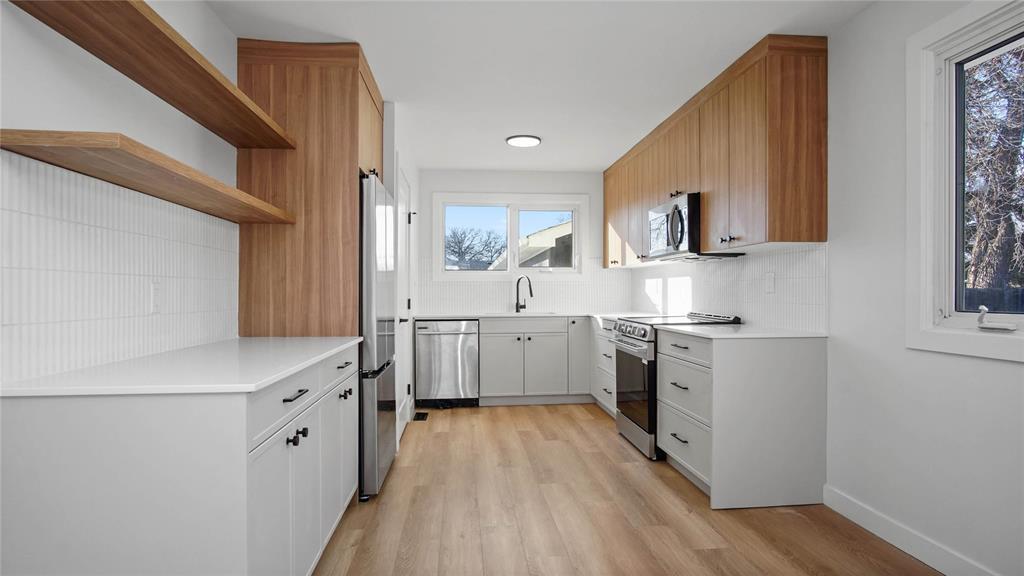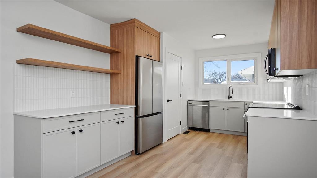 C16//Brandon/Beautifully renovated bungalow style home. Rarely a home offers this level of finishings, flexibility and long term upside. Meticulously renovated with no detail over looked. Featuring 3 + 2 brs, 2 full bathrooms, this property stands out from the moment you arrive. Inside the luxury vinyl plank flooring flows throughout, leading to a bright open living room with a custom feature wall and built in cabinetry. The open concept eat-in kitchen is a show stopper, complete with quartz countertops, shaker style cabinetry with crown molding, soft-close doors, designer back splash and brand new stainless steel appliances. 3 generous brs on the main floor, beautiful new 4 pc bathroom and main floor laundry. The finished basement offers exceptional versatility w/2 rooms and a massive rec room, modern 4 pc bathroom, wet bar/kitchenette, customized laundry room, private access if desired. Perfect for extended family, guests or added income potential. Home located on a 50 x 120 lot in a great location close to convenient amenities and Brandon's newest k-8 school. (231958182)