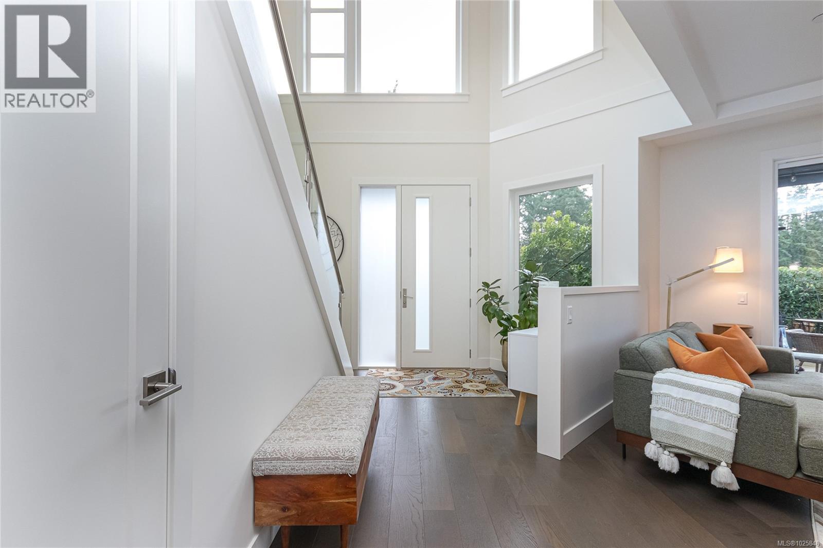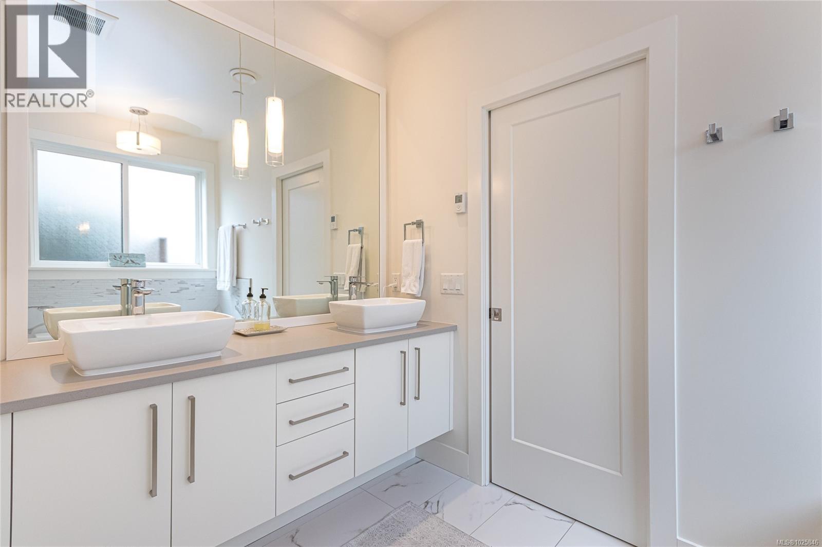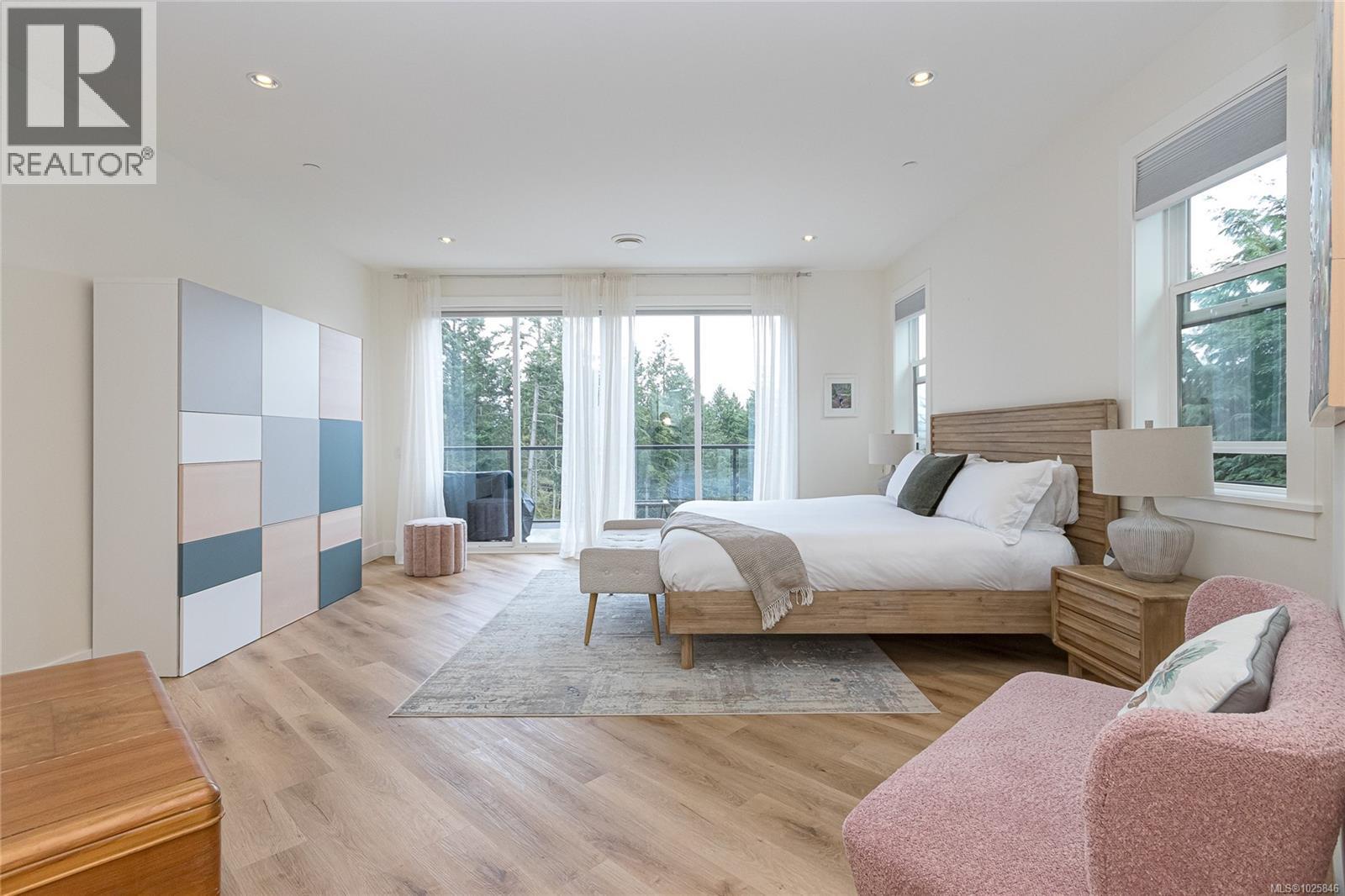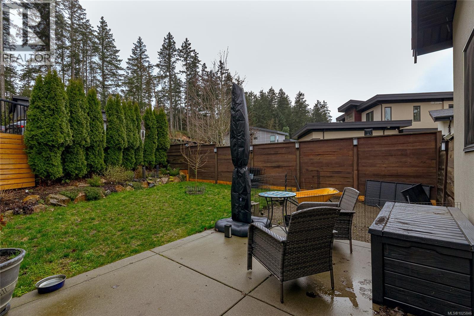 Executive Bear Mountain Resort living with this stunning 3-bedroom, 3-bathroom West Coast Contemporary home in the much sought-after Rivers Crossing community! Offering 2,097 sq ft, this residence features many upgrades and new appliances. Hardwood floors, quartz countertops, and a bright open-concept layout with oversized sliding doors that showcase beautiful forest views and create seamless indoor-outdoor living. The sleek kitchen boasts two-toned cabinetry, stainless steel appliances, and a large island with bar seating. Upstairs offers 3 bedrooms and 2 baths, including a spacious primary suite with walk-in closet, spa-inspired ensuite with standalone tub, and private balcony. Enjoy year-round comfort with a heat pump, plus a double garage with EV charger and wiring for a hot tub. Rare TWO separate, fully fenced yards on each level to enjoy the outdoors. Walk to Westin hotel, golf courses, restaurants, farmer's market, trails, and sports centre with outdoor pool. (30381886)