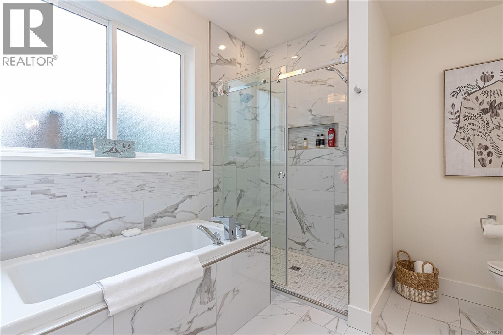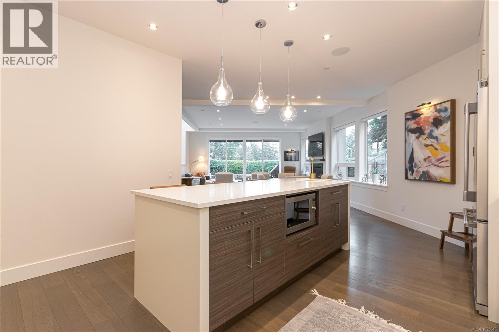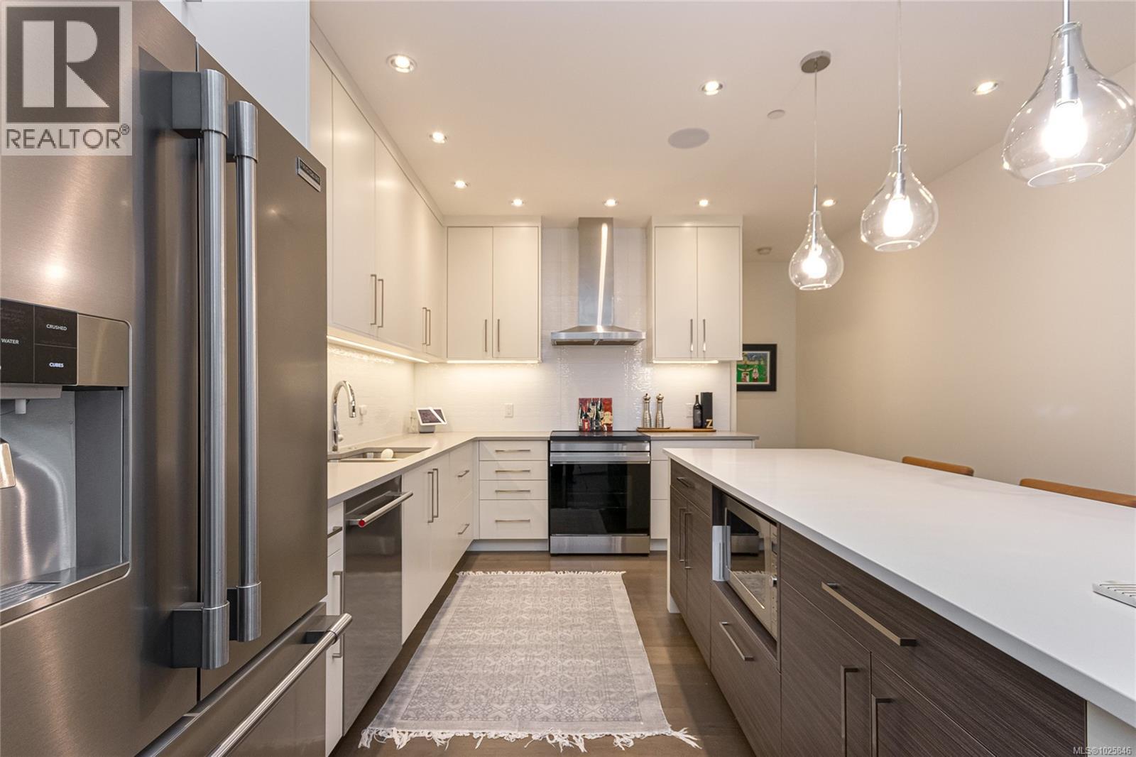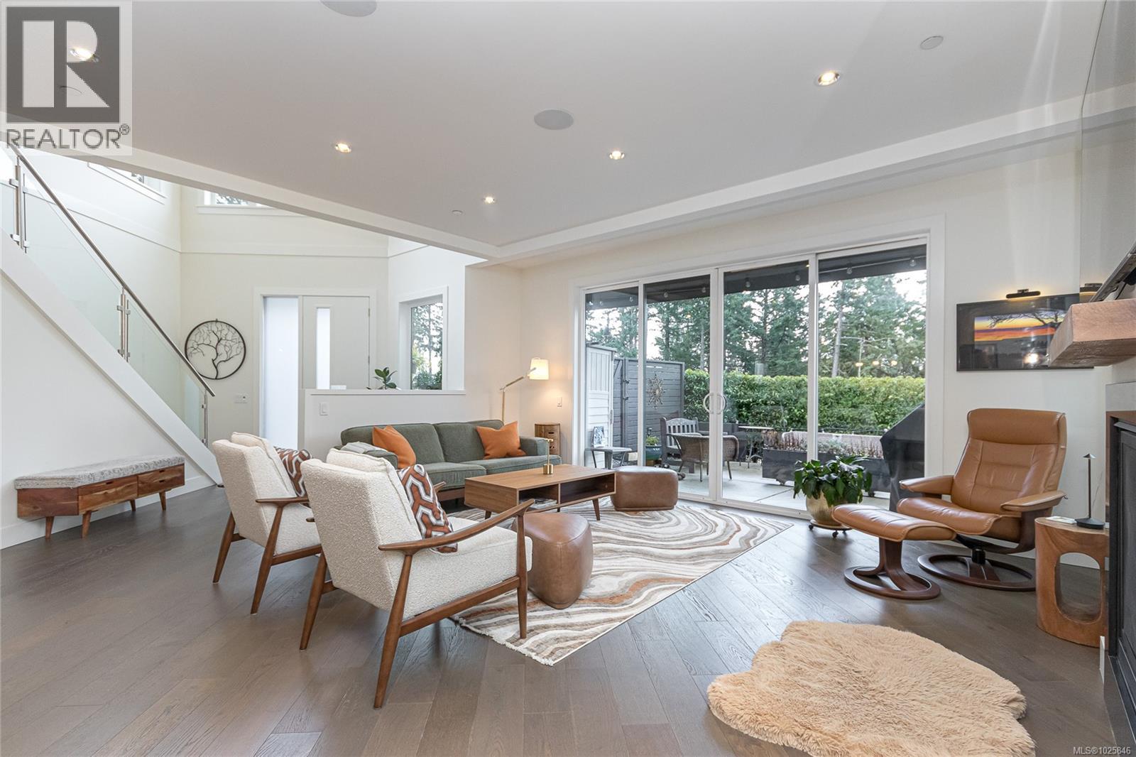 Executive Bear Mountain Resort living with this stunning 3-bedroom, 3-bathroom West Coast Contemporary home in the much sought-after Rivers Crossing community! Offering 2,097 sq ft, this residence features many upgrades and new appliances. Hardwood floors, quartz countertops, and a bright open-concept layout with oversized sliding doors that showcase beautiful forest views and create seamless indoor-outdoor living. The sleek kitchen boasts two-toned cabinetry, stainless steel appliances, and a large island with bar seating. Upstairs offers 3 bedrooms and 2 baths, including a spacious primary suite with walk-in closet, spa-inspired ensuite with standalone tub, and private balcony. Enjoy year-round comfort with a heat pump, plus a double garage with EV charger and wiring for a hot tub. Rare TWO separate, fully fenced yards on each level to enjoy the outdoors. Walk to Westin hotel, golf courses, restaurants, farmer's market, trails, and sports centre with outdoor pool. (30381886)