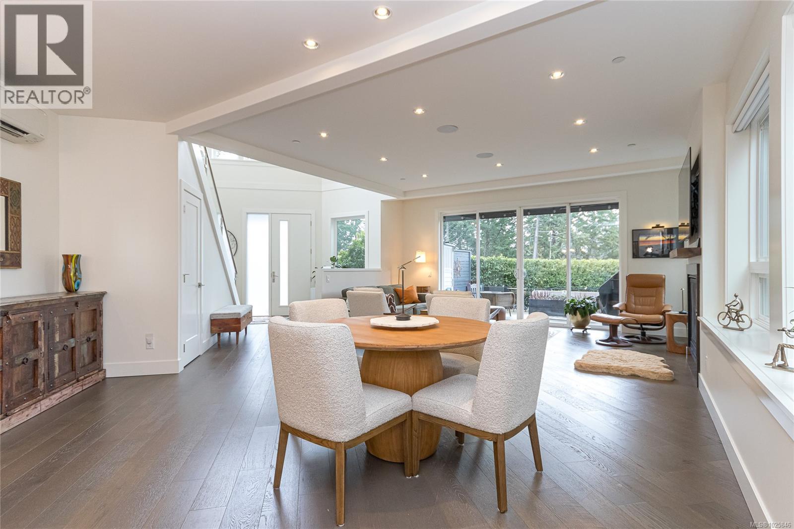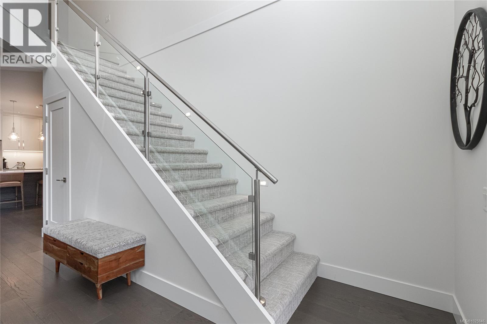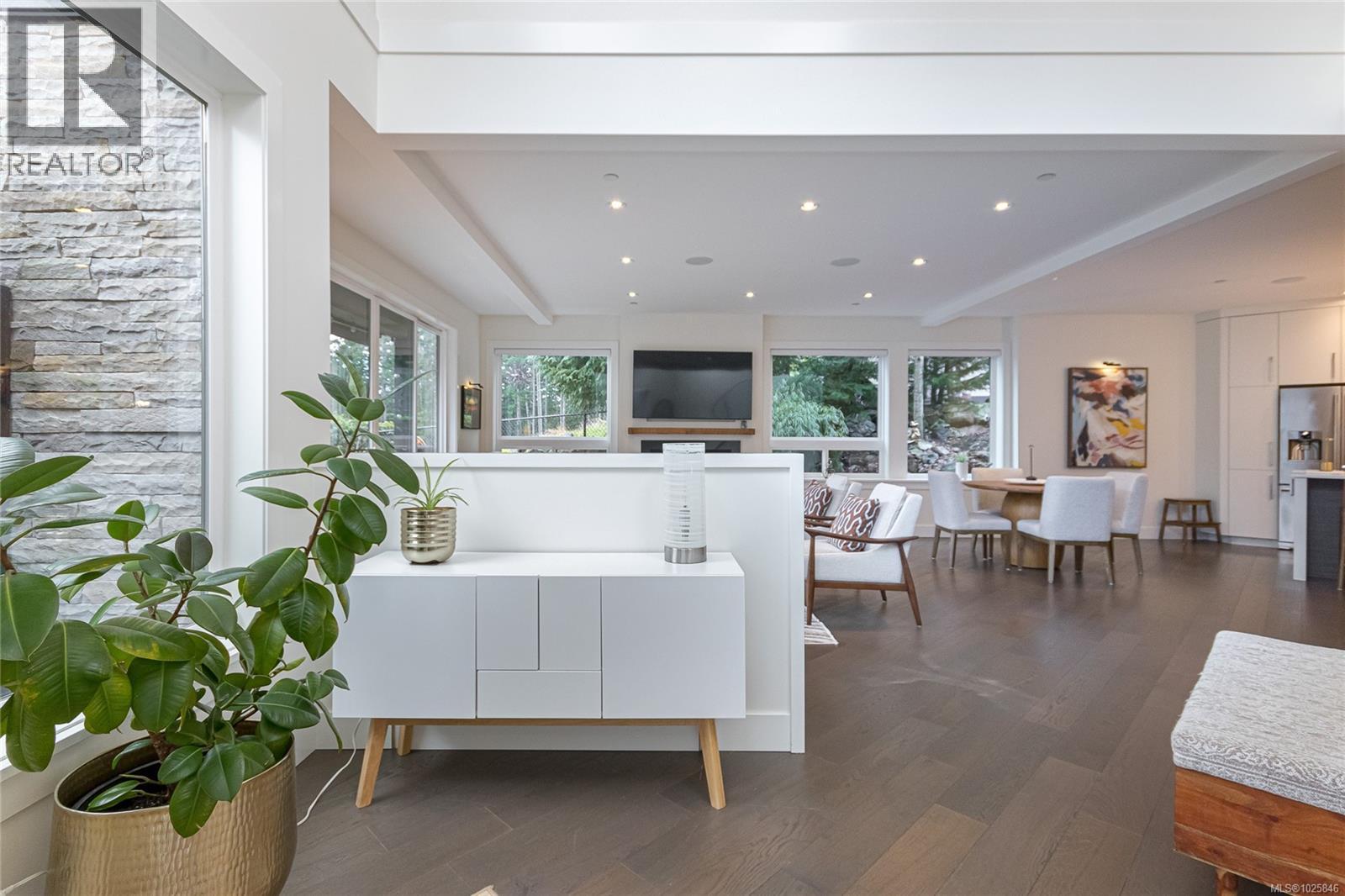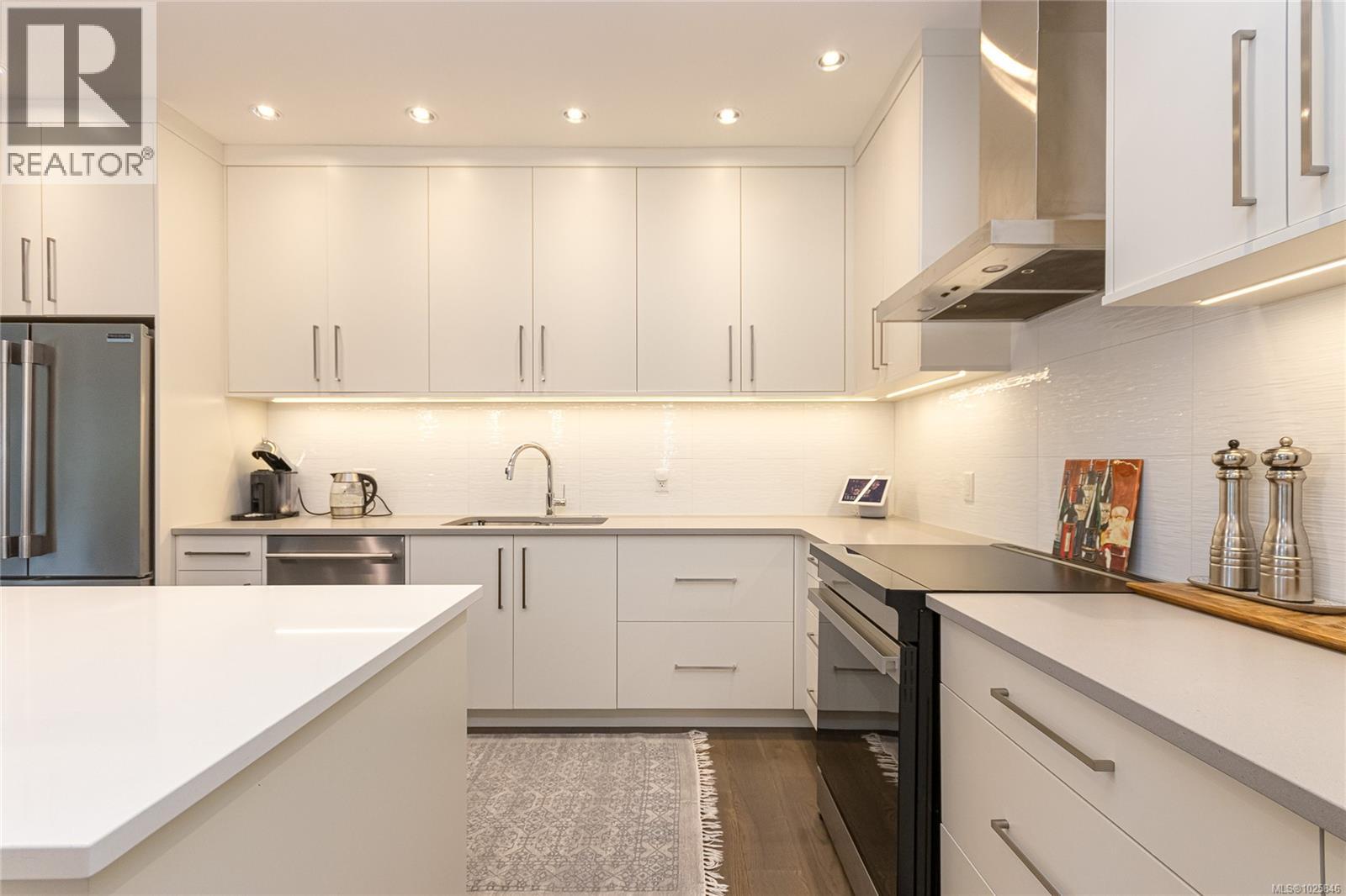 Executive Bear Mountain Resort living with this stunning 3-bedroom, 3-bathroom West Coast Contemporary home in the much sought-after Rivers Crossing community! Offering 2,097 sq ft, this residence features many upgrades and new appliances. Hardwood floors, quartz countertops, and a bright open-concept layout with oversized sliding doors that showcase beautiful forest views and create seamless indoor-outdoor living. The sleek kitchen boasts two-toned cabinetry, stainless steel appliances, and a large island with bar seating. Upstairs offers 3 bedrooms and 2 baths, including a spacious primary suite with walk-in closet, spa-inspired ensuite with standalone tub, and private balcony. Enjoy year-round comfort with a heat pump, plus a double garage with EV charger and wiring for a hot tub. Rare TWO separate, fully fenced yards on each level to enjoy the outdoors. Walk to Westin hotel, golf courses, restaurants, farmer's market, trails, and sports centre with outdoor pool. (30381886)