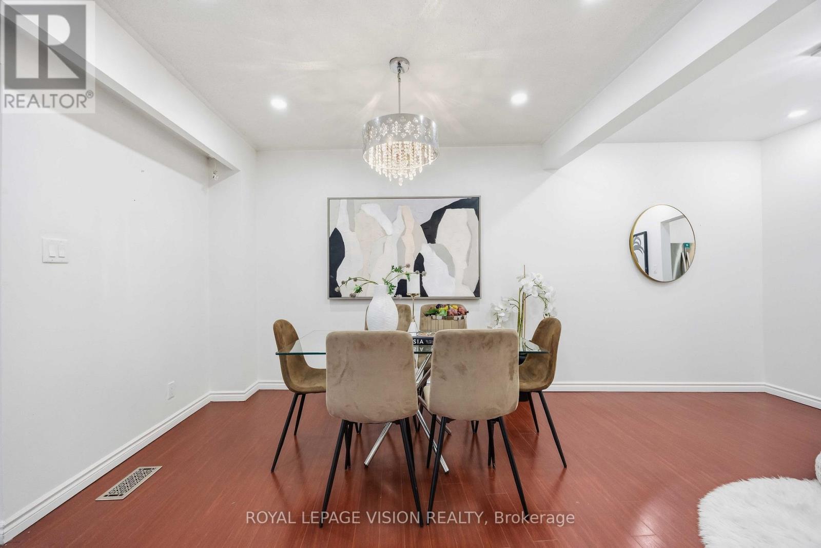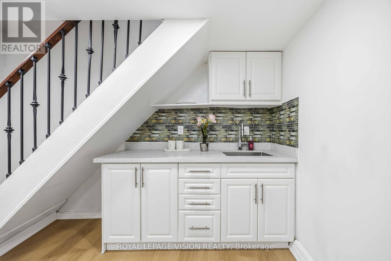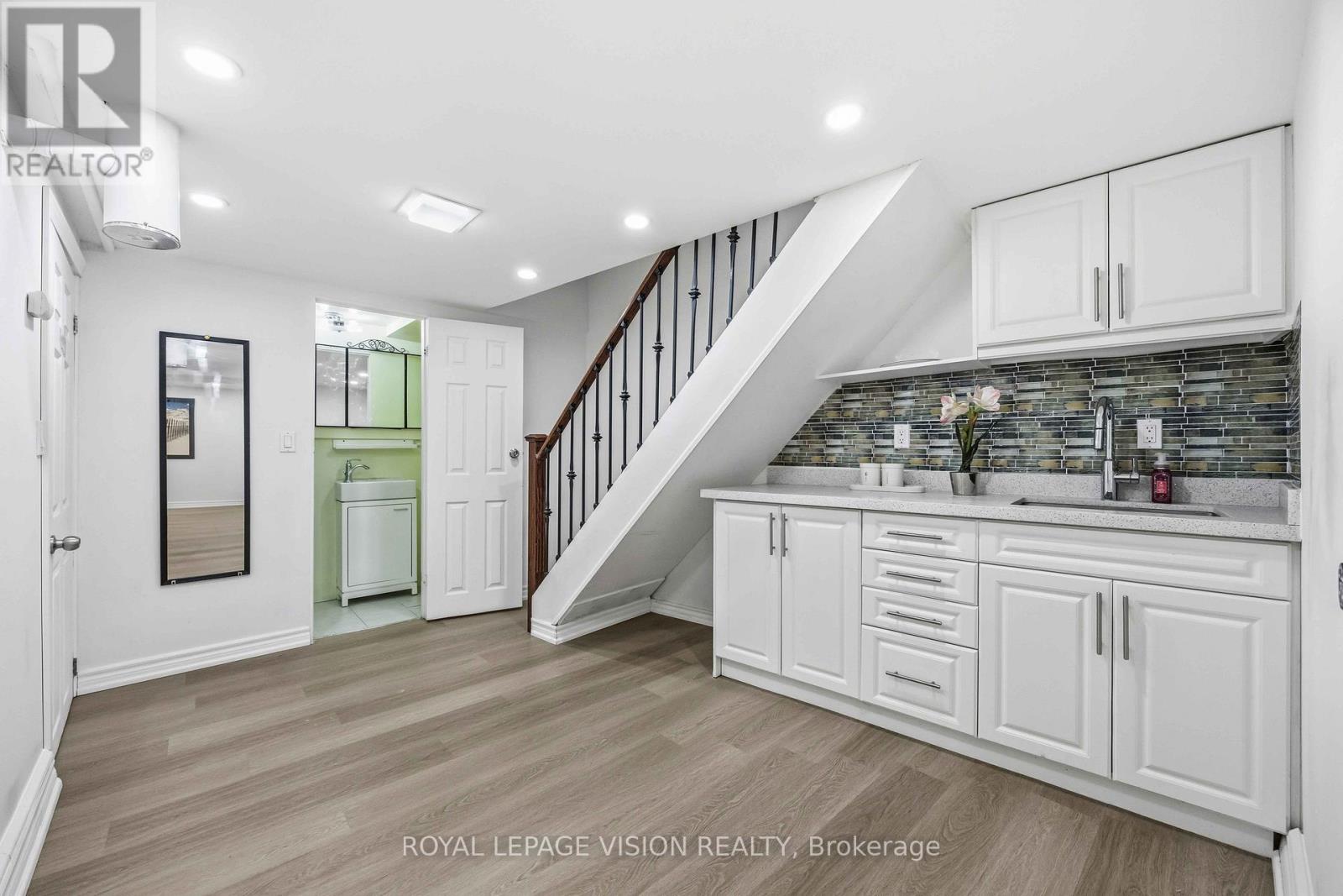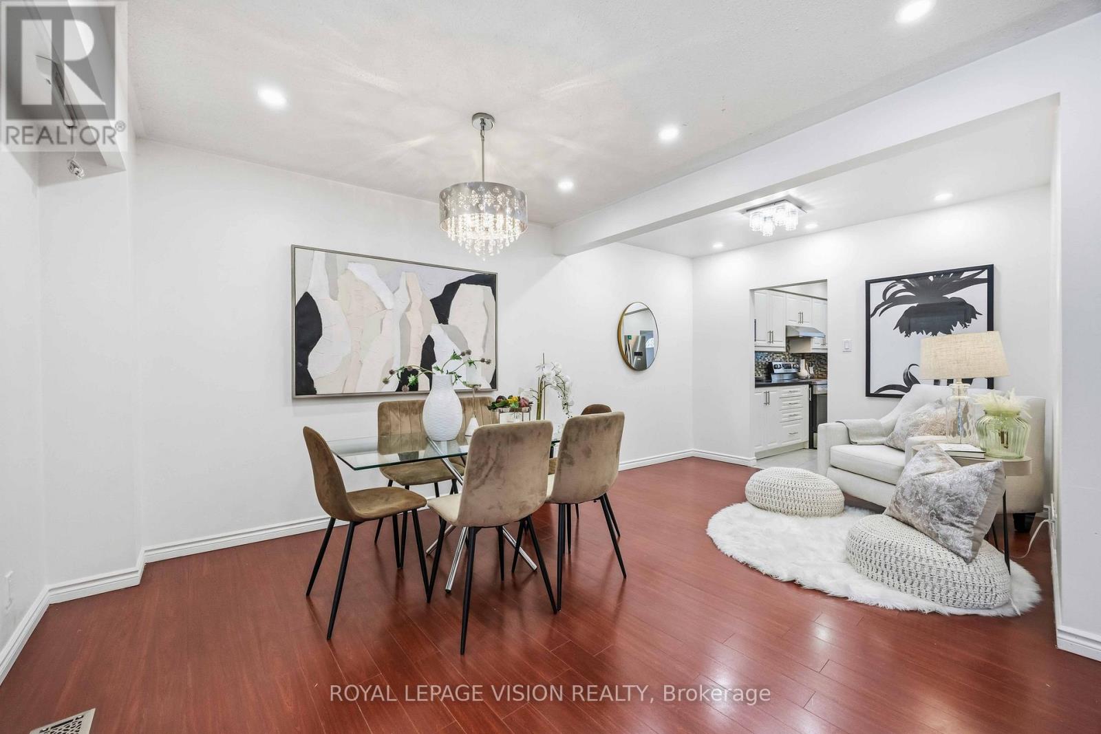 Come Home in this Rarely Offered Urban Oasis! Tucked away in a park-like, child-friendly circular courtyard, this beautifully maintained home offers the perfect blend of tranquility and convenience. Step inside and feel the warmth of a residence that has been thoughtfully updated over time. The main floor features a well-appointed L-shaped living and dining area - ideal for both everyday living and entertaining. The modern kitchen boasts quartz countertops and stainless steel appliances, creating a stylish and functional space for family meals. Upstairs, you'll find three spacious bedrooms with soaring ceilings that enhance the sense of openness and light. The finished basement adds exceptional versatility, offering a massive 21-foot bedroom, a partially completed kitchen, and a full 3-piece bathroom - perfect for extended family, guests, or a potential in-law suite setup. The utility room provides generous storage space, functioning as your own private locker. Location is unbeatable - with quick access to Highways 401, 404, 407, and the Don Valley Parkway, all within 500 meters. Downtown access is seamless. Top-ranking elementary, middle, and high schools are within walking distance, along with the library, hospital, community Centre, and medical facilities. Enjoy your own private backyard surrounded by lush greenery - a peaceful retreat in the heart of the city. This is more than just a property - it's a place to truly call HOME! UPGRADE TIMELINE: Roof (2024), Fresh Paint (2026), Powder Room Update (2024), Kitchen (2018), Washer-Dryer (2018), All Light Fixtures (2018), A/C (2011), Furnace- 2025 Dec. MAINTENANCE INCLUDES: Common Elem., Parking, Bldg. Insurance, Water, Cable TV & HIGH SPEED INTERNET.* Some Pictures are taken previously during Summer time. (42141499)