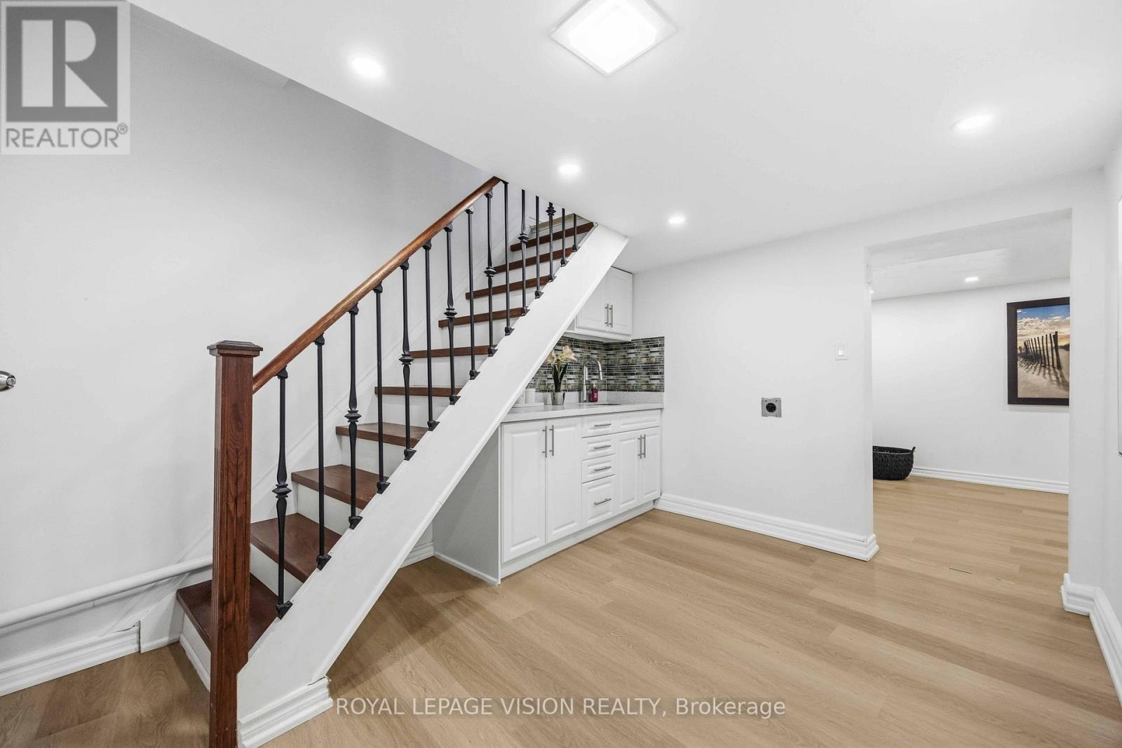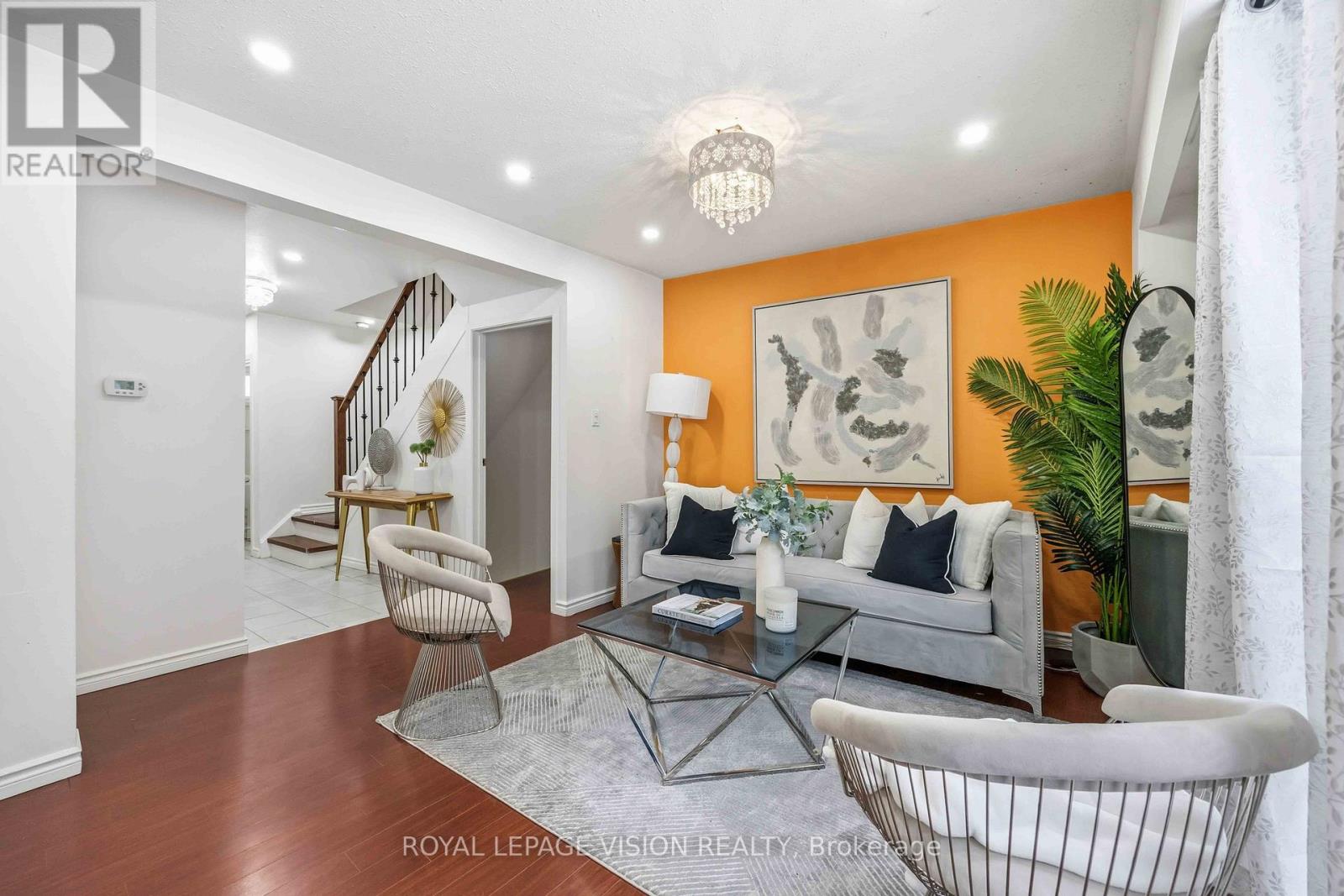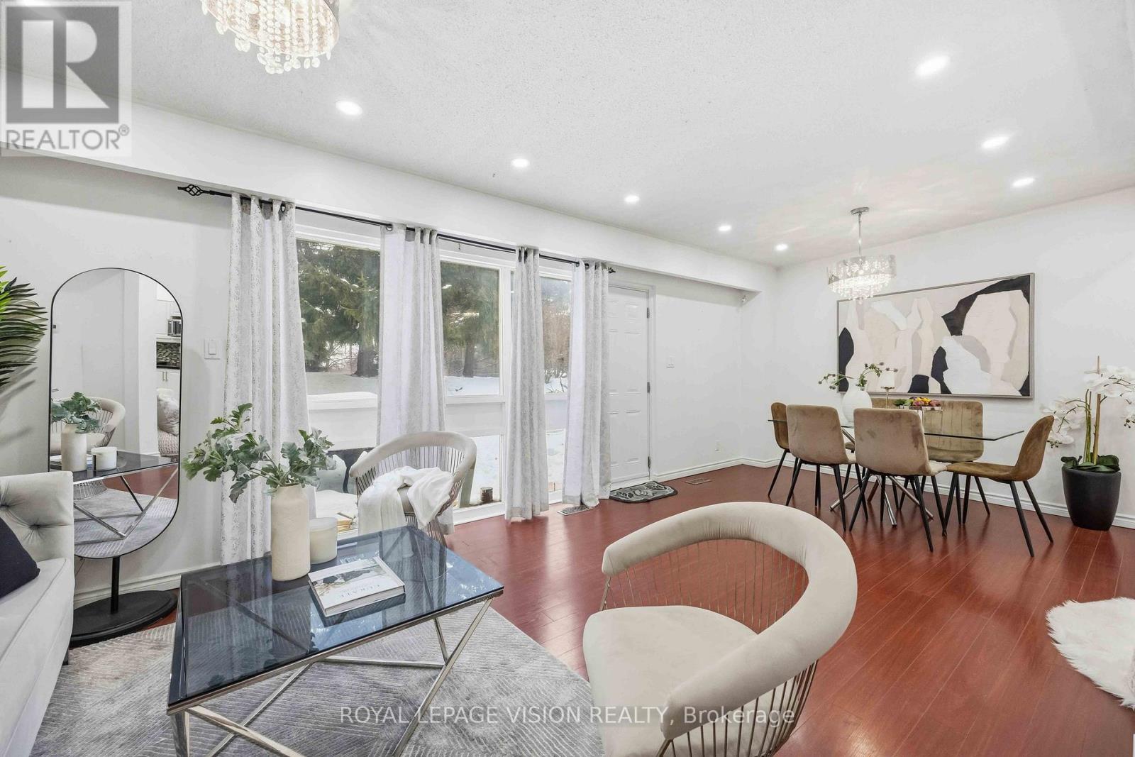 Come Home in this Rarely Offered Urban Oasis! Tucked away in a park-like, child-friendly circular courtyard, this beautifully maintained home offers the perfect blend of tranquility and convenience. Step inside and feel the warmth of a residence that has been thoughtfully updated over time. The main floor features a well-appointed L-shaped living and dining area - ideal for both everyday living and entertaining. The modern kitchen boasts quartz countertops and stainless steel appliances, creating a stylish and functional space for family meals. Upstairs, you'll find three spacious bedrooms with soaring ceilings that enhance the sense of openness and light. The finished basement adds exceptional versatility, offering a massive 21-foot bedroom, a partially completed kitchen, and a full 3-piece bathroom - perfect for extended family, guests, or a potential in-law suite setup. The utility room provides generous storage space, functioning as your own private locker. Location is unbeatable - with quick access to Highways 401, 404, 407, and the Don Valley Parkway, all within 500 meters. Downtown access is seamless. Top-ranking elementary, middle, and high schools are within walking distance, along with the library, hospital, community Centre, and medical facilities. Enjoy your own private backyard surrounded by lush greenery - a peaceful retreat in the heart of the city. This is more than just a property - it's a place to truly call HOME! UPGRADE TIMELINE: Roof (2024), Fresh Paint (2026), Powder Room Update (2024), Kitchen (2018), Washer-Dryer (2018), All Light Fixtures (2018), A/C (2011), Furnace- 2025 Dec. MAINTENANCE INCLUDES: Common Elem., Parking, Bldg. Insurance, Water, Cable TV & HIGH SPEED INTERNET.* Some Pictures are taken previously during Summer time. (42141499)
