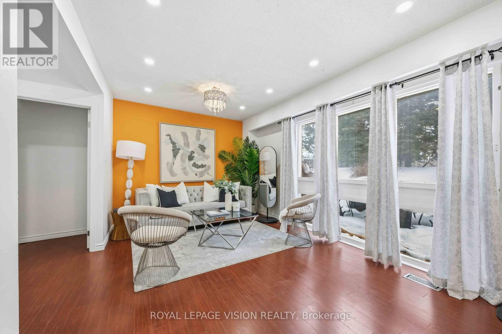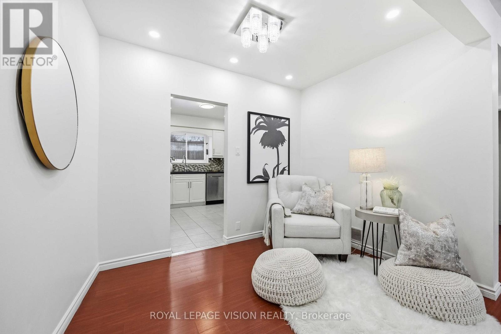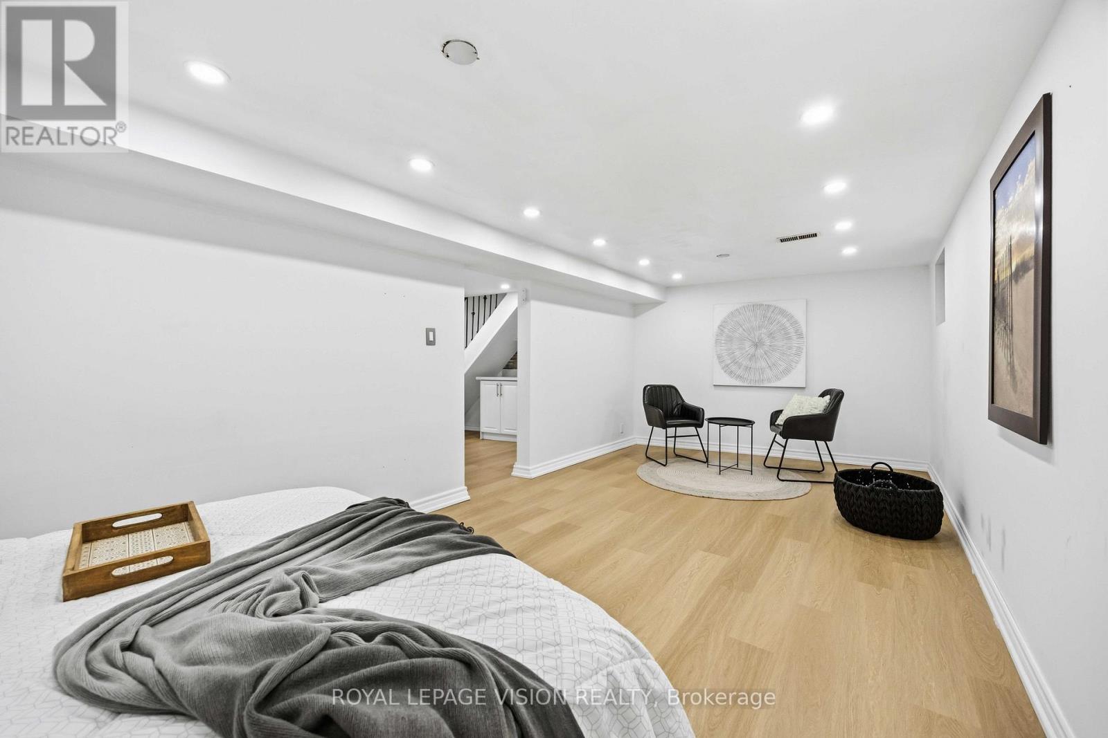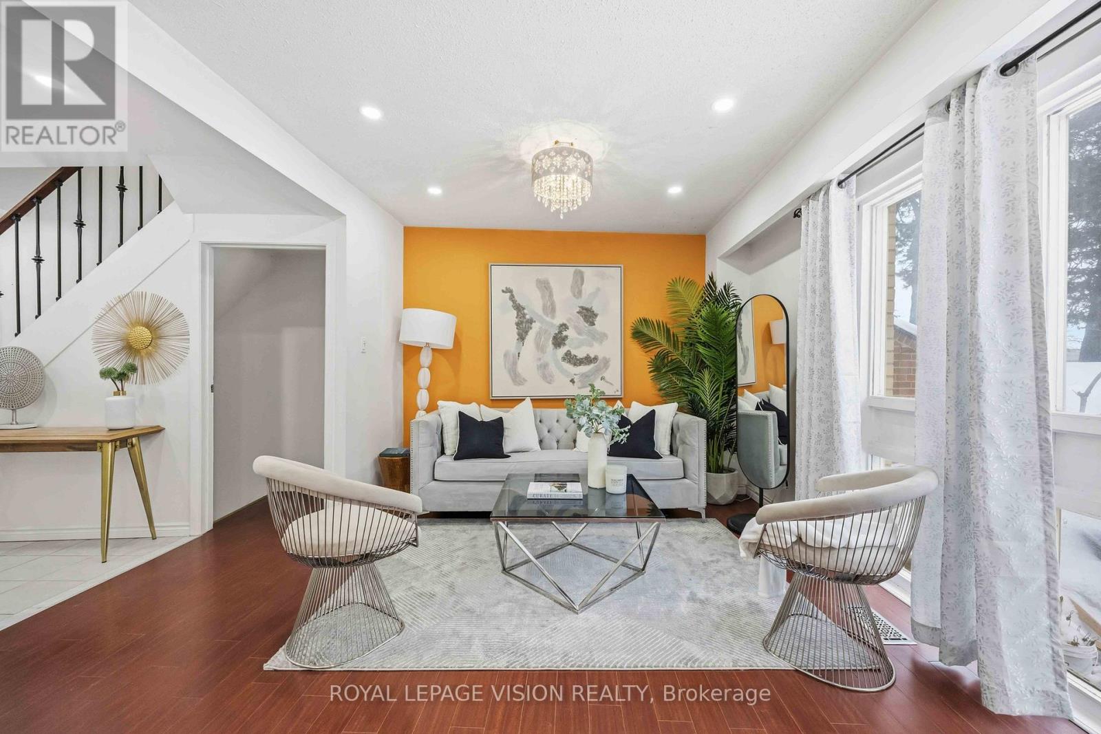 Come Home in this Rarely Offered Urban Oasis! Tucked away in a park-like, child-friendly circular courtyard, this beautifully maintained home offers the perfect blend of tranquility and convenience. Step inside and feel the warmth of a residence that has been thoughtfully updated over time. The main floor features a well-appointed L-shaped living and dining area - ideal for both everyday living and entertaining. The modern kitchen boasts quartz countertops and stainless steel appliances, creating a stylish and functional space for family meals. Upstairs, you'll find three spacious bedrooms with soaring ceilings that enhance the sense of openness and light. The finished basement adds exceptional versatility, offering a massive 21-foot bedroom, a partially completed kitchen, and a full 3-piece bathroom - perfect for extended family, guests, or a potential in-law suite setup. The utility room provides generous storage space, functioning as your own private locker. Location is unbeatable - with quick access to Highways 401, 404, 407, and the Don Valley Parkway, all within 500 meters. Downtown access is seamless. Top-ranking elementary, middle, and high schools are within walking distance, along with the library, hospital, community Centre, and medical facilities. Enjoy your own private backyard surrounded by lush greenery - a peaceful retreat in the heart of the city. This is more than just a property - it's a place to truly call HOME! UPGRADE TIMELINE: Roof (2024), Fresh Paint (2026), Powder Room Update (2024), Kitchen (2018), Washer-Dryer (2018), All Light Fixtures (2018), A/C (2011), Furnace- 2025 Dec. MAINTENANCE INCLUDES: Common Elem., Parking, Bldg. Insurance, Water, Cable TV & HIGH SPEED INTERNET.* Some Pictures are taken previously during Summer time. (42141499)