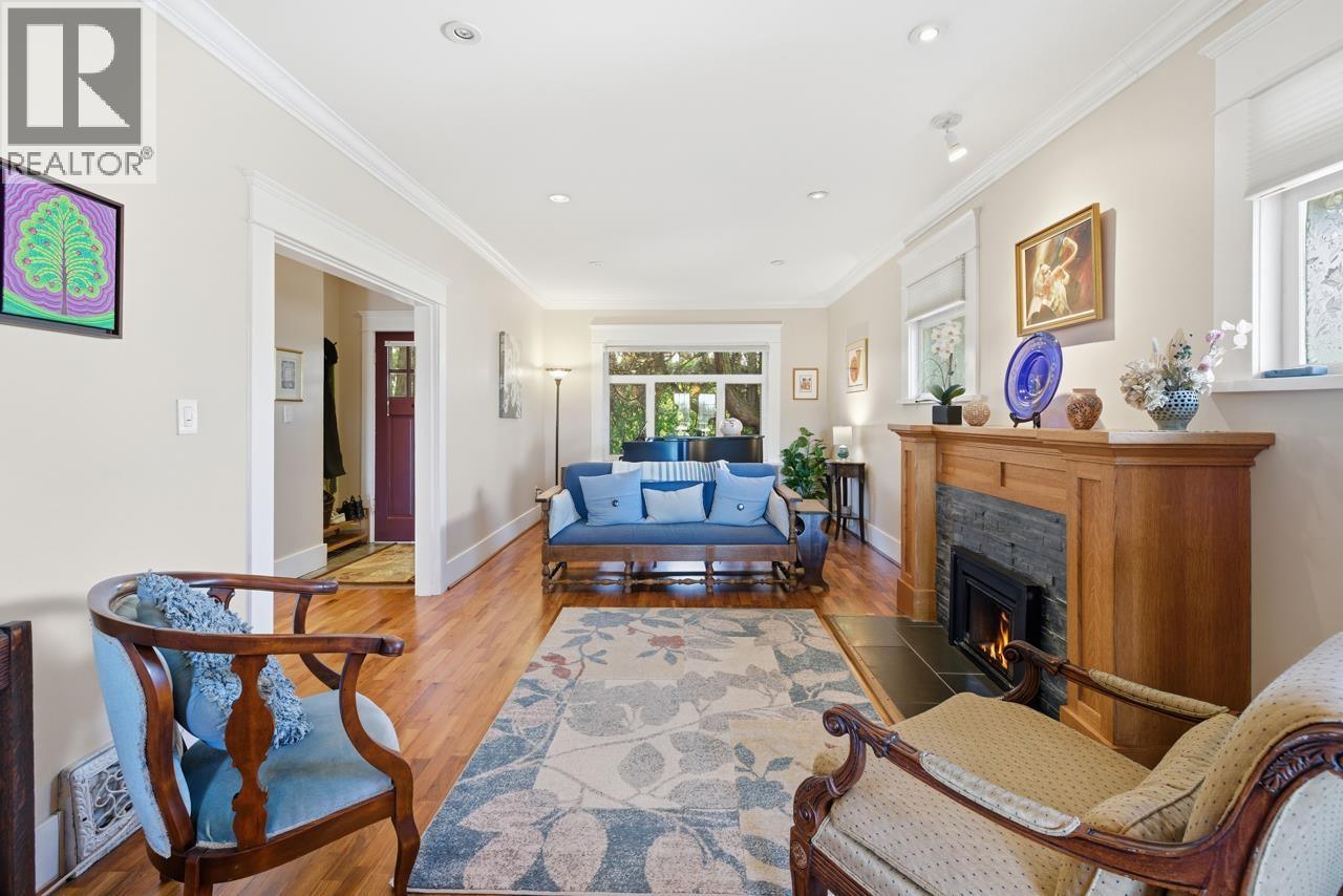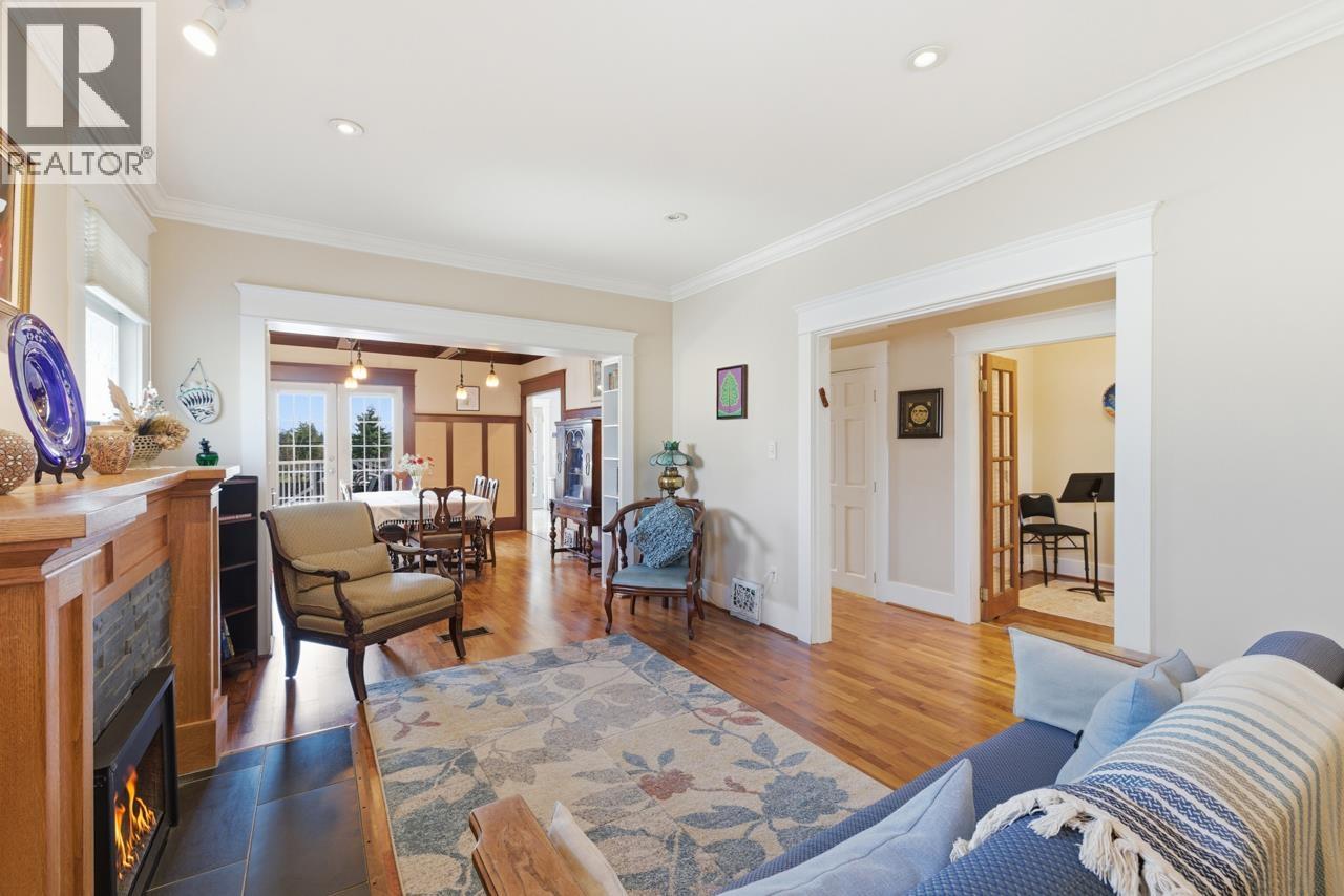 Beautiful, renovated family home on a prime corner STEPS TO DOUGLAS PARK. Main route offers convenience while the home is remarkably quiet from dbl glazed windows & lush front hedging for privacy. Large E facing windows fill the interior w/natural light. Main floor offers formal living & dining rooms plus separate den ideal for home office,or playroom. A bright kitchen with eating area & NS mnt views. Upstairs,3 spacious bdrms, one w/a generous balcony perfect for morning coffee watching the sunrise. Lower level has exceptionally high ceilings w/a bright 2 bdrm suite w/separate entry, large windows & gas fp. Great accommodation for extended family or mortgage helper. 2 oversized single garages for vehicles & storage, or the flexibility to create a workshop. Emily Carr & Eric Hamber catchment (32446710)