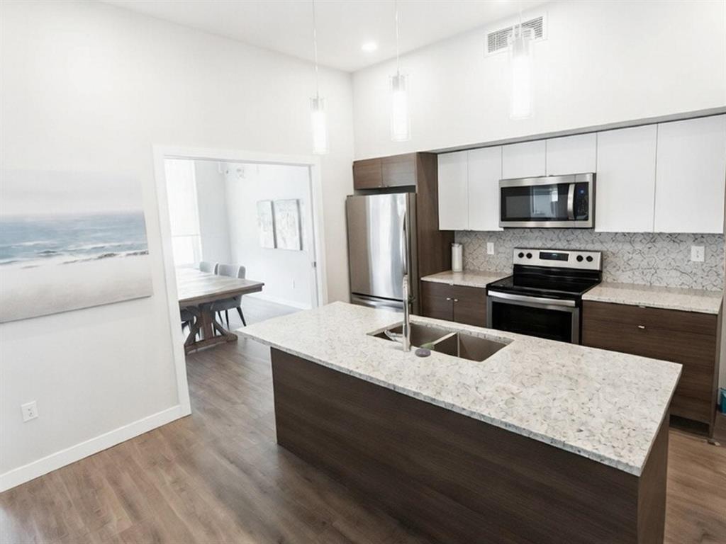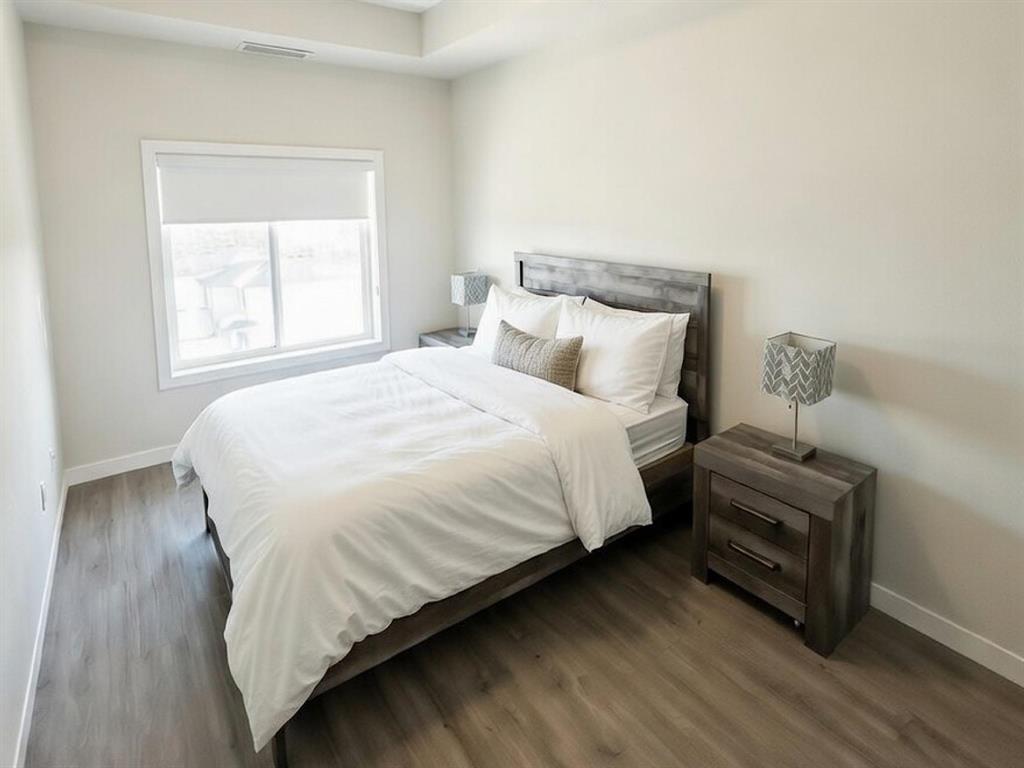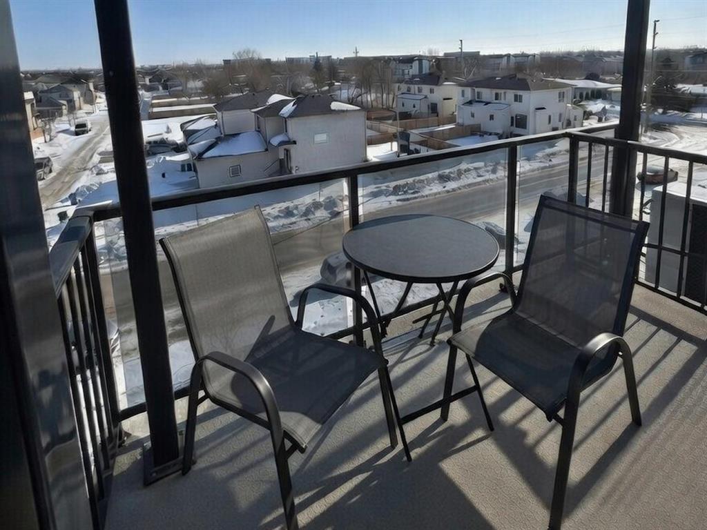 3K//Winnipeg/Welcome to this stunning Top-Floor condo in Crocus Meadows, a rare and highly sought-after unit facing Philip Lee Drive. This penthouse-style suite offers 847 sq ft of open-concept living with 9-foot ceilings, two spacious bedrooms with walk-in closets, and one full bathroom. Large triple-pane windows and a 6-foot patio door lead to a beautiful balcony with scenic views, filling the space with natural light.Modern finishes include luxury vinyl plank flooring, soft-close cabinetry, quartz countertops, a modern tile backsplash, and a spacious island with breakfast seating. Stainless steel kitchen appliances and in-suite laundry with washer and dryer are included.Additional features include central air conditioning, extra storage, and parking with a plug-in. Built for superior sound insulation with double-wide interior walls and gypcrete between floors. This unit also has two storage units on the top floor. The condo fees include access to a clubhouse with common area, patio, billiards lounge, and large gym/fitness area. Pet-friendly complex allowing up to two pets under 35 lbs.Dont miss your chance on this rare top floor unit! (231958287)