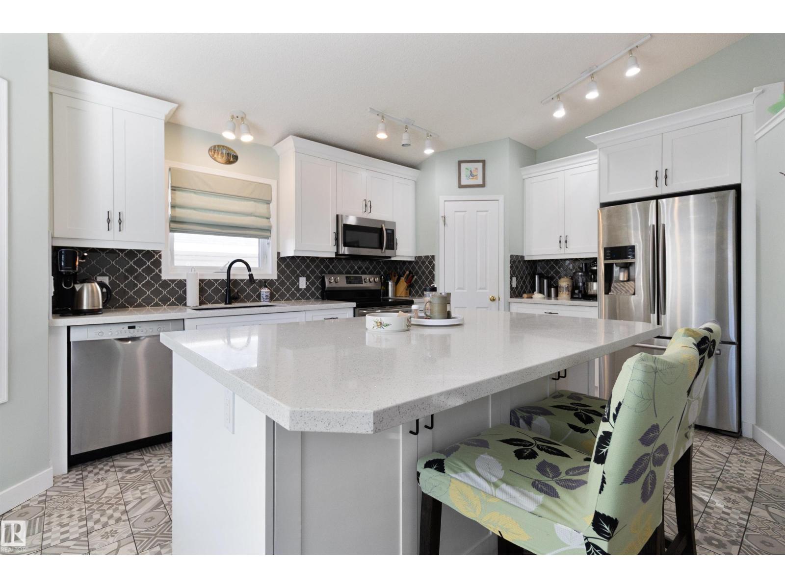 Fantastic bilevel home in KINISKI GARDENS The main floor has vaulted ceilings and beautiful large sunny windows. You will love the modern kitchen, which comes with quartz countertops, SS appliances, a wine fridge, and soft close drawers. The large island is perfect for preparing meals and entertaining, and the dining room overlooks a private backyard. The primary bedroom is on its own level and features a barn door, a WIC, and a bathroom with a deep soaker tub. The professionally finished basement includes a large family room with a gas fireplace, two more bedrooms, and another 4pc bathroom. One of the basement bedrooms features a resistance heater with its own heat control making it a perfect space for yoga or a home gym. A large double garage enters into the front foyer. Stay cool inside with central AC or enjoy the outdoors in a private yard, composite deck, a Suncoast screened enclosure including an underground sprinkler system. Updates include shingles (2016), furnace (2018), hot water tank (2016) (33830685)