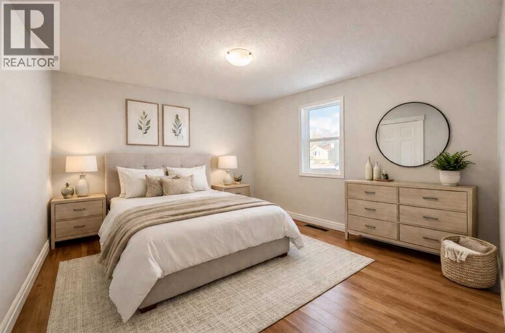 This 1958 bungalow offers 702 sq ft with bright main-floor living space and a practical, efficient layout. The functional living room and eat-in kitchen are filled with natural light, and the primary bedroom features walk-through access to a four-piece bath with convenient main-floor laundry. The lower level provides additional space including a second four-piece bathroom and storage area. While suited for utility use, hobbies, or future improvement, the basement offers flexibility and added function. Significant upgrades include new windows (2024), pre-finished metal siding (2024), and shingles replaced in 2021—helping reduce major exterior expenses for years to come. Situated on a generous 9,982 sq ft R2-zoned lot, the property also includes a 14’ x 24’ detached garage and ample off-street parking. (31643776)