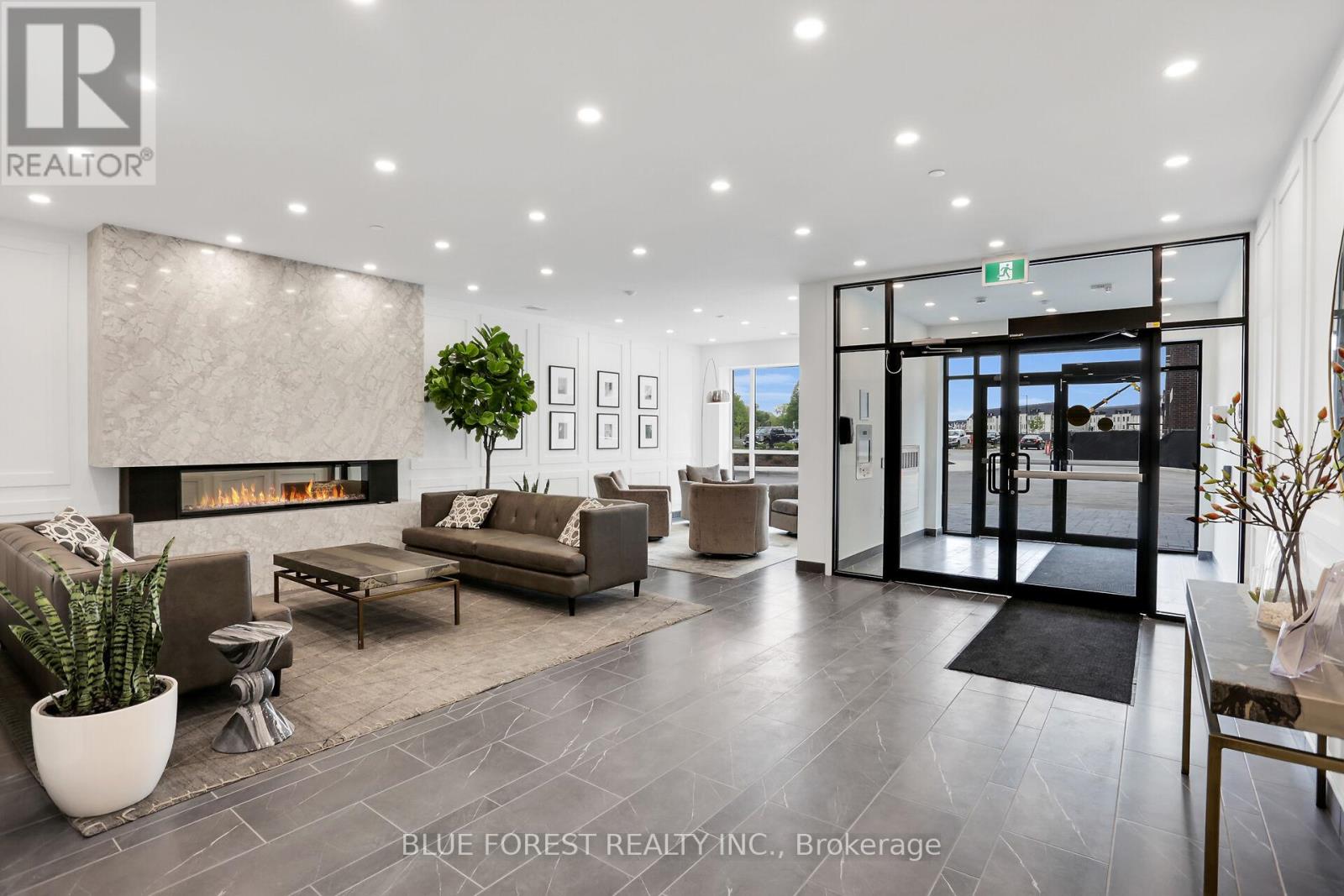 Welcome to this beautifully appointed main-floor 1-bedroom condo in the highly sought-after NorthLink II by Tricar, ideally located just minutes from Masonville Place and Western University. Designed with both style and comfort in mind, this open-concept layout features a modern kitchen complete with a generous peninsula and breakfast bar-perfect for entertaining or everyday living. The elegant bathroom showcases quartz countertops and luxurious heated floors, while wider doorways enhance accessibility and convenience. Enjoy the ease of main-floor living along with access to exceptional, state-of-the-art amenities including a fully equipped fitness centre, residents' lounge, private dining room, golf simulator, sport court, guest suite, and more-all just steps from your door. This unit includes TWO underground parking spaces, and condo fees conveniently cover heat and water, helping to keep monthly expenses affordable. Nestled in a premium setting with picturesque views of forested trails and located within the boundaries of top-rated schools, this is an outstanding opportunity to own in one of North London's most desirable luxury buildings. (42144520)