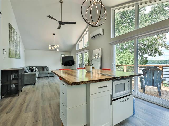 LAC-SIMON - Live your waterfront dream! Built in 2022, this property offers 76 ft of private beach on a 16 km navigable lake. Enjoy spectacular east-facing views, a bright garden-level, 2 bedrooms, 2 bathrooms, and a spacious terrace perfect for family moments. Only 10 minutes from Chénéville (grocery, pharmacy, hardware, restaurants, gas) and 60 minutes from Gatineau/Ottawa or Tremblant. Endless activities nearby: water sports, beaches, golf, ATV, snowmobiling, trails, SEPAQ Papineau-Labelle. High-speed fiber internet available. (52385704)